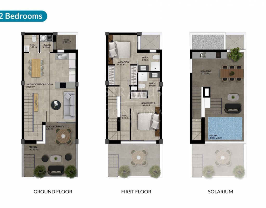 Maisons de ville modernes à Dolores avec piscine commune Des maisons contemporaines conçues pour le confort et le style Découvrez ce complexe résidentiel exclusif de 20 maisons de ville modernes à Dolores, offrant un mélange parfait d'espace, de style et de finitions de haute qualité. Avec jusqu'à 133 m² d'espace habitable, y compris de vastes terrasses, ces maisons sont disponibles en deux ou trois chambres, ce qui vous permet de choisir le design qui convient le mieux à votre style de vie. Chaque propriété s'étend sur trois étages, y compris un solarium privé, offrant des vues ouvertes à couper le souffle et un espace idéal pour se détendre. Les intérieurs sont dotés d'un éclairage LED intégré, de finitions contemporaines et d'un agencement ouvert qui favorise la lumière naturelle. Caractéristiques haut de gamme et améliorations optionnelles Intérieurs spacieux et lumineux avec des finitions de haute qualité Trois étages, dont un solarium sur le toit Piscine commune, idéale pour se détendre En option, jacuzzi privé ou piscine sur le toit (avec supplément) Parking privé pour chaque maison Cuisines et salles de bains modernes, conçues pour être fonctionnelles et élégantes. Un emplacement de choix - un cadre paisible et une excellente connectivité Situé à Dolores, une charmante ville de la région de Vega Baja à Alicante, ce projet offre un équilibre parfait entre vie paisible et accès facile aux services essentiels. La région est connue pour la beauté de son environnement naturel, ses paysages agricoles et son atmosphère détendue. Distances des principaux points d'intérêt : Plages de La Marina et Guardamar del Segura - 10 km (10 minutes) Aéroport d'Alicante - 30 km (25 minutes) Aéroport de Murcia-Corvera - 60 km (45 minutes) Terrains de golf - 10 km (10 minutes) Centres commerciaux (La Zenia Boulevard, Habaneras) - 12 km (15 minutes) Une maison parfaite sur la Costa Blanca Ces maisons de ville modernes à Dolores offrent une combinaison idéale de tranquillité, de vie moderne et de proximité des principales destinations. Que vous cherchiez une maison de vacances ou une résidence permanente, ce projet offre un style de vie confortable et élégant dans un emplacement privilégié. Ne manquez pas cette occasion ! Contactez-nous dès aujourd'hui pour plus d'informations ou pour planifier une visite.
