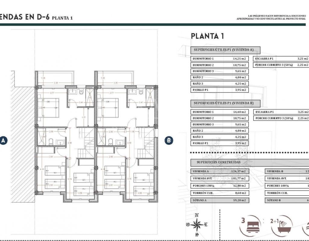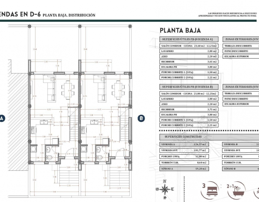 Maisons de ville neuves avec solarium et garage en sous-sol à Bigastro Vega Baja Programme exclusif de seulement deux maisons modernes Ce projet immobilier haut de gamme comprend seulement deux maisons de ville dans la paisible commune de Bigastro, située dans la région de Vega Baja, sur la Costa Blanca Sud. Conçues avec un agencement pratique sur plusieurs niveaux, ces maisons allient espace, confort et efficacité énergétique dans un cadre résidentiel bien desservi. Bigastro est connue pour son atmosphère calme, son caractère espagnol traditionnel et son excellent accès aux villes, plages et services voisins. Elle offre un style de vie détendu tout en étant proche de tout ce dont vous avez besoin au quotidien, ce qui en fait un lieu idéal pour une résidence permanente ou pour les vacances. Aménagement spacieux sur quatre niveaux Chaque propriété est répartie entre le sous-sol, le rez-de-chaussée, le premier étage et le solarium sur le toit, offrant ainsi de généreux espaces de vie intérieurs et extérieurs. Le sous-sol de 59 m² est conçu comme un garage privé avec une porte d'accès motorisée, offrant un parking sécurisé et un espace de rangement supplémentaire. Au rez-de-chaussée, vous trouverez un salon lumineux et ouvert avec cuisine, des toilettes pour invités et deux terrasses, l'une à l'avant et l'autre à l'arrière, permettant à la lumière naturelle et à la ventilation de circuler tout au long de la journée. Le premier étage comprend 3 chambres et 2 salles de bains, dont une attenante, ainsi qu'une terrasse supplémentaire. Au dernier étage, un solarium privé d'environ 40 m² sur le toit offre un espace idéal pour se détendre, prendre un bain de soleil ou créer un espace de détente en plein air. Caractéristiques de qualité et systèmes à haute efficacité énergétique Ces maisons sont construites avec des matériaux modernes et des détails bien pensés pour assurer confort et efficacité, notamment Porte d'entrée renforcée Système aérothermique pour l'eau chaude Panneaux solaires photovoltaïques Volets électriques dans le salon et les chambres Pré-installation de la climatisation gainable Porte de garage motorisée Les résidents ont également accès à la piscine commune de l'urbanisation, ce qui ajoute une valeur supplémentaire pour les loisirs et la détente. Emplacement bien desservi, à proximité des plages et des services Centre-ville de Bigastro à 0,5 km Ville d'Orihuela à 5 km Plages de Guardamar del Segura à 15 km Centre commercial Zenia Boulevard à 20 km Hôpital Vega Baja à 10 km Aéroport international d'Alicante à 48 km Plusieurs terrains de golf à moins de 15 km L'autoroute AP 7 toute proche permet de rejoindre rapidement Alicante, Murcie et les villes côtières environnantes. Une excellente opportunité dans un quartier résidentiel en pleine expansion Avec ses commerces de proximité, ses écoles, ses installations sportives, ses parcs et ses restaurants, Bigastro est de plus en plus prisée par les acheteurs nationaux et internationaux à la recherche d'une bonne qualité de vie et d'une bonne desserte. Contactez-nous dès aujourd'hui pour obtenir plus d'informations ou pour organiser une visite de ces maisons de ville neuves exclusives à Bigastro.Features