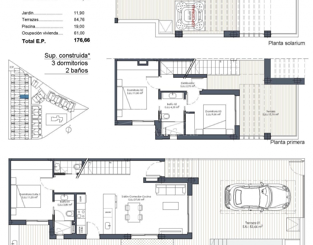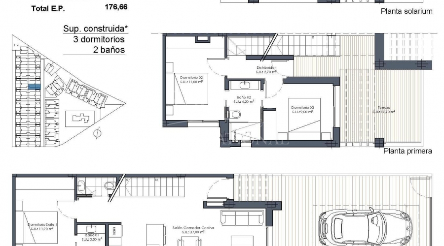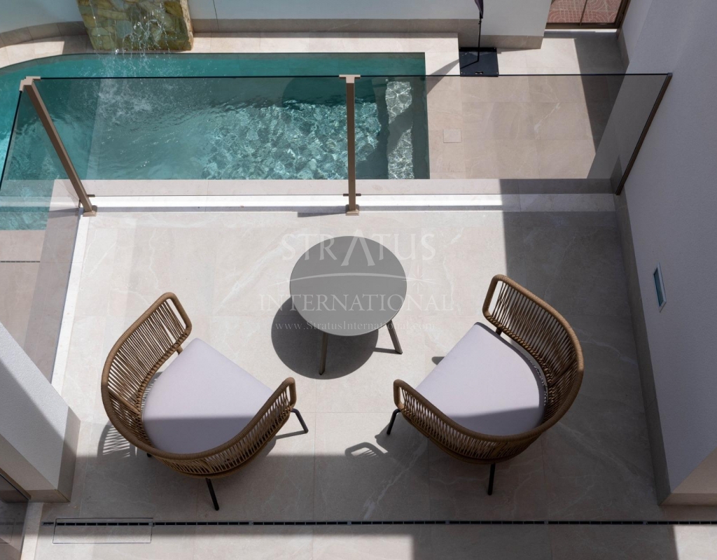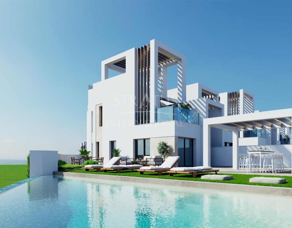 Villas neuves avec piscine privée à Serena Golf-Los Alcazares Collection boutique de maisons modernes près de la mer Découvrez un ensemble boutique exclusif de 37 villas modernes de style quadruple et jumelé situé à La Serena Golf à Los Alcazares, sur la magnifique Costa Calida. Ces maisons contemporaines sont conçues pour les acheteurs à la recherche d'intimité, de soleil et d'un style de vie en plein air, à seulement 300 mètres des eaux chaudes de la Mar Menor. Los Alcazares est une charmante ville côtière connue pour sa longue promenade, ses plages de sable et son atmosphère méditerranéenne détendue. La région bénéficie de plus de 300 jours d'ensoleillement par an et offre d'excellents restaurants, magasins, marinas et installations sportives. Son emplacement entre la mer et le terrain de golf en fait l'une des destinations les plus prisées de la région, tant pour y vivre à l'année que pour y passer ses vacances. Villas modernes avec piscine privée et espace de vie extérieur Chaque propriété dispose d'un terrain privé avec sa propre piscine, créant ainsi l'environnement idéal pour profiter du climat méditerranéen tout au long de l'année. Les maisons comprennent 3 chambres et 2 ou 3 salles de bains, ainsi que des toilettes pour invités, offrant des espaces de vie confortables et fonctionnels, idéaux pour les familles ou les invités. Les villas sont conçues pour mettre l'accent sur la vie en plein air. À côté de la piscine, vous trouverez un espace barbecue et des toilettes extérieures pour les invités, parfaits pour recevoir vos amis et votre famille. Le solarium sur le toit offre un espace supplémentaire pour se détendre au soleil et comprend une douche solaire avec pré-installation pour un jacuzzi et une cuisine d'été. Le stationnement est inclus à la fois dans le terrain privé et avec une place de parking souterraine attribuée. Finitions de haute qualité et équipements modernes Les maisons sont construites avec des matériaux modernes et des spécifications de qualité conçues pour le confort et le style. Cuisine entièrement équipée avec des appareils électroménagers en verre blanc Salles de bains avec miroirs rétroéclairés, parois de douche et meubles-lavabos Volets roulants motorisés Éclairage de base Climatisation centralisée entièrement installée Ces caractéristiques garantissent un confort de vie optimal, que la propriété soit utilisée comme résidence principale ou comme maison de vacances. Équipements de style resort et emplacement exceptionnel Les propriétaires bénéficient également d'un accès aux installations communes de style resort d'un complexe voisin. Ces équipements comprennent des jardins paysagers, une piscine commune de style lagon, un espace spa, une salle de sport et un sauna. L'emplacement offre un accès facile aux plages, aux terrains de golf et aux villes voisines. Plage de Mar Menor à 0,3 km Golf La Serena à côté du complexe Centre-ville de Los Alcazares à 2 km Cartagena à 22 km Murcie à 40 km Aéroport international de la région de Murcie à 30 km Aéroport d'Alicante Elche 90 km Les eaux peu profondes de la Mar Menor sont parfaites pour la baignade, la voile, le paddle surf et d'autres sports nautiques tout au long de l'année. Assurez-vous un style de vie méditerranéen à Los Alcazares Ces villas neuves offrent la combinaison parfaite entre plage, golf et confort moderne sur la Costa Calida. Contactez-nous dès aujourd'hui pour recevoir plus d'informations ou organiser une visite et vous assurer votre nouvelle maison à Serena Golf à Los Alcazares.Features