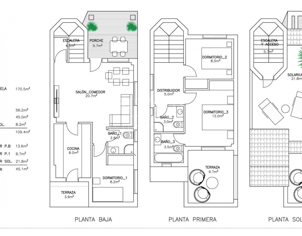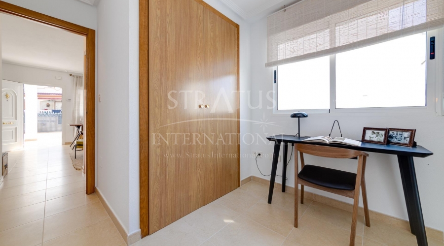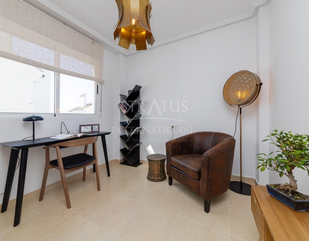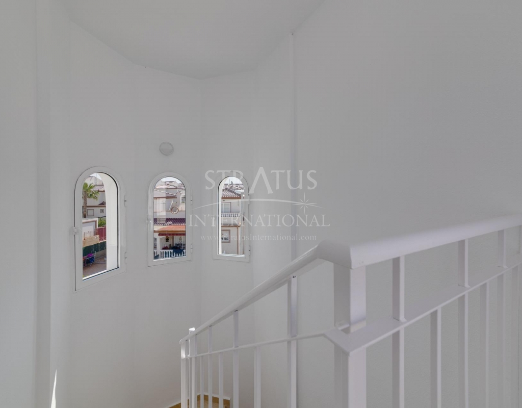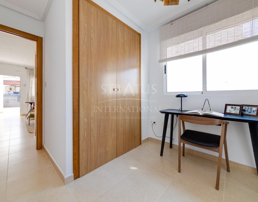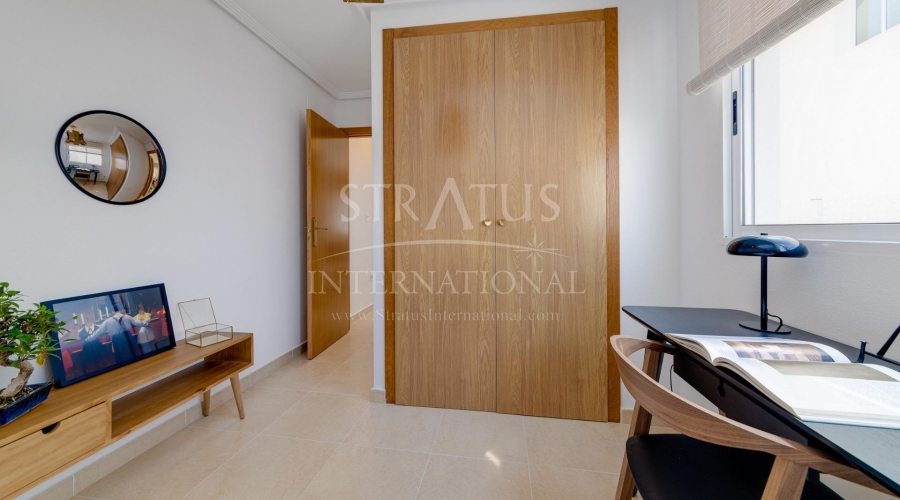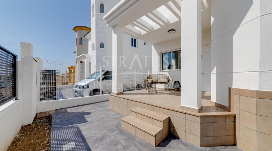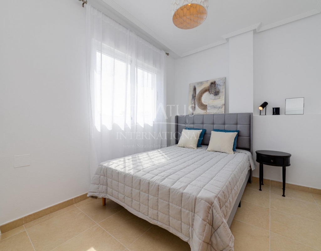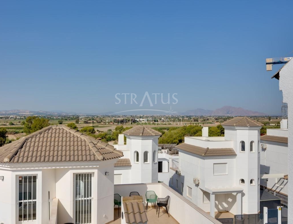 NEW BUILD RESIDENTIAL IN SAN FULGENCIO Residential complex of independent and semi-detached villas in San Fulgencio. The houses consist of 2-3 bedrooms, 3 bathrooms, living room and separate kitchen, 2 terraces on the ground floor, one terrace on the 2nd floor and a solarium on the roof. Each property has private garden and parking space. There is a large communal swimming pool. San Fulgencio is a comfortable and convenient area, known for its excellent infrastructure. In the immediate vicinity of cafes, restaurants, bars, pharmacies, 3 large supermarkets: Lidl, Aldi, Mercadona. Residential complex is located 10 minutes by car from the beach and also 10 minutes from the most famous in this area leisure and family center ¨La Marina Resort¨ with a water park, camping, gym, spa, restaurants, shops and cafes. Residential complex has a unique location – 30 minutes by car from the airport, 40 minutes from the city of Alicante and 20 minutes from the city of Torrevieja.Features