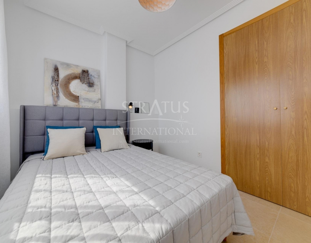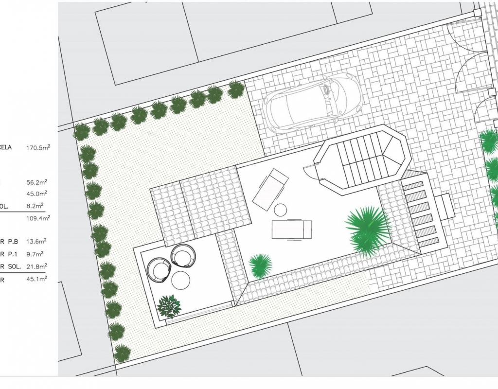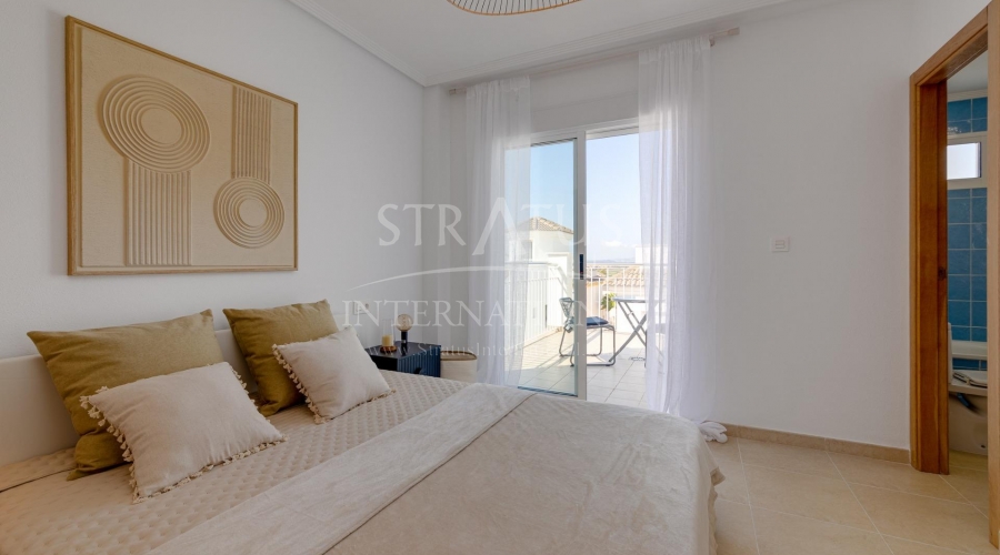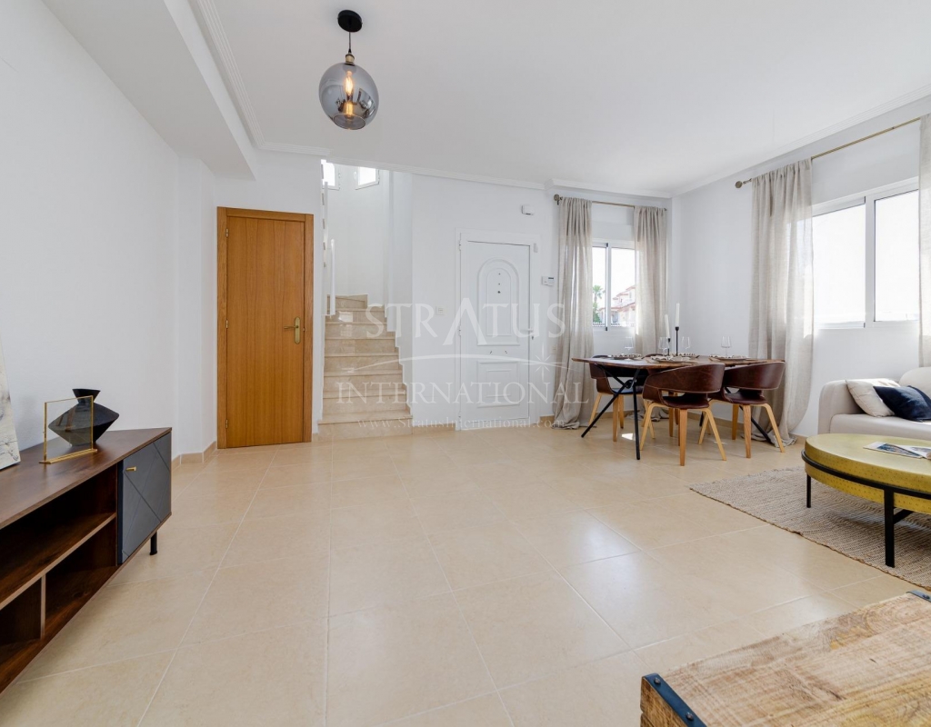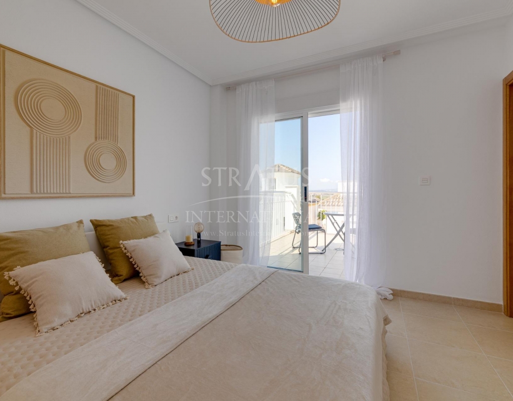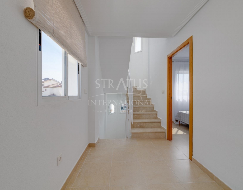 NEW BUILD RESIDENTIAL IN SAN FULGENCIO Residential complex of independent and semi-detached villas in San Fulgencio. The houses consist of 3 bedrooms, 3 bathrooms, living room and separate kitchen, 2 terraces on the ground floor, one terrace on the 2nd floor and a solarium on the roof. Each property has private garden and parking space. There is a large communal swimming pool. San Fulgencio is a comfortable and convenient area, known for its excellent infrastructure. In the immediate vicinity of cafes, restaurants, bars, pharmacies, 3 large supermarkets: Lidl, Aldi, Mercadona. Residential complex is located 10 minutes by car from the beach and also 10 minutes from the most famous in this area leisure and family center ¨La Marina Resort¨ with a water park, camping, gym, spa, restaurants, shops and cafes. Residential complex has a unique location – 30 minutes by car from the airport, 40 minutes from the city of Alicante and 20 minutes from the city of Torrevieja.Features