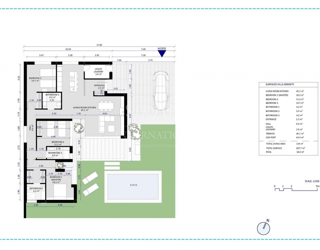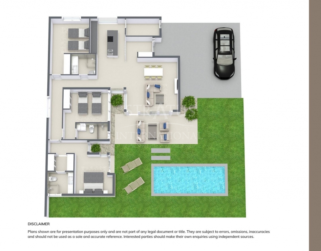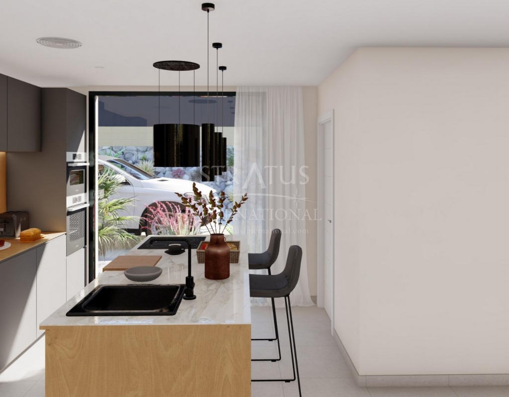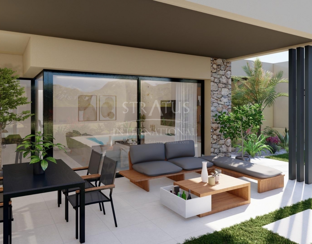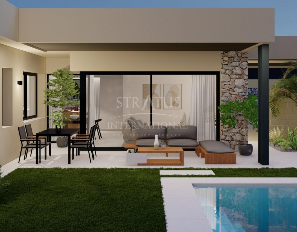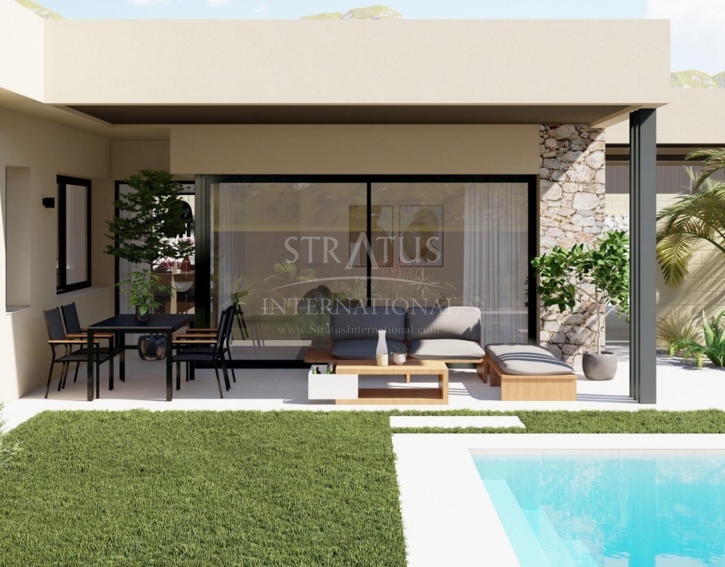 NEW BUILD VILLAS IN ALTAONA GOLF RESORT, MURCIA New development of beautiful villas in Altaona Golf resort, Murcia. Located in a privileged environment where we can live quietly, in contact with nature and the mountains, we get quality of life, fresh air and open spaces. The beautiful 1 level villa has 3 bedrooms, 3 bathrooms, open plan kitchen with living area, private gardens with the pool and parking space. Exclusive new build residential located in Altaona Golf just 15 minutes drive from the centre of Murcia city and 20 minutes from the beaches you can enjoy the tranquillity and security offered by the 18 hole golf course and the convenience of living close to all amenities. Murcia Corvera airport is only 15 minutes away by car.Features