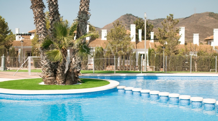 KEY READY TOWNHOUSES IN FUENTE ALAMO, MURCIA Residential of townhouses, independent and semi-detached villas in Fuente Álamo, Murcia. There are seven different models of houses to choose from, designed to suit everyone’s taste. Rustic designs combined with top quality materials and a focus on comfortable living space there is something for everyone. The residents of this private community of beautiful, spacious homes will also be able to enjoy their own communal gardens and swimming pools. This unusual design townhouses has 2 bedrooms and 1 bathroom, independent kitchen, living room with patio doors leading onto the covered porch. An options for a private pool at an extra cost. Fuente Álamo de Murcia is a town and municipality in the Region of Murcia, southern Spain. It is situated 22 km northwest of Cartagena and 35 km south west of Murcia. The town lies in the basin of the Mar Menor surrounded by the mountains of Algarrobo, Los Gómez, Los Victorias and the Carrascoy. The water from these mountains flows down into the Rambla de Fuente Álamo and then onto the Mar Menor. Fuente Álamo located 30 minutes from Murcia - Corvera airport.Features
