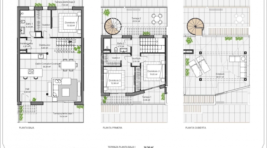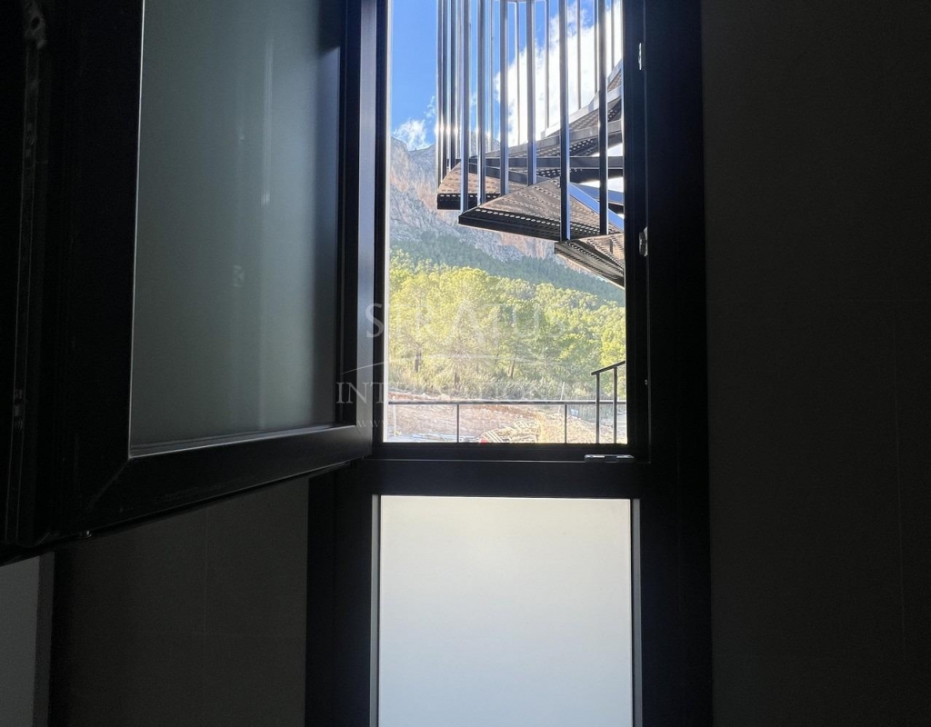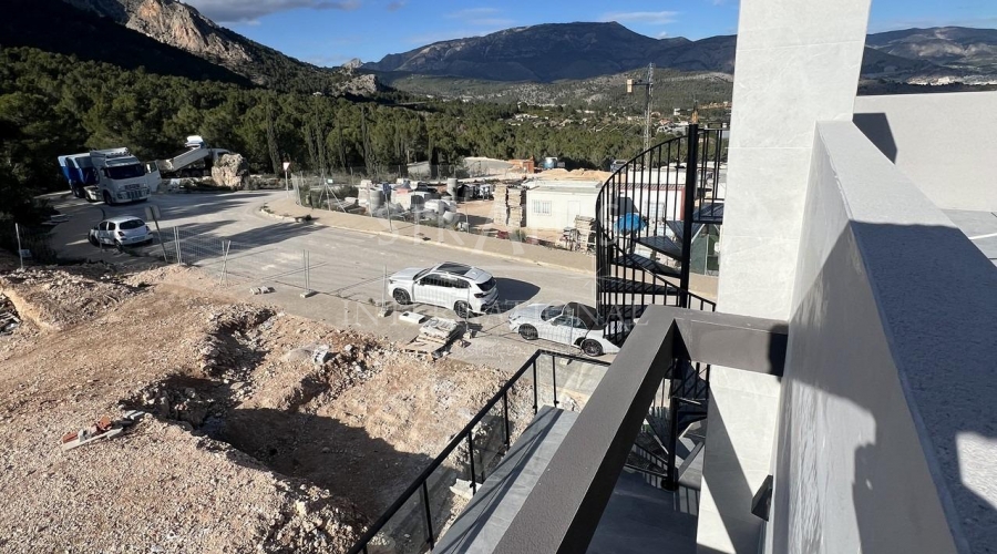 NEW BUILD TOWNHOUSES IN POLOP New Build modern townhouses and semi-detached villas with several terraces and solarium, totally fenced, with parking area for vehicles and private swimming pool in Polop. Modern properties with 3 spacious bedrooms with built-in wardrobes (the main one on the ground floor, with bathroom and dressing room en suite), 2 spacious bathrooms, large living-dining room with open kitchen, spacious terraces. Kitchen equipped with base units and silestone worktops, with ceramic hob, oven, extractor hood, fridge, washing machine, dishwasher, and aerothermal heater. First qualities: interior carpentry in wood and white lacquered laminates, exterior carpentry in anthracite grey pvc with double glazing and thermal bridge break, and automatic blinds with aluminium slats, ceramic floors of 1st quality non-slip, smooth walls, security door with 5 anchor points, large built-in wardrobes. The city of Polop offers an amazing range of options for lovers of the great outdoors surrounded by nature and unparalleled peace. The municipality enjoys a Mediterranean climate with cooler temperatures and cleaner air, located less than 10 kilometres from Benidorm, Altea and their beaches. It stretches from the rivers Guadalest and Algar to the town of Villajoyosa, including the beaches of Albir and Benidorm; inland it borders Callosa and Guadalest.Features