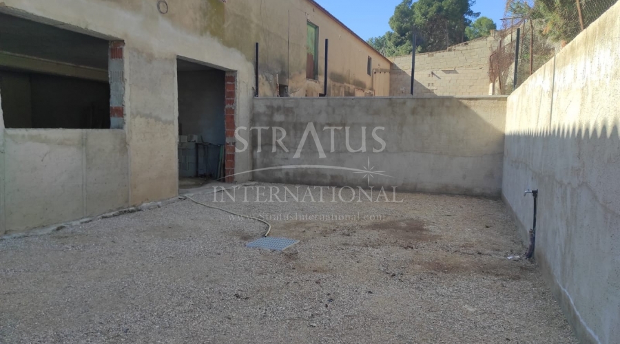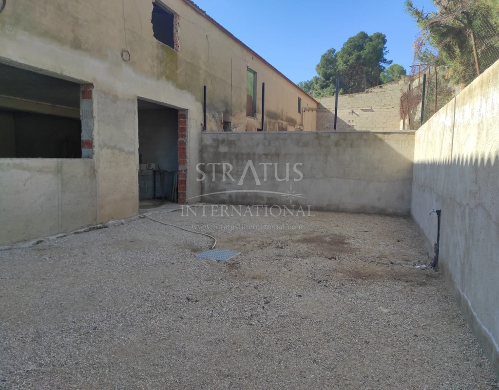 We are proud to present this great renovation project in a small hamlet between Sax and Villena. The property is part of a large country finca which has been spilt in to various, smaller properties. The main house when finished would be 4/5 bedrooms, 2/3 bathrooms and just over 200 m2 on 2 floors. The downstairs would consist of a large open planned living/dining room with American style kitchen. There is also large family bathroom with shower and large bedroom/study. The upstairs area would consist of a further 4 double bedrooms and 2 bathrooms, one of which would be the ensuite for the master bedroom. All the major structure of the main house has been renewed including the roof. There is a nice 80m2 outside space to the rear of the house. This area would be perfect for a swimming pool and entertaining area. To the front of the house there is a large, roofed area that would taken off to give more light to the property. There would be space for a double garage and there is also a large workshop area that could be converted into more living space of a guest suit for family. All the planning and project are in place and remember that our sister company, HOTCBSpain construccion S.L can hand over to property to you key ready.Build