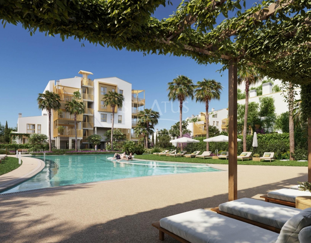 NEW BUILD RESIDENTIAL IN EL VERGEL New Build residential complex of 1, 2 and 3 bedrooms apartments and penthouses in El Vergel designed as compact structures a response to the architects and designers constant pursuit of efficiency in the development. These decisions, spread throughout the various key points of the residential area, ensure that your home stays at the right temperature both in winter and summer. The main feature of the properties will be their large terraces. With regular proportions, they are the ideal spaces for outdoor living. The integration of the living room with these spacious terraces will unite your home as a livable volume where the interior merges with the exterior. Moreover, the construction in the area is planned to have minimal impact. The careful selection of construction materials has allowed you to enjoy the extraordinary views offered by the natural environment of residential complex permanently. Properties organized around a living room open to a terrace-bedroom. Live inside and outside the house. The common areas of this complex embody a deeply natural spirit. As you walk through different areas, you’ll find ideal spaces for strolling, engaging in sports activities, and, above all, using bicycles. Gather with your partner, family, or friends at the social clubs; enjoy open squares protected from the sun and unwind in cool spots where vegetation thrives and air constantly circulates. What else? Take note: ample and numerous swimming pools scattered throughout the residential area, sensory gardens, spaces for yoga practice, self-consumption vegetable gardens, bicycle workshops, and pet washing zones. Always seeking the utmost respect for nature, the project is conceived with brilliant sustainable strategies: rainwater collection, channeling, and reuse systems that will give life to a lush sustainable ecosystem; refreshing gardens with native species that require minimal maintenance; large surfaces of photovoltaic panels for self-consumption energy generation; even multiple charging stations for electric mobile vehicles. Luxury is having everything you need while respecting the surrounding ecosystem. All residents of this complex will have access to the Beach Club on the beachfront. Space, where they can organize their own events, have a charging point and parking for electric bikes, store nautical equipment, lockers, and take a shower or dip in the pool after enjoying the sea. A gateway to the sea on the shores of La Almadraba beach in Denia. Just a few meters from La Almadraba beach in El Verger and a few kilometers from Denia, a project is born that defies convention. Its intention is nothing less than making the impossible a reality: a residential development that aspires to become a sustainable, healthy, and respectful community.Features