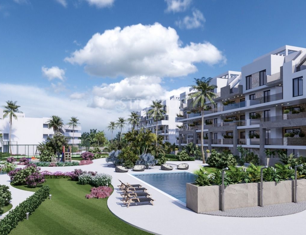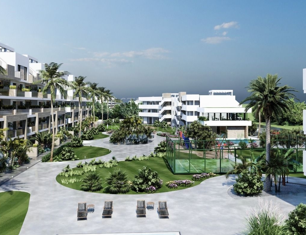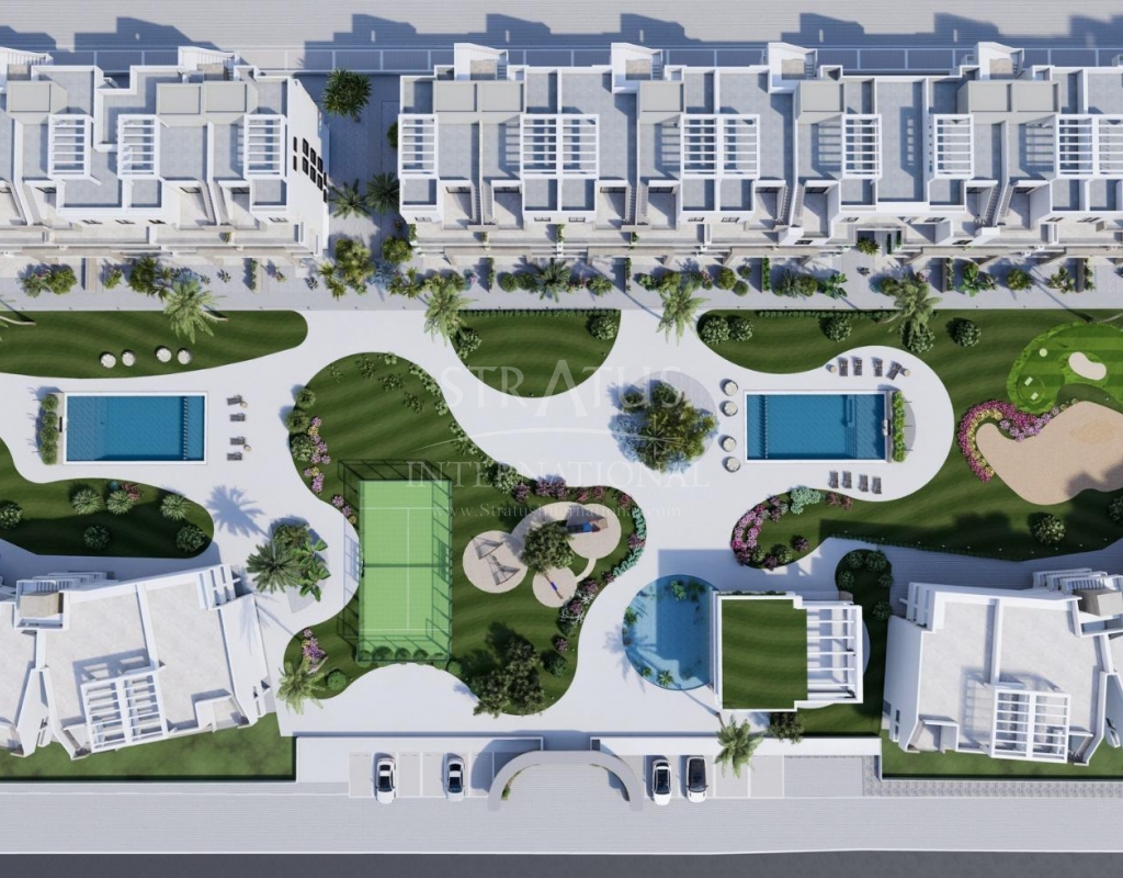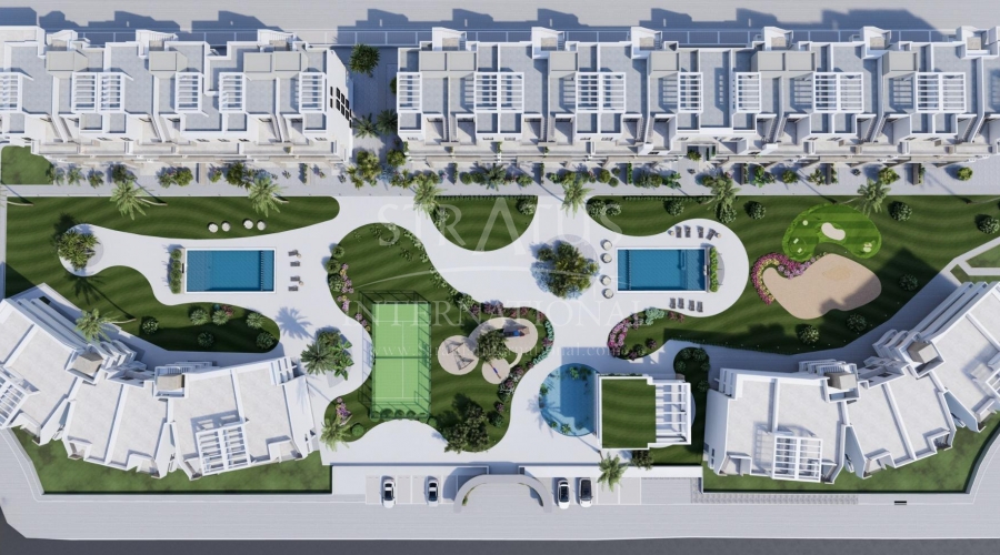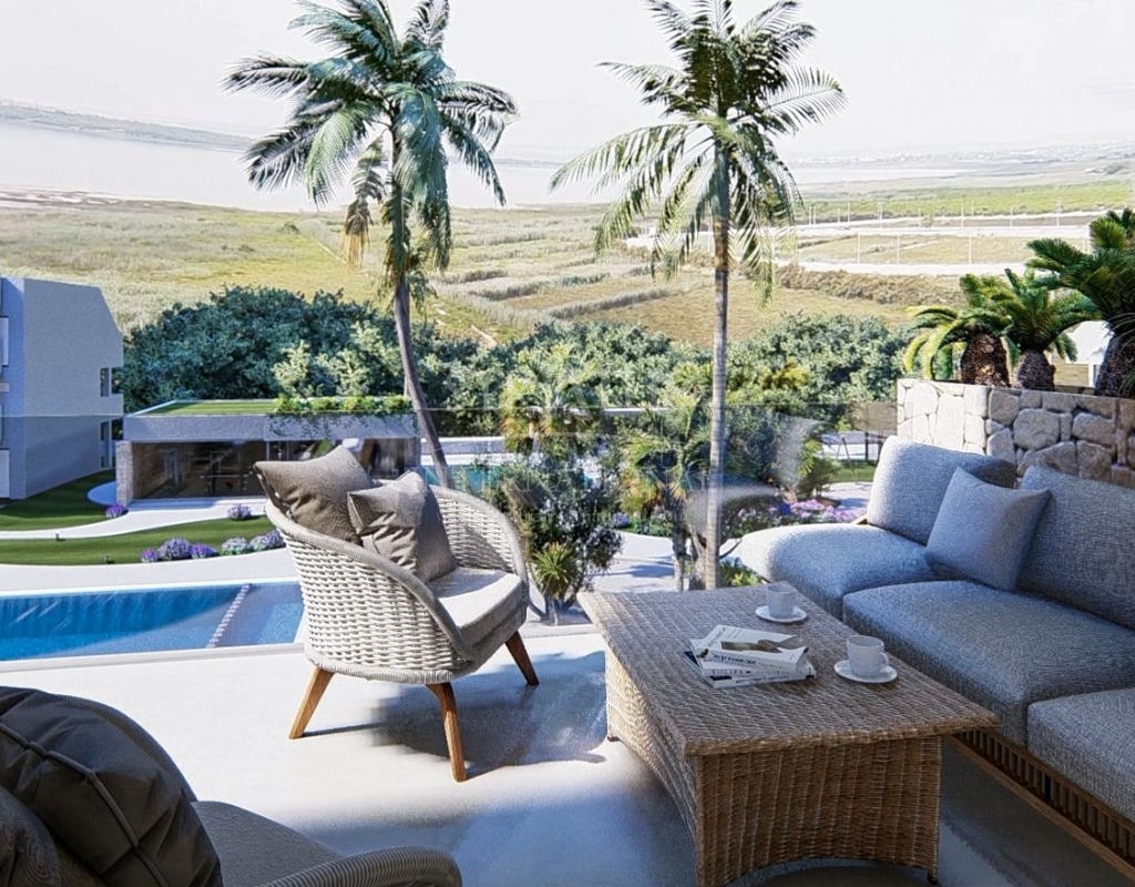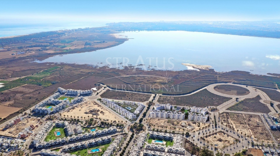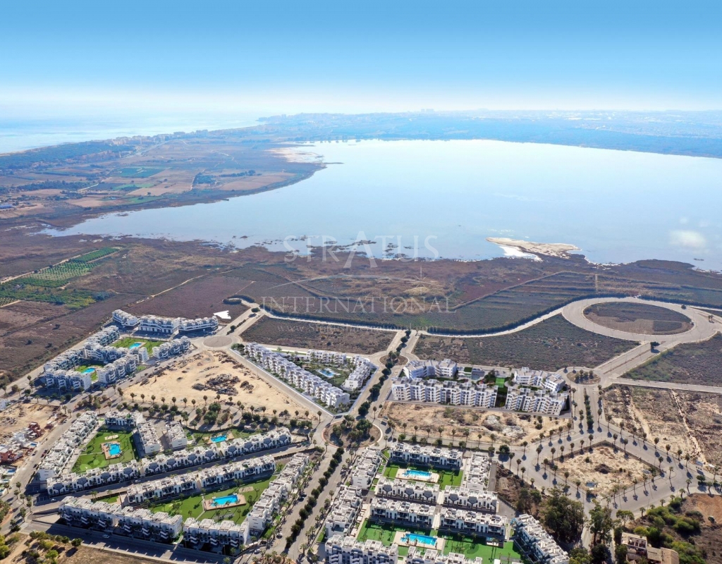 NEW BUILD RESIDENTIAL IN EL RASO, GUARDAMAR DEL SEGURA New Build private residential complex of apartments in El Raso, Guardamar del Segura. Complex consisting of 135 homes with 2 or 3 bedrooms in blocks of 3 or 5 floors plus solarium, designed in a minimalist way and with high quality standards, its modern architecture harmonises with our large open spaces, nature and swimming pools, offering a unique and peaceful atmosphere. Beautiful residential complexes, including a glassed-in GYM-Spa area with views of green areas, swimming pools and from its terrace overlooking the salt lagoon of La Mata, paddle tennis court, etc. Furniture pack included in the price. Parking space included in the price. Development is located on a unique and unrepeatable plot, bordering the natural landscape of the salt lagoon, enjoy its biodiversity and unique environment, in El Raso de Guardamar del Segura, with all kinds of services and amenities and close to the best beaches of the Mediterranean. At the same time, thanks to the proximity of El Moncayo beach, you will be able to go for a bike ride and enjoy the best climate of the Costa Blanca. Additionally and thanks to the five levels of some of the blocks that make up the residential, all of them facing south, we include in our luxury penthouses, fully equipped kitchen on the solarium, outdoor shower (hot/cold water), and jacuzzi area, to complete the unique experience of living in front of a unique and unrepeatable natural environment. El Raso is a part of Guardamar del Segura. Guardamar del Segura is a town located on the Costa Blanca South. With its 11 kilometres of natural beach and its large pine forest. Guardamar del Segura has a large port with activities throughout the year, it has a large sports centre with paddle tennis, tennis, soccer and a large heated swimming pool that works all year round. It also has a library where there is free wifi and computers. Guardamar del Segura is only 20km away from the Alicante - Elche (El Altet) airport, where there are many flights every day with connections to the main European cities, due to the demand for tourists on the Costa Blanca.Extras