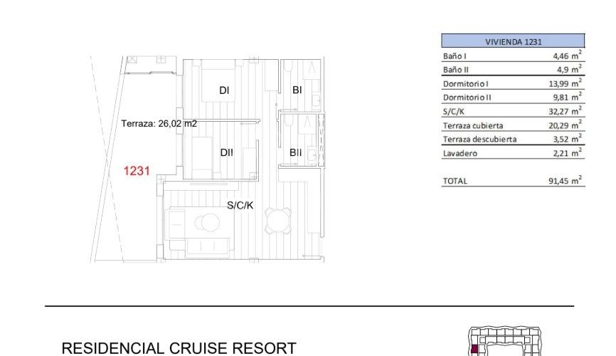 Discover Modern Living at the New Residential Development in San Miguel de Salinas Spacious Apartments with Stunning Amenities This new construction residential complex in San Miguel de Salinas offers contemporary 2- and 3-bedroom apartments with expansive terraces, thoughtfully distributed across seven floors. The gated community provides top-notch facilities, including separate swimming pools for adults and children, lush green areas, a children’s playground, and an adult wellness zone with a biosaludable circuit. Prime Location on the Costa Blanca Nestled in the charming town of San Miguel de Salinas, this development enjoys a strategic location on the Costa Blanca. It’s within walking distance of the town center, where you’ll find all the essential services for daily living, including shops, restaurants, and healthcare facilities. The property is a short drive from several points of interest: Las Colinas and Campoamor Golf Courses: Just 7 km away, perfect for golf enthusiasts. Beaches of Orihuela Costa and Torrevieja: Located approximately 10 km from the residence, offering beautiful sandy shores. Shopping Centers: Zenia Boulevard, a popular shopping destination, is only 9 km away. Alicante Airport: A convenient 50 km drive. Murcia Corvera Airport: About 55 km away, ideal for regional connections. High-Quality Specifications Each apartment is designed with modern finishes and functionality in mind: Fully equipped kitchens with induction cooktops and extractor hoods. Porcelain tile flooring throughout. Compact roller shutters for added privacy and convenience. White laminated wardrobes with overhead storage in bedrooms. Pre-installed air conditioning in the living room and bedrooms. Energy-efficient aerothermal water heaters with a 150-liter capacity. Additionally, all apartments include a designated parking space, with an optional storage room available at an additional cost. About San Miguel de Salinas San Miguel de Salinas is a picturesque municipality in the Vega Baja del Segura region, part of the vibrant Valencian Community. Situated close to the Murcia border, the town offers breathtaking views of the Torrevieja and La Mata lagoons, as well as a peaceful, family-friendly environment. Your New Home Awaits Whether you're looking for a vacation retreat or a permanent residence, this new development in San Miguel de Salinas combines luxury, convenience, and an unbeatable location. Contact us today to schedule a visit and take the first step toward owning your dream property on the Costa Blanca!Features