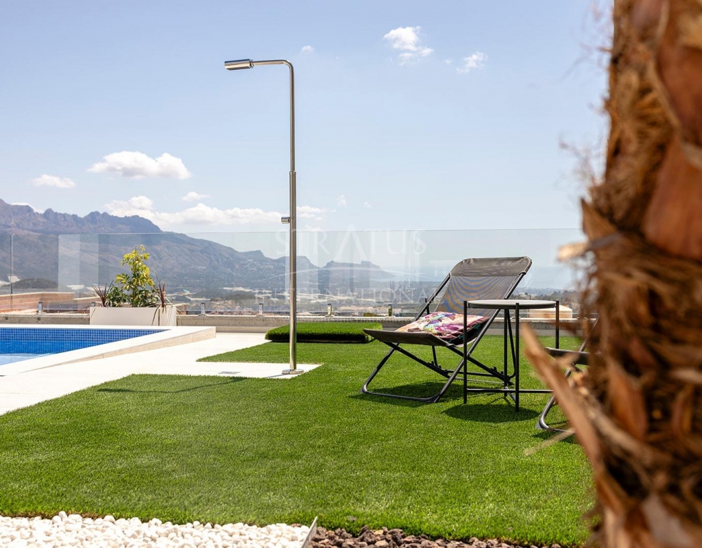 Stunning New Build Villas in Polop with Sea Views Modern Villas with Spacious Plots and Private Pools Discover these exclusive new-build villas in Polop, located on large plots starting from 351 m². These homes offer a perfect blend of modern design, comfort, and breathtaking sea views. Each villa features a 7x3m private swimming pool with a sunbathing area, a large terrace and porch, and private parking space, making it the ideal retreat for those seeking both tranquility and luxury. Two Villa Models to Suit Your Lifestyle Buyers can choose between two different villa designs, available in one or two-story layouts. For those looking to maximize their outdoor space, an optional private solarium is available, offering panoramic sea views—the perfect spot to soak up the Mediterranean sunshine that graces the region most of the year. High-Quality Finishes and Energy Efficiency These villas are built with top-quality materials and modern finishes, ensuring comfort and energy efficiency: Motorized blinds in the living room, kitchen, and bedrooms. Underfloor heating in all bathrooms. Pre-installed ducted air conditioning for year-round comfort. Mediterranean-style landscaped garden, designed for low maintenance. Reinforced security entrance door for added peace of mind. Aerothermal system for hot water supply. Three photovoltaic solar panels, contributing to an A-rated energy efficiency certificate. Prime Location in Polop, Close to the Coast Polop is a charming Mediterranean town in the Marina Baja region, northeast of Alicante. Known for its rich history, vibrant gastronomy, and stunning natural surroundings, the town offers a peaceful lifestyle while remaining close to the coast. Nearby Points of Interest: Polop to Benidorm – 15 minutes by car (famous for beaches, shopping, and nightlife). Polop to Altea – 15 minutes by car (renowned for its historic old town and marina). Polop to Alicante City – 30 minutes. Alicante International Airport – 40 minutes. La Nucía – 5 minutes (famous for world-class sports facilities). Nearest beach – 8 km. The Perfect Combination of Nature and Convenience With easy access to the AP-7 motorway, residents enjoy quick connections to all major towns along the Costa Blanca. Polop also offers scenic hiking trails, making it an excellent choice for nature lovers and outdoor enthusiasts. Secure your dream home today! Contact us for more information or to schedule a visit.Features