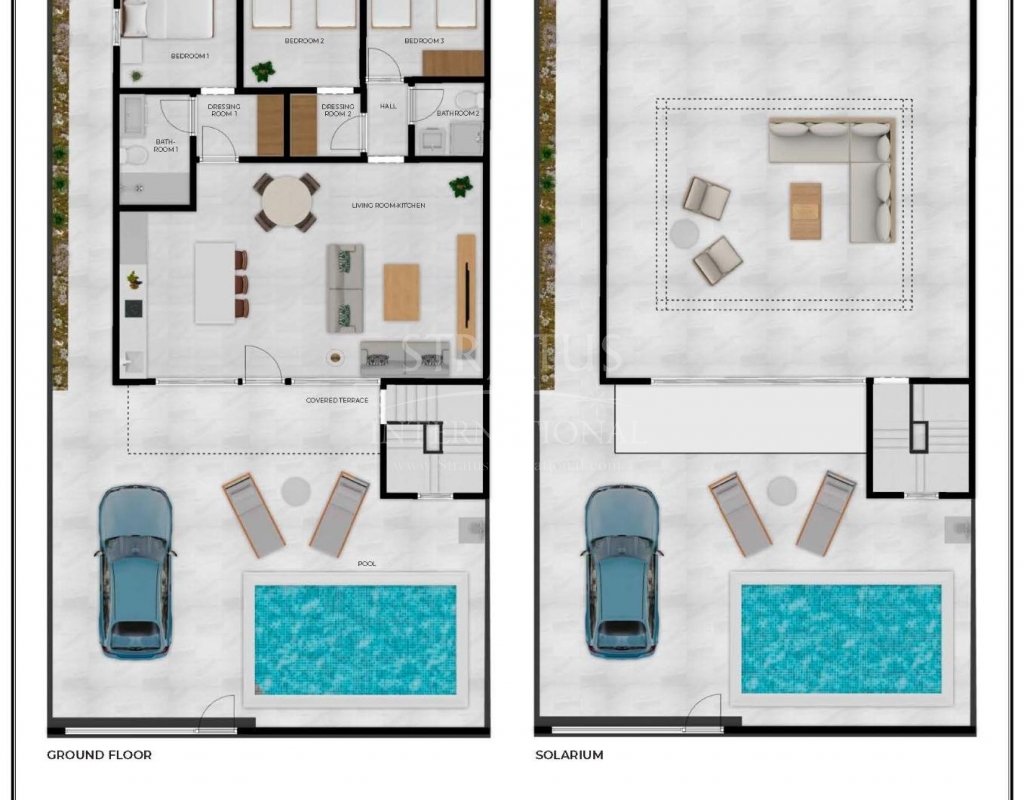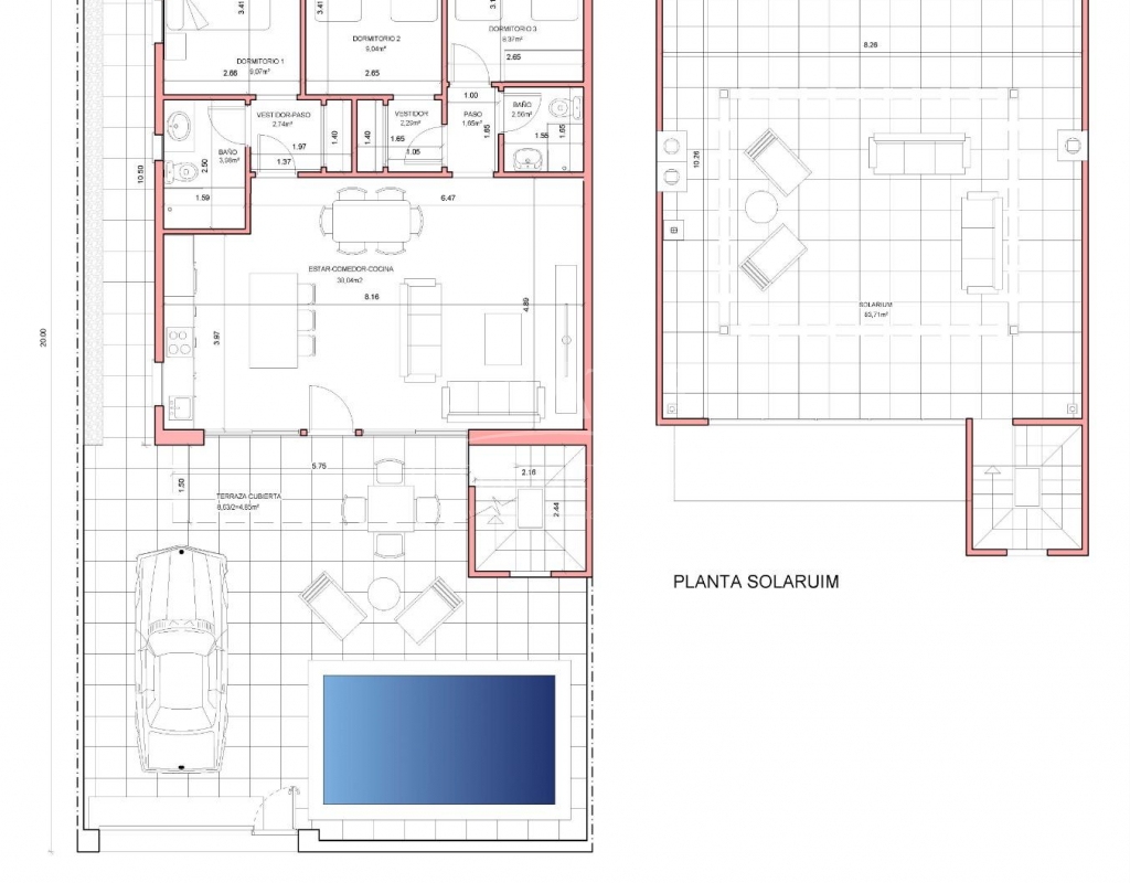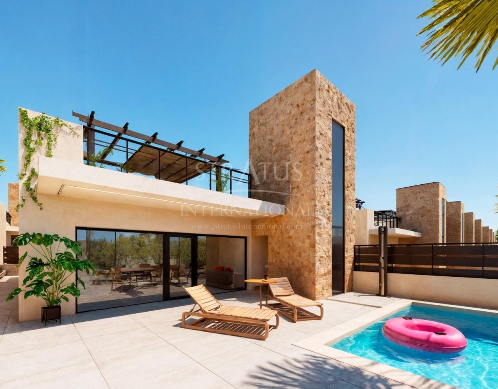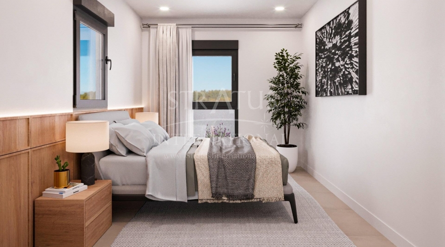 Newly built residential development of villas and townhouses in Fuente Álamo, Murcia. This location offers an exceptional natural environment, far from the hustle and bustle of big cities and the tourist pressure of the coast. Furthermore, we are committed to working from a sustainable development perspective, minimising our environmental impact and maximising integration with the local community. Here, your dreams of a peaceful and sustainable lifestyle become a reality. Imagine waking up every morning in a stunning natural setting, surrounded by peaceful landscapes and the unique beauty of the Murcian countryside. This development prioritises energy efficiency, the use of environmentally friendly materials and harmonious integration with the rural environment. From the design of the property to the planning of the development, we strive to reduce our carbon footprint and promote responsible practices in all our operations. Full ducted air conditioning, hot/cold. Video intercom system. Colour-lacquered security access door with lock and anti-vandal security fittings. Cupboards with storage space, lined inside, lacquered in white. Kitchen furniture with appliances included. Hot water by aerothermal energy. Electric blinds. Pergolas in solariums. Private 2.5x4.5m swimming pool with underwater night lighting and salt chlorination system. Pre-installation for outdoor kitchen/jacuzzi in solarium. Fuente Álamo de Murcia is a town and municipality in the Region of Murcia, in southern Spain. It is located 22 km northwest of Cartagena and 35 km southwest of Murcia. The town is located in the Mar Menor basin, surrounded by the Algarrobo, Los Gómez, Los Victorias and Carrascoy mountain ranges. The water from these mountains flows down into the Rambla de Fuente Álamo and then into the Mar Menor. Fuente Álamo is 30 minutes from Murcia - Corvera airport. Nearest shops 6 km away.Features
