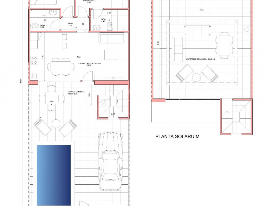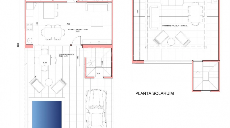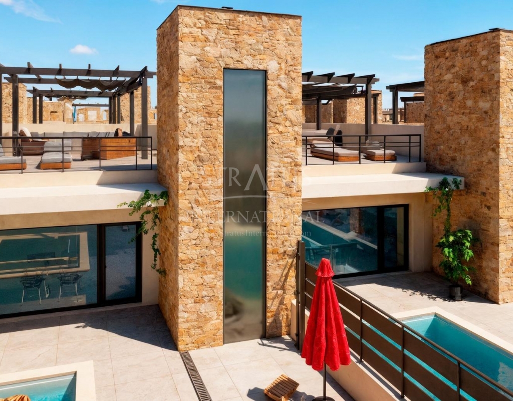 Newly built residential development of villas and townhouses in Fuente Álamo, Murcia. This location offers an exceptional natural environment, far from the hustle and bustle of big cities and the tourist pressure of the coast. Furthermore, we are committed to working from a sustainable development perspective, minimising our environmental impact and maximising integration with the local community. Here, your dreams of a peaceful and sustainable lifestyle become a reality. Imagine waking up every morning in a stunning natural setting, surrounded by peaceful landscapes and the unique beauty of the Murcian countryside. This development prioritises energy efficiency, the use of environmentally friendly materials and harmonious integration with the rural environment. From the design of the property to the planning of the development, we strive to reduce our carbon footprint and promote responsible practices in all our operations. Full ducted air conditioning, hot/cold. Video intercom system. Colour-lacquered security access door with lock and anti-vandal security fittings. Cupboards with storage space, lined inside, lacquered in white. Kitchen furniture with appliances included. Hot water by aerothermal energy. Electric blinds. Pergolas in solariums. Private 2.5x4.5m swimming pool with underwater night lighting and salt chlorination system. Pre-installation for outdoor kitchen/jacuzzi in solarium. Fuente Álamo de Murcia is a town and municipality in the Region of Murcia, in southern Spain. It is located 22 km northwest of Cartagena and 35 km southwest of Murcia. The town is located in the Mar Menor basin, surrounded by the Algarrobo, Los Gómez, Los Victorias and Carrascoy mountain ranges. The water from these mountains flows down into the Rambla de Fuente Álamo and then into the Mar Menor. Fuente Álamo is 30 minutes from Murcia - Corvera airport. Nearest shops 6 km away.Features