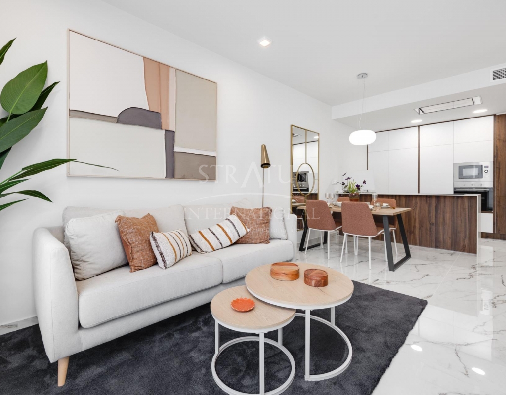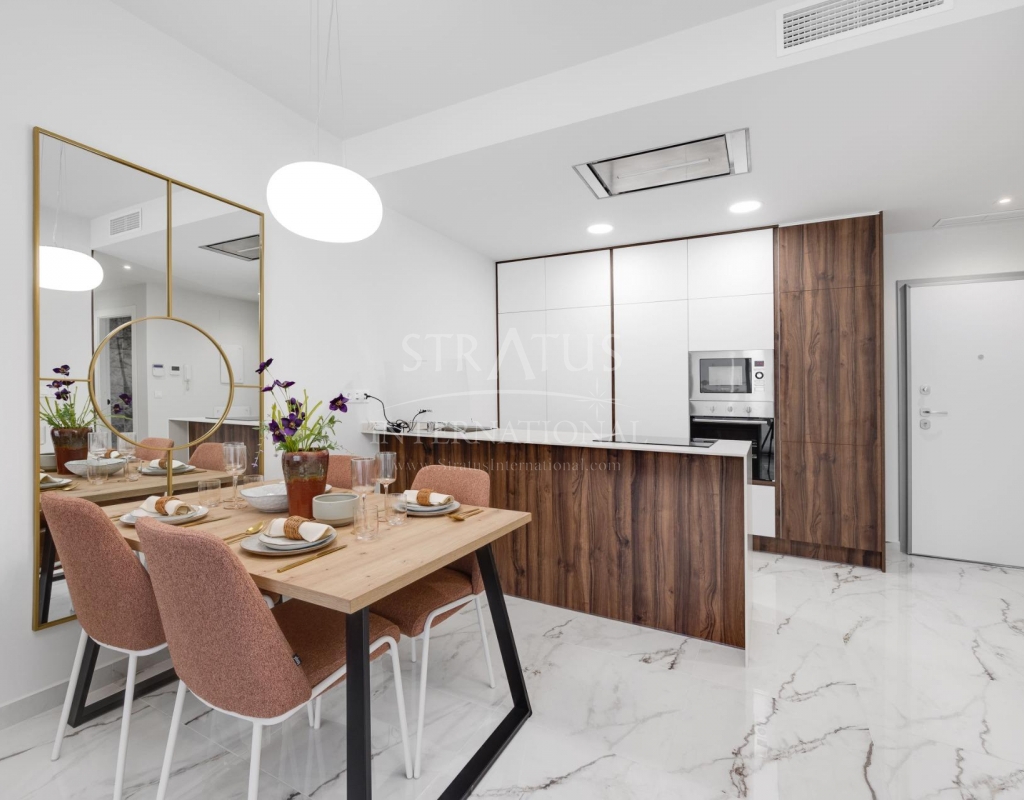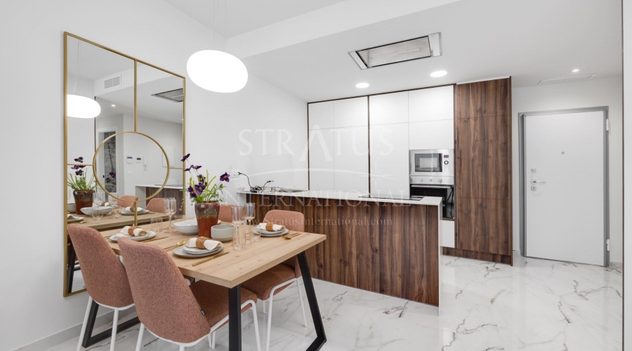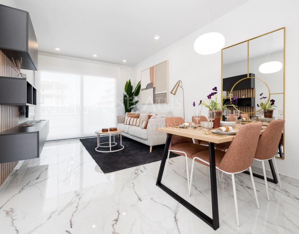 New residential development in San Miguel de Salinas, a stone's throw from the centre Spacious apartments with impressive amenities This newly built residential complex in San Miguel de Salinas offers modern 2-bedroom apartments with spacious terraces, carefully distributed over seven floors. The gated community offers first-class facilities, including separate swimming pools for adults and children, lush green areas, a children's playground and a petanque area. Privileged location on the Costa Blanca Nestled in the charming town of San Miguel de Salinas, this development enjoys a strategic location on the Costa Blanca. It is within walking distance of the town centre, where you will find all the essential services for daily life, including shops, restaurants and health centres. The property is a short drive from several points of interest: Las Colinas and Campoamor Golf Courses: Just 7 km away, perfect for golf lovers. Beaches of Orihuela Costa and Torrevieja: Located approximately 10 km from the residence, they offer beautiful sandy shores. Shopping Centres: Zenia Boulevard, a popular shopping destination, is only 9 km away. Alicante Airport: 50 km away. Murcia Corvera Airport: About 55 km away, ideal for regional connections. High-quality specifications Each apartment is designed with modern finishes and functionality in mind: Fully equipped kitchens with appliances included. Motorised blinds. Security entrance door. Hot water by aerothermal energy. Fully installed ducted air conditioning. LAUNCH OFFER: Furniture pack included for the first units sold. In addition, all apartments include a designated parking space. About San Miguel de Salinas San Miguel de Salinas is a picturesque municipality in the Vega Baja del Segura region, which forms part of the vibrant Valencian Community. Located near the border with Murcia, the town offers stunning views of the Torrevieja and La Mata lagoons, as well as a peaceful, family-friendly atmosphere. Your new home awaits Whether you are looking for a holiday retreat or a permanent residence, this new development in San Miguel de Salinas combines luxury, comfort and an unbeatable location. Contact us today to schedule a visit and take the first step towards owning your dream home on the Costa Blanca.Extras