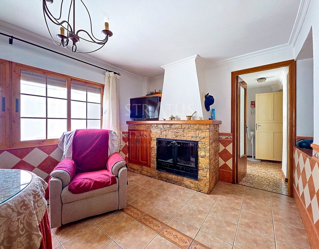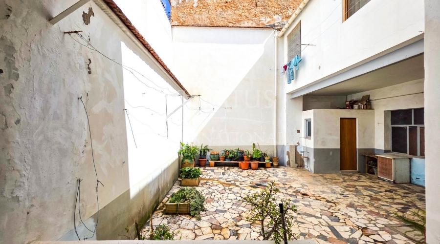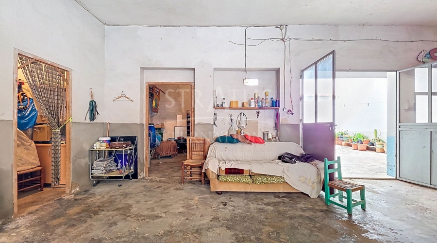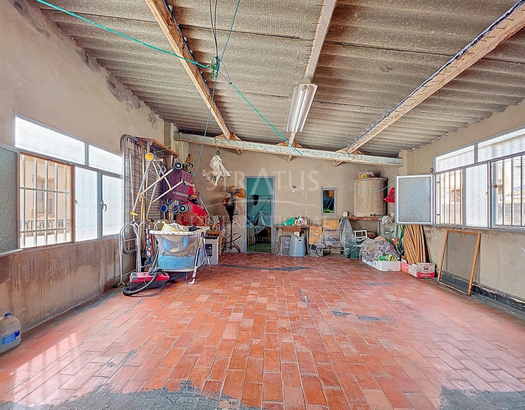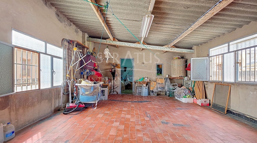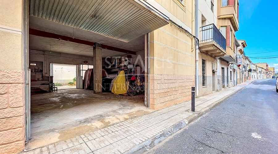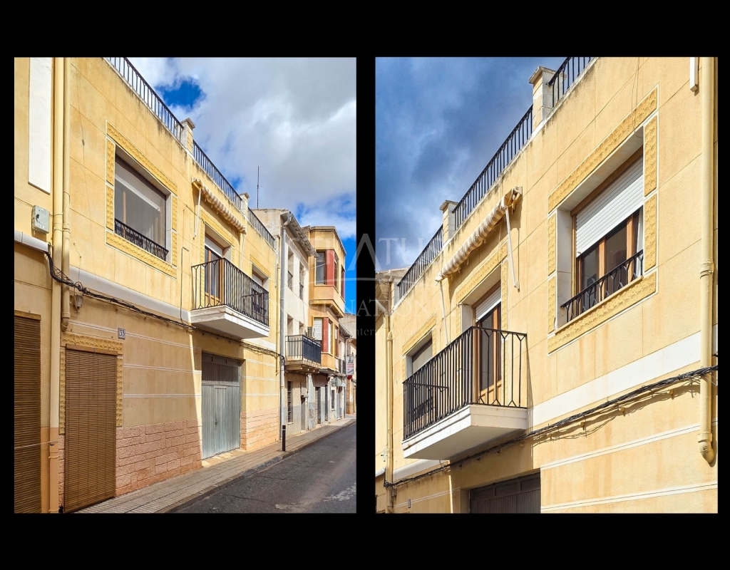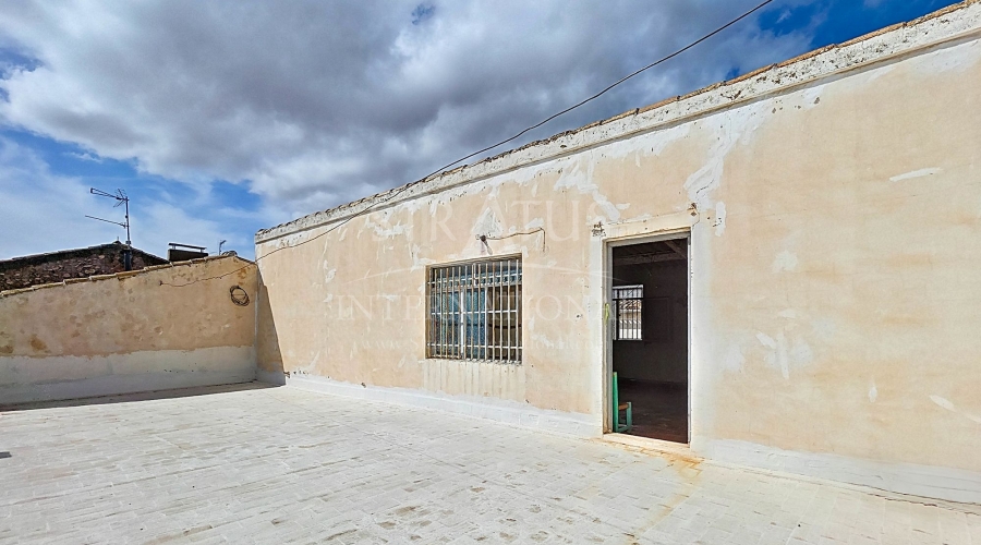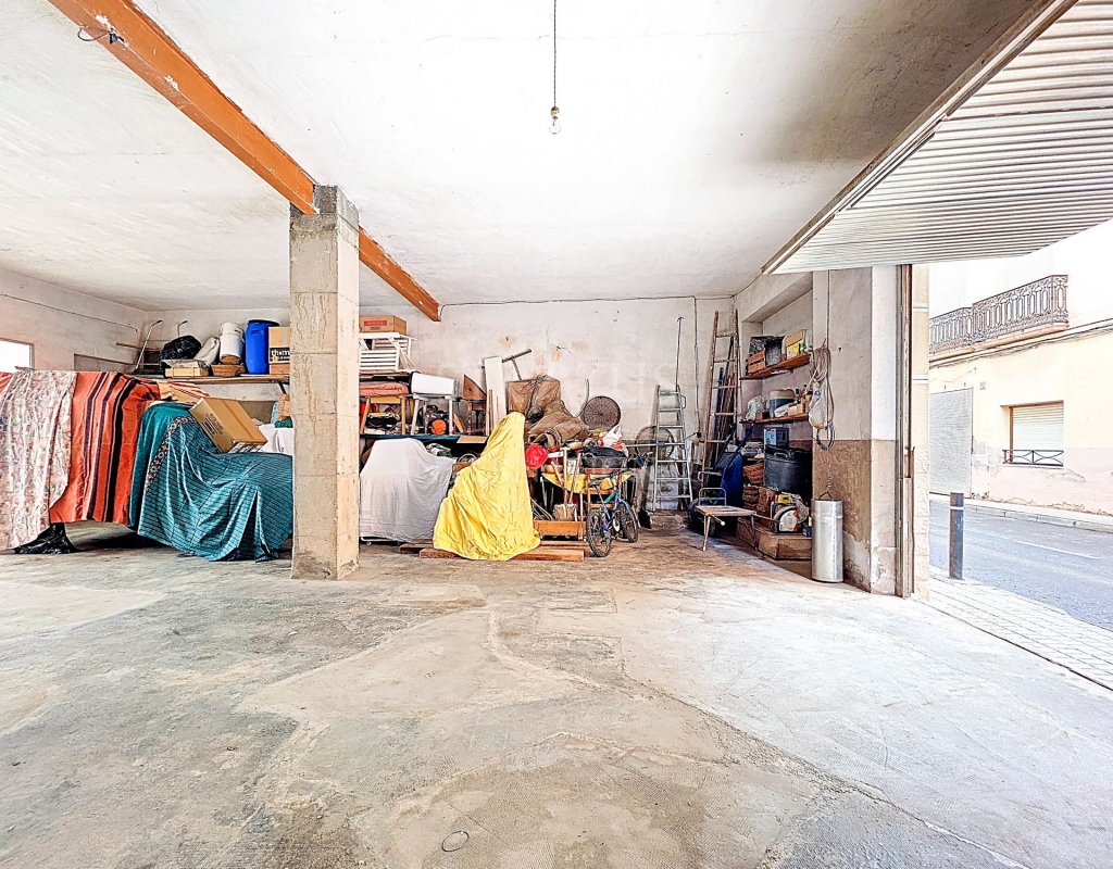 Spacious Village House with Garage and Patio This exceptionally spacious property, spread across three floors, features two entrances on two different streets in the popular town of Pinoso. Additionally, there is a separate access to the enormous garage, with a cozy patio located behind it. The Property – Ground Floor From one entrance, the house is on street level, while the living area is reached via a staircase from the other street. On the ground floor, there is a very large garage with enough space for five cars. The garage also has two separate rooms, ideal for use as storage or a workshop. It also offers the possibility of converting one space into a bedroom and using the rest of the large area as a guest suite or home office. From the garage, you can access the spacious patio, which also includes a small toilet. The patio is partially covered, providing a perfect spot for creating an outdoor kitchen or even installing a jacuzzi. Let the Spanish sun come! The Property – Living Floor The living floor has two living rooms. One features a cozy fireplace and is connected to the kitchen. There is also a pantry, and access to a small hallway that leads to a bathroom, a bedroom, and the stairs to the upper floor. The second living room on this floor has French doors leading to a balcony and is connected to one of the four bedrooms (two of which have built-in wardrobes, and one has storage space under the stairs). There is another bathroom on this floor, as well as a utility room and a spacious hallway. The Property – Upper Floor There is also an upper floor with a fantastic large rooftop terrace where you can enjoy the sun all day long. Next to the terrace is a large room that can be used as desired. A separate room has already been created here. This spacious village house offers a great opportunity to live in the sought-after town of Pinoso and is being offered at an attractive price, leaving room for modernization if desired. The property is connected to electricity, sewerage, water (with an additional deposit in the garage), and has an air conditioning unit. Pinoso Pinoso offers all daily amenities, including supermarkets, schools, a medical center, and sports facilities, as well as a wide range of restaurants. Both Alicante and Murcia airports, as well as the beaches, are within an hour's reach. Don't miss this opportunity and schedule a viewing today!Build