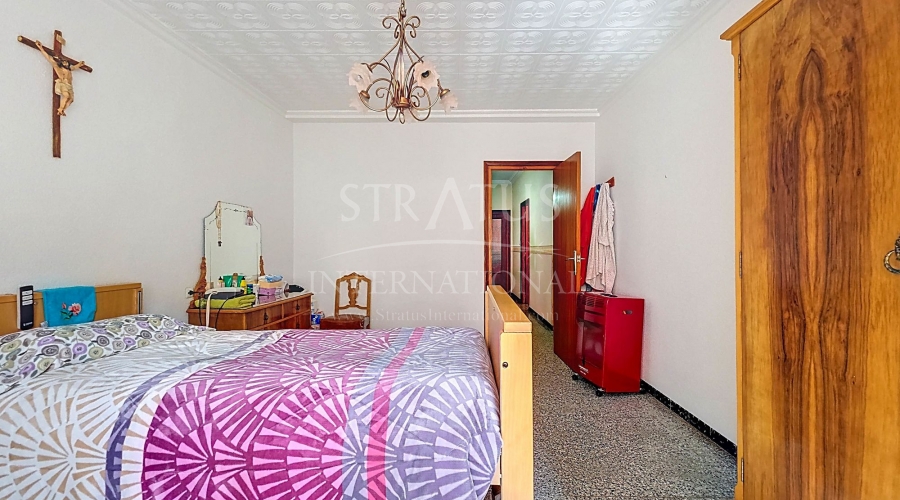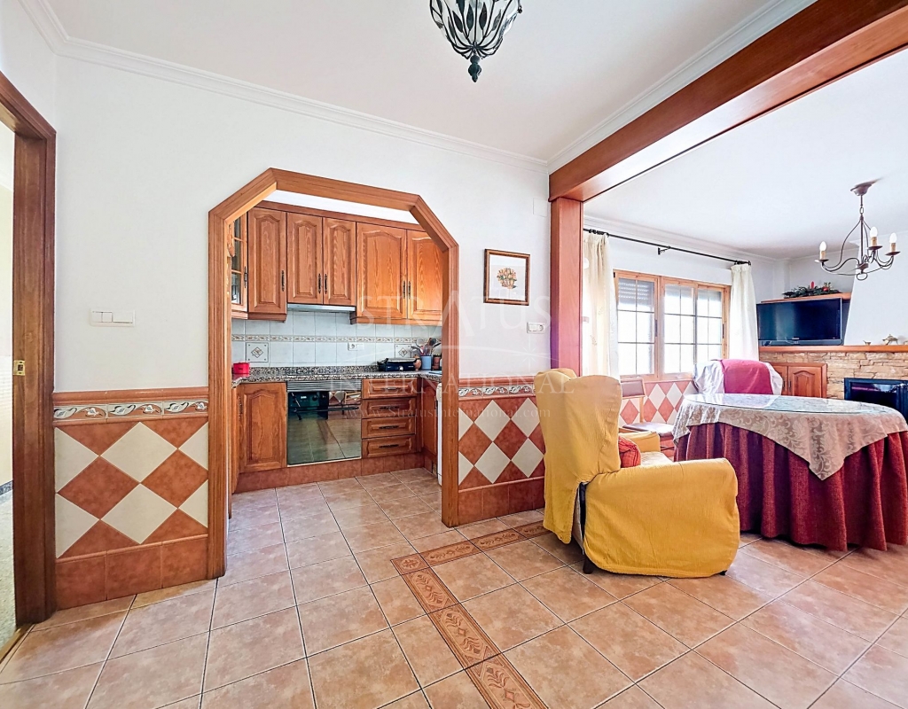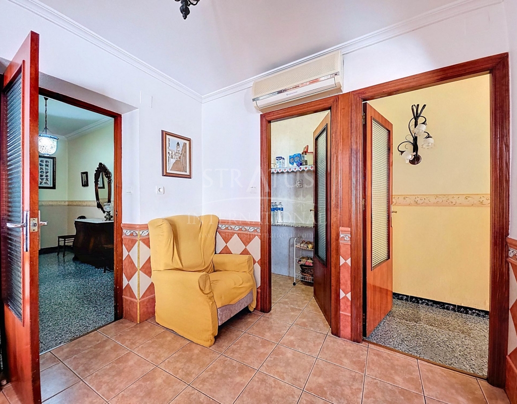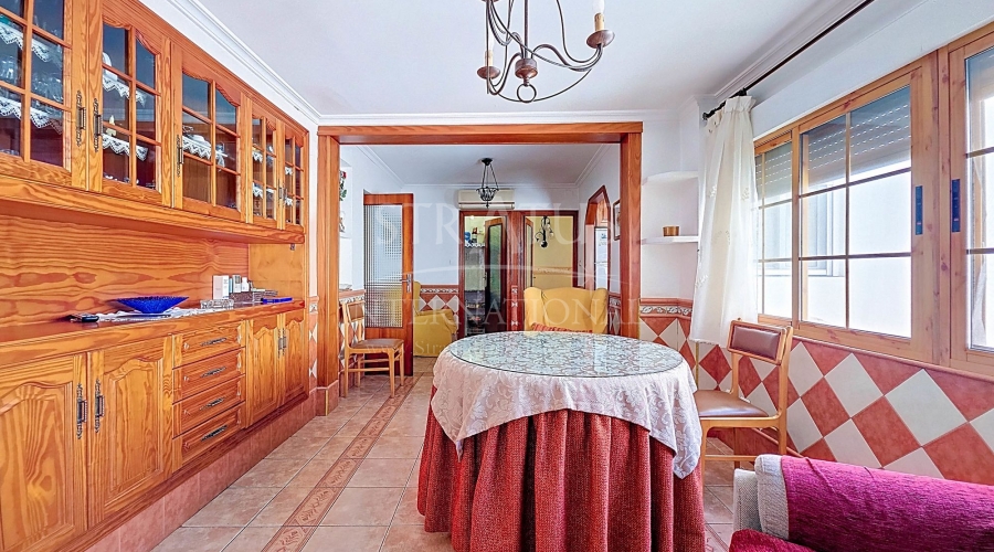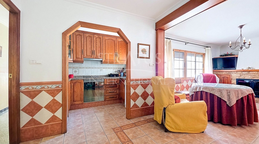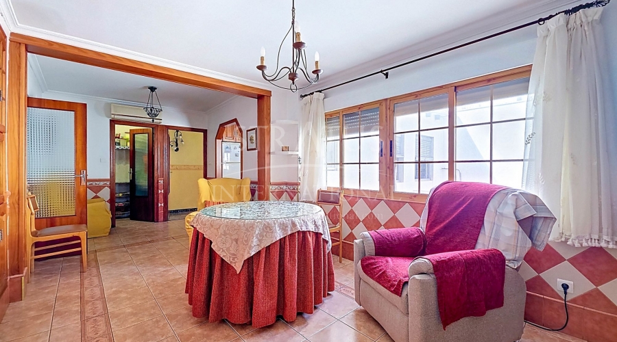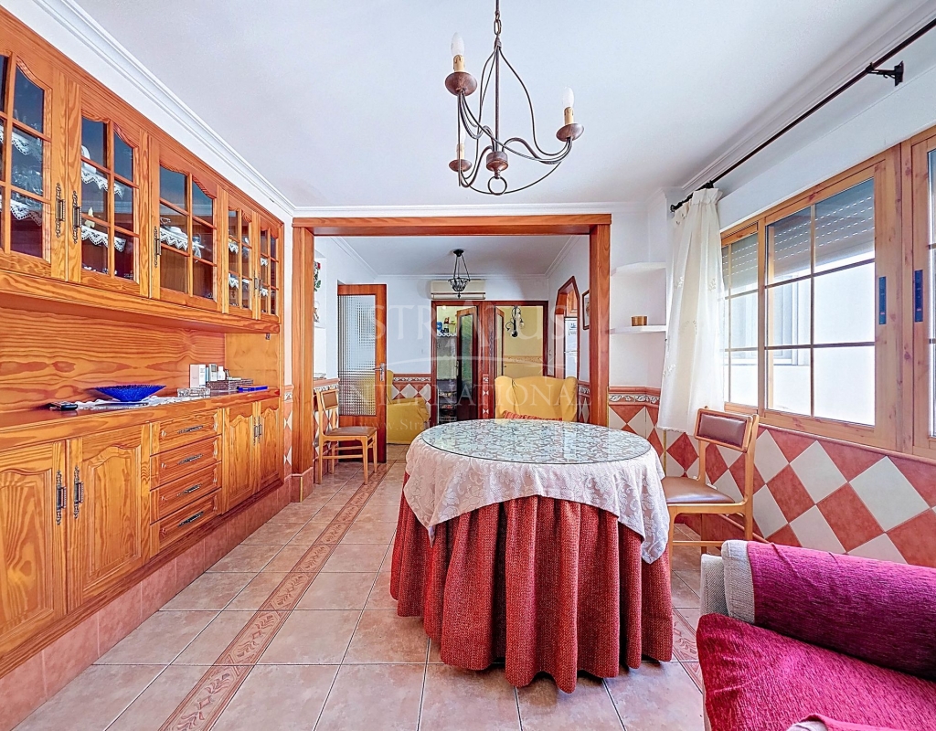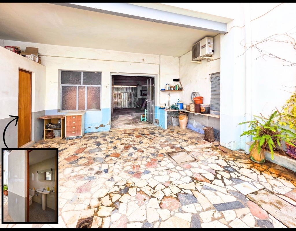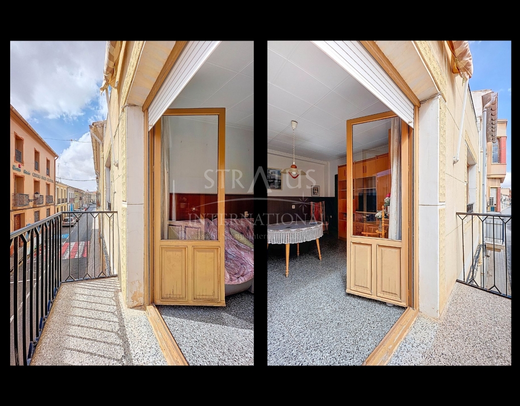 Spacious Village House with Garage and Patio This exceptionally spacious property, spread across three floors, features two entrances on two different streets in the popular town of Pinoso. Additionally, there is a separate access to the enormous garage, with a cozy patio located behind it. The Property – Ground Floor From one entrance, the house is on street level, while the living area is reached via a staircase from the other street. On the ground floor, there is a very large garage with enough space for five cars. The garage also has two separate rooms, ideal for use as storage or a workshop. It also offers the possibility of converting one space into a bedroom and using the rest of the large area as a guest suite or home office. From the garage, you can access the spacious patio, which also includes a small toilet. The patio is partially covered, providing a perfect spot for creating an outdoor kitchen or even installing a jacuzzi. Let the Spanish sun come! The Property – Living Floor The living floor has two living rooms. One features a cozy fireplace and is connected to the kitchen. There is also a pantry, and access to a small hallway that leads to a bathroom, a bedroom, and the stairs to the upper floor. The second living room on this floor has French doors leading to a balcony and is connected to one of the four bedrooms (two of which have built-in wardrobes, and one has storage space under the stairs). There is another bathroom on this floor, as well as a utility room and a spacious hallway. The Property – Upper Floor There is also an upper floor with a fantastic large rooftop terrace where you can enjoy the sun all day long. Next to the terrace is a large room that can be used as desired. A separate room has already been created here. This spacious village house offers a great opportunity to live in the sought-after town of Pinoso and is being offered at an attractive price, leaving room for modernization if desired. The property is connected to electricity, sewerage, water (with an additional deposit in the garage), and has an air conditioning unit. Pinoso Pinoso offers all daily amenities, including supermarkets, schools, a medical center, and sports facilities, as well as a wide range of restaurants. Both Alicante and Murcia airports, as well as the beaches, are within an hour's reach. Don't miss this opportunity and schedule a viewing today!Build