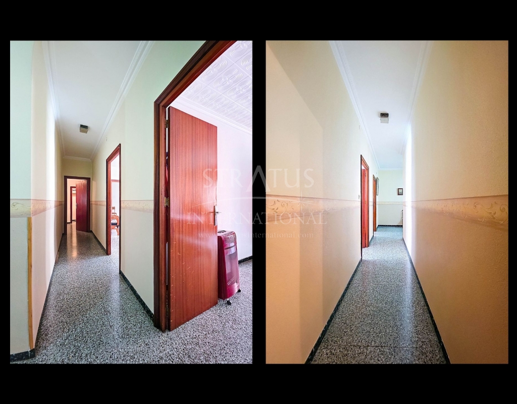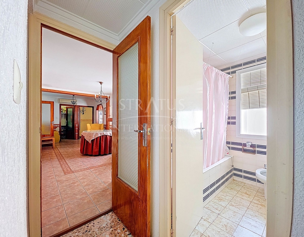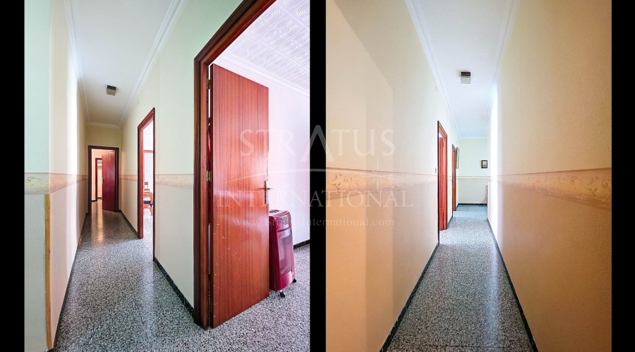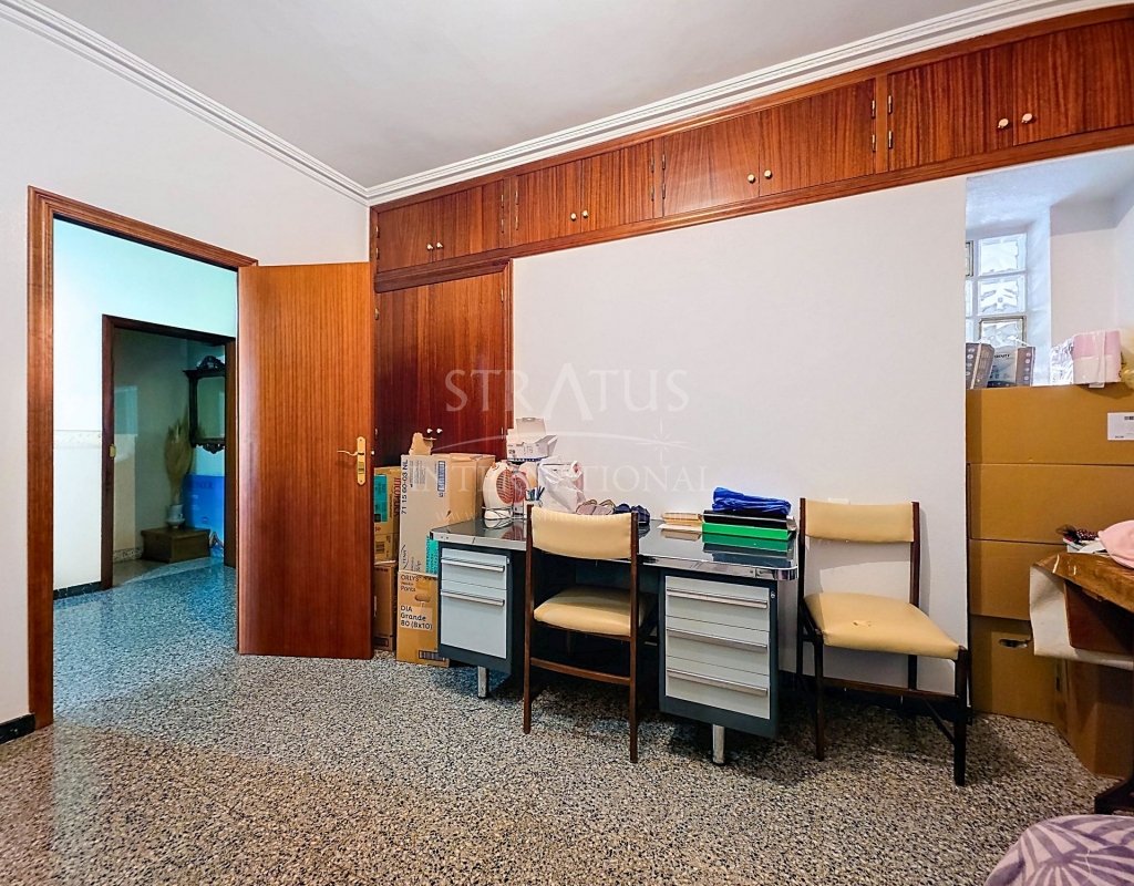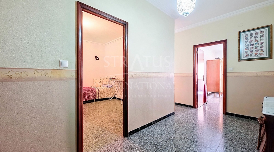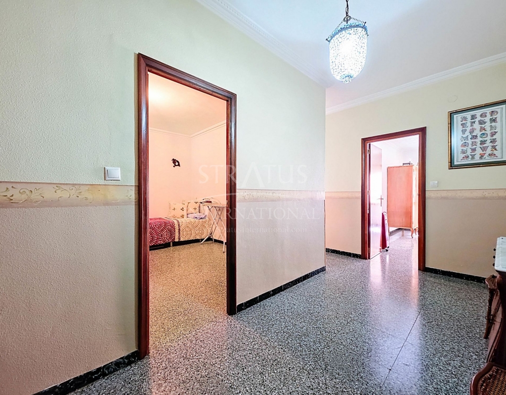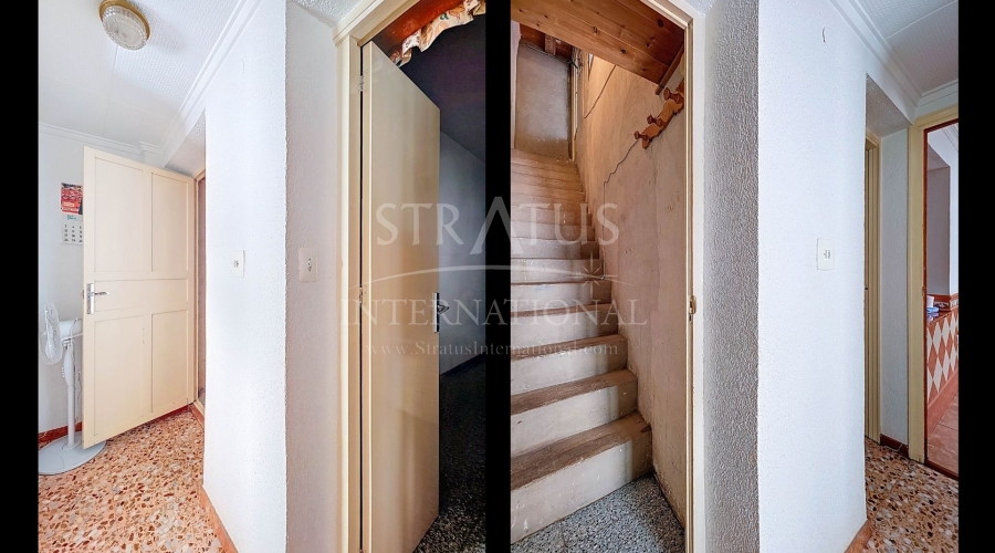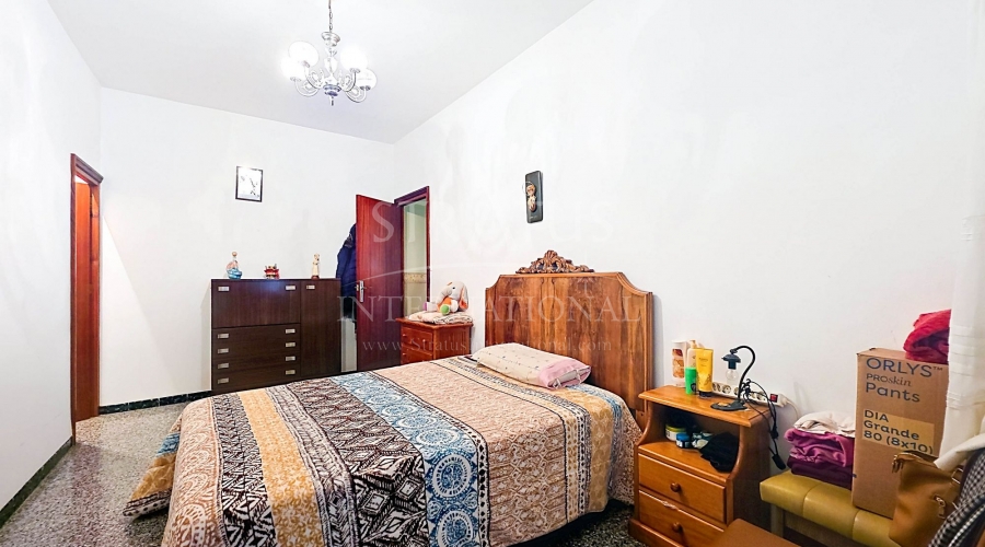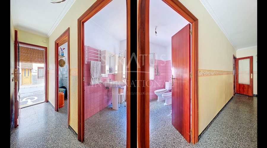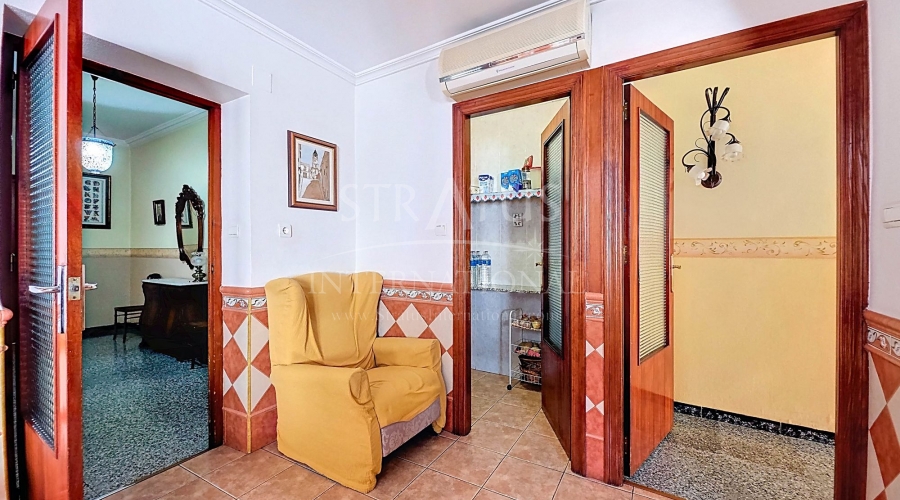 Spacious Village House with Garage and Patio This exceptionally spacious property, spread across three floors, features two entrances on two different streets in the popular town of Pinoso. Additionally, there is a separate access to the enormous garage, with a cozy patio located behind it. The Property – Ground Floor From one entrance, the house is on street level, while the living area is reached via a staircase from the other street. On the ground floor, there is a very large garage with enough space for five cars. The garage also has two separate rooms, ideal for use as storage or a workshop. It also offers the possibility of converting one space into a bedroom and using the rest of the large area as a guest suite or home office. From the garage, you can access the spacious patio, which also includes a small toilet. The patio is partially covered, providing a perfect spot for creating an outdoor kitchen or even installing a jacuzzi. Let the Spanish sun come! The Property – Living Floor The living floor has two living rooms. One features a cozy fireplace and is connected to the kitchen. There is also a pantry, and access to a small hallway that leads to a bathroom, a bedroom, and the stairs to the upper floor. The second living room on this floor has French doors leading to a balcony and is connected to one of the four bedrooms (two of which have built-in wardrobes, and one has storage space under the stairs). There is another bathroom on this floor, as well as a utility room and a spacious hallway. The Property – Upper Floor There is also an upper floor with a fantastic large rooftop terrace where you can enjoy the sun all day long. Next to the terrace is a large room that can be used as desired. A separate room has already been created here. This spacious village house offers a great opportunity to live in the sought-after town of Pinoso and is being offered at an attractive price, leaving room for modernization if desired. The property is connected to electricity, sewerage, water (with an additional deposit in the garage), and has an air conditioning unit. Pinoso Pinoso offers all daily amenities, including supermarkets, schools, a medical center, and sports facilities, as well as a wide range of restaurants. Both Alicante and Murcia airports, as well as the beaches, are within an hour's reach. Don't miss this opportunity and schedule a viewing today!Build