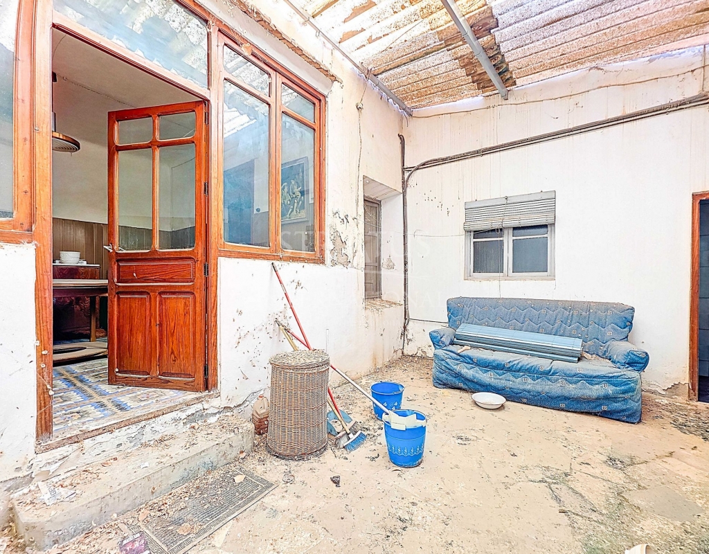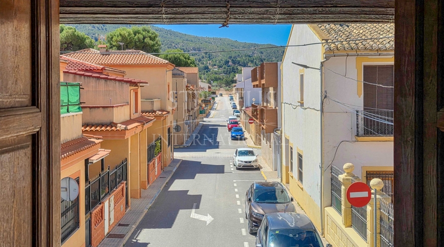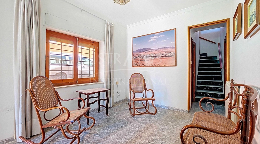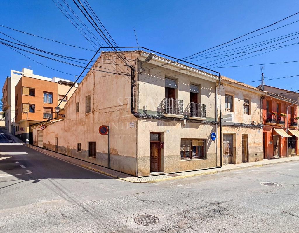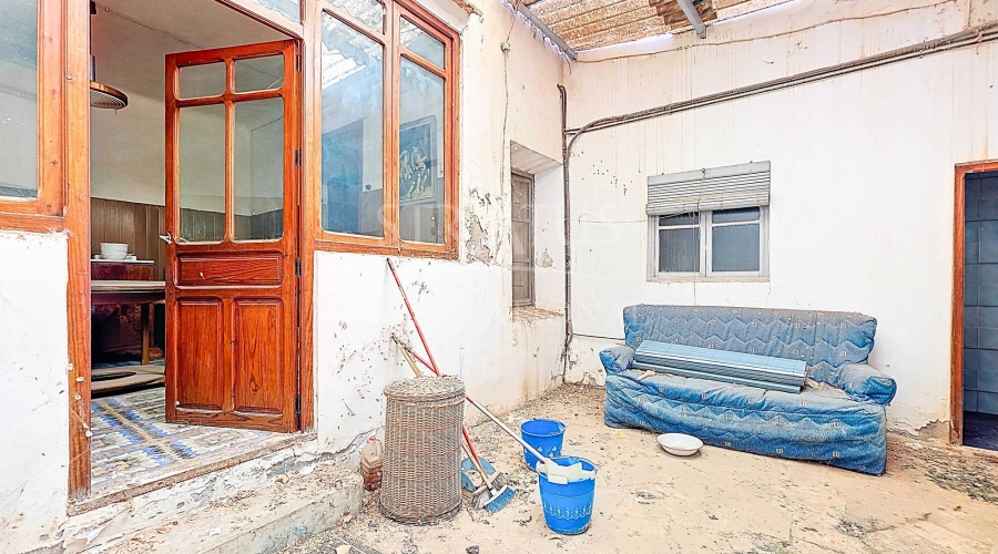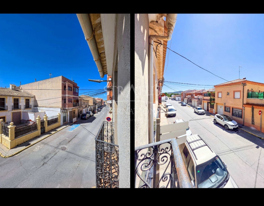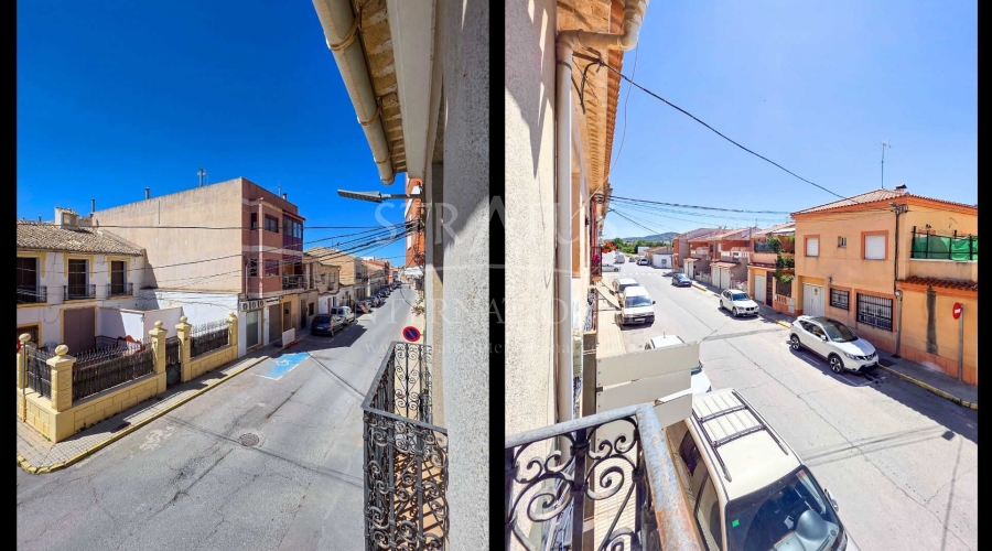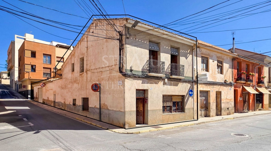 Corner Village House with Two Floors and Garage in Pinoso This very spacious corner house is spread over two floors and is centrally yet quietly located, with all amenities nearby. There is ample street parking, but the property also has its own large garage and a patio/garden room. Some renovation work is needed, but at this attractive price, it has the potential to become something truly special. The Property Ground Floor Part 1: A hallway leads to a central area that can function as an entrance hall, but it’s also spacious enough to be used as a cozy sitting area. There is a large living room with access to a bedroom, which could also be converted into a separate dining room (this room is also accessible from the hallway). The second bedroom on this floor has an ensuite bathroom and access to the large patio, which could be turned into a charming garden room (see impression in the photos). The patio is also accessible from the kitchen. Part 2: The patio has a door to the street and an adjoining room that could be converted into another bedroom or a lovely sunroom with a covered seating area facing the patio. From this room, you can access the spacious garage. A staircase in the garage leads to an additional double space that can be customized to your needs. First Floor From the first section, a marble staircase leads to the upper floor. Here you’ll find a small room, a large bedroom with ensuite bathroom, a spacious hallway with storage, and three more bedrooms, two of which have French balconies. The house is equipped with heating (radiators). Pinoso Pinoso offers all daily amenities, including supermarkets, schools, a medical center, and sports facilities, as well as a wide selection of restaurants. It’s surrounded by almond, olive, and vineyard landscapes and offers many walking, hiking, and cycling routes. Pinoso blends traditional Spanish culture, beautiful nature, and modern amenities with a delightful Mediterranean climate. Both Alicante and Murcia airports and the coast are less than an hour away. Are you the new owner who will modernize this home while preserving its authentic charm? Don’t miss this opportunity to live in the beloved Pinoso – book a viewing today! This property is listed exclusively, which means all documents have been checked in advance and everything is either in order or can be arranged.Build
