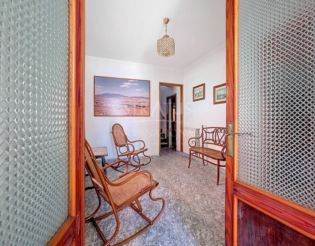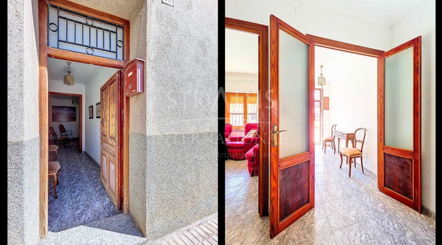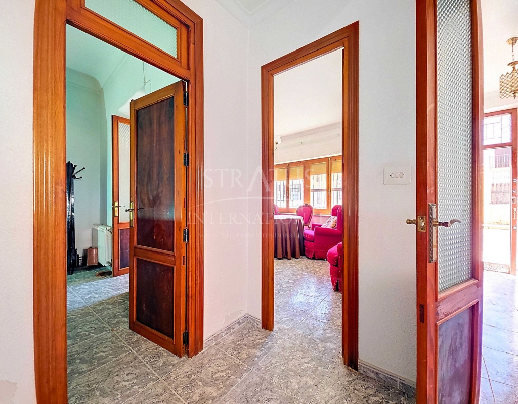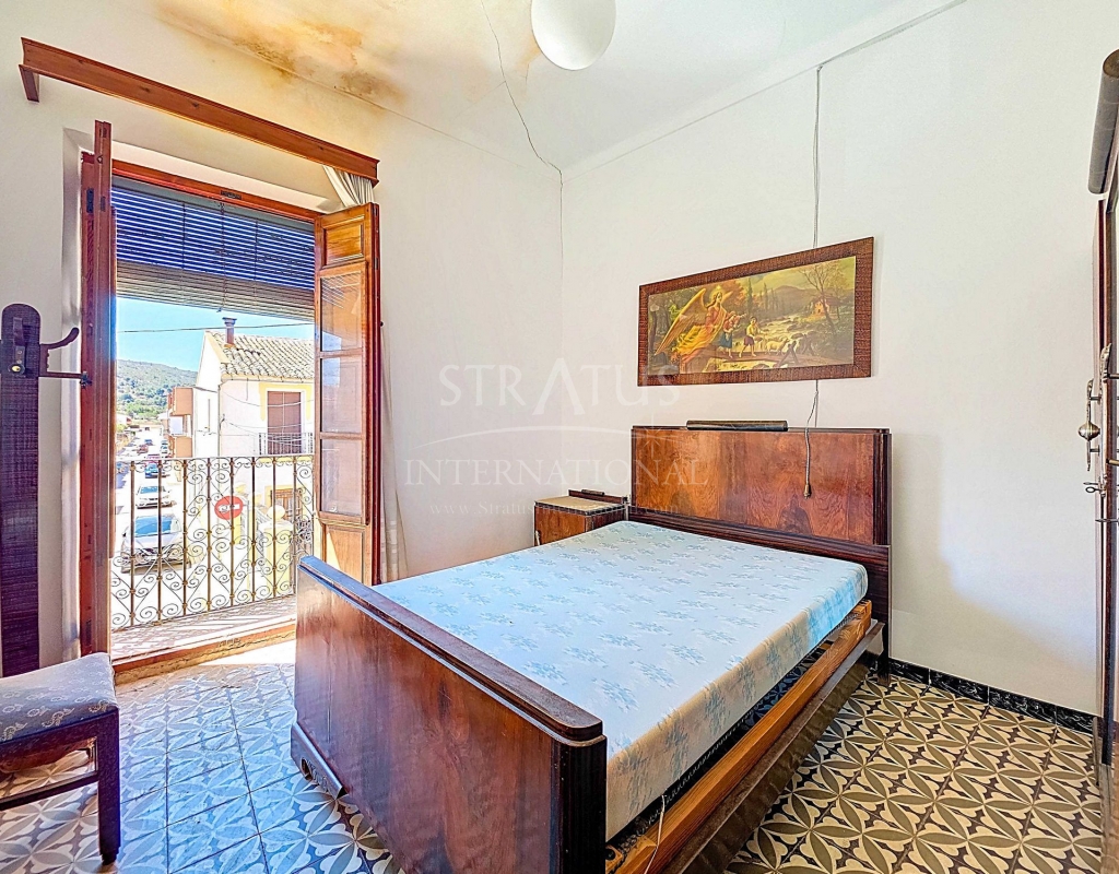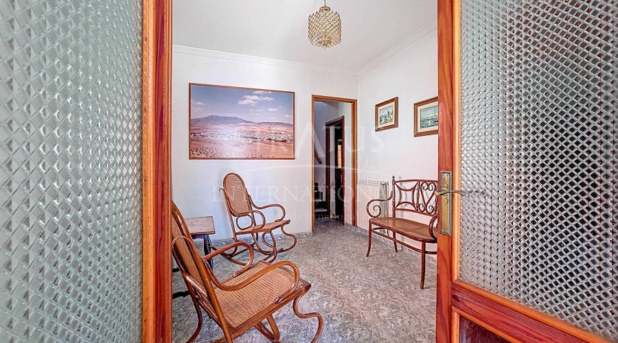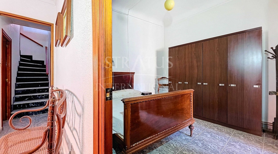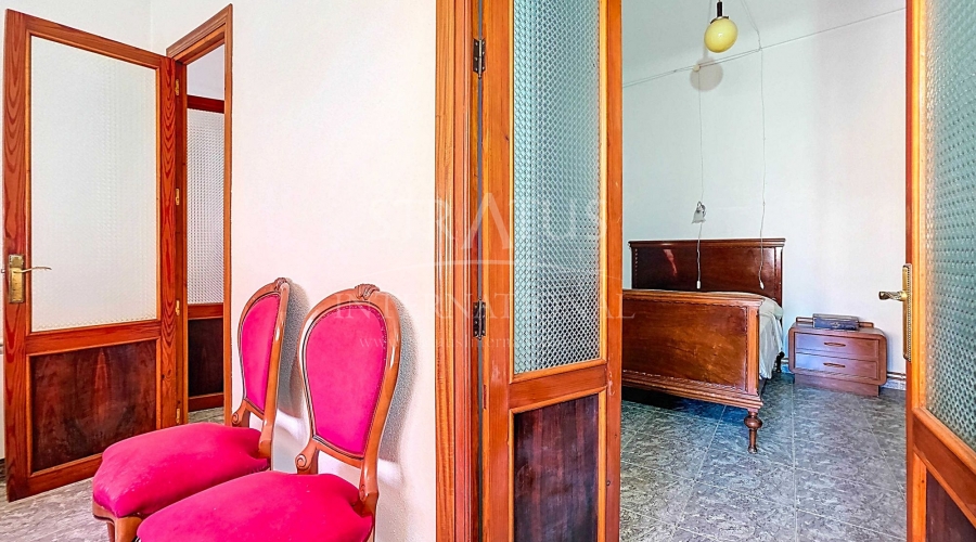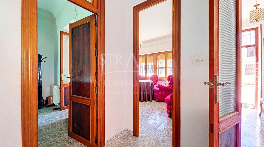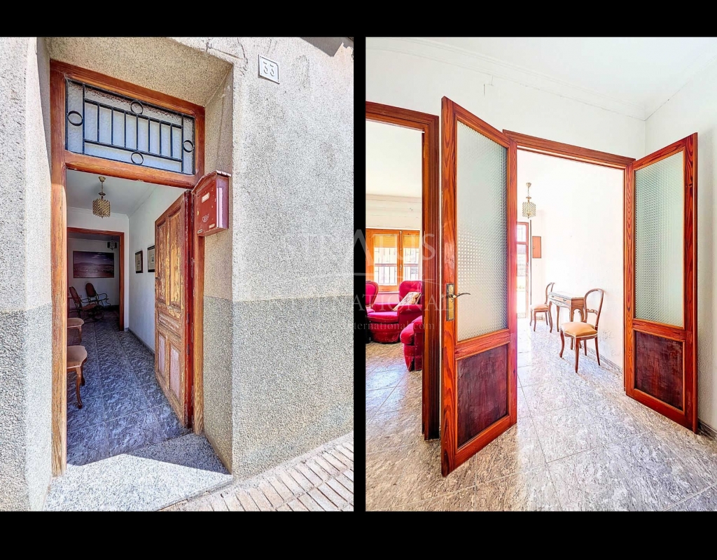 Corner Village House with Two Floors and Garage in Pinoso This very spacious corner house is spread over two floors and is centrally yet quietly located, with all amenities nearby. There is ample street parking, but the property also has its own large garage and a patio/garden room. Some renovation work is needed, but at this attractive price, it has the potential to become something truly special. The Property Ground Floor Part 1: A hallway leads to a central area that can function as an entrance hall, but it’s also spacious enough to be used as a cozy sitting area. There is a large living room with access to a bedroom, which could also be converted into a separate dining room (this room is also accessible from the hallway). The second bedroom on this floor has an ensuite bathroom and access to the large patio, which could be turned into a charming garden room (see impression in the photos). The patio is also accessible from the kitchen. Part 2: The patio has a door to the street and an adjoining room that could be converted into another bedroom or a lovely sunroom with a covered seating area facing the patio. From this room, you can access the spacious garage. A staircase in the garage leads to an additional double space that can be customized to your needs. First Floor From the first section, a marble staircase leads to the upper floor. Here you’ll find a small room, a large bedroom with ensuite bathroom, a spacious hallway with storage, and three more bedrooms, two of which have French balconies. The house is equipped with heating (radiators). Pinoso Pinoso offers all daily amenities, including supermarkets, schools, a medical center, and sports facilities, as well as a wide selection of restaurants. It’s surrounded by almond, olive, and vineyard landscapes and offers many walking, hiking, and cycling routes. Pinoso blends traditional Spanish culture, beautiful nature, and modern amenities with a delightful Mediterranean climate. Both Alicante and Murcia airports and the coast are less than an hour away. Are you the new owner who will modernize this home while preserving its authentic charm? Don’t miss this opportunity to live in the beloved Pinoso – book a viewing today! This property is listed exclusively, which means all documents have been checked in advance and everything is either in order or can be arranged.Build
