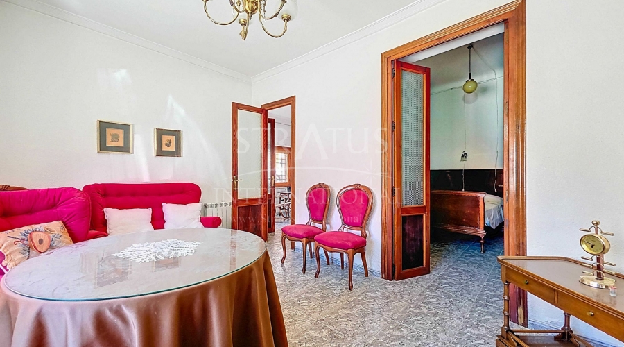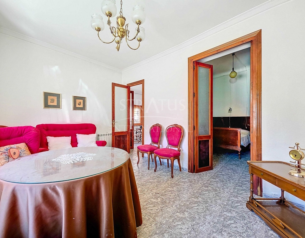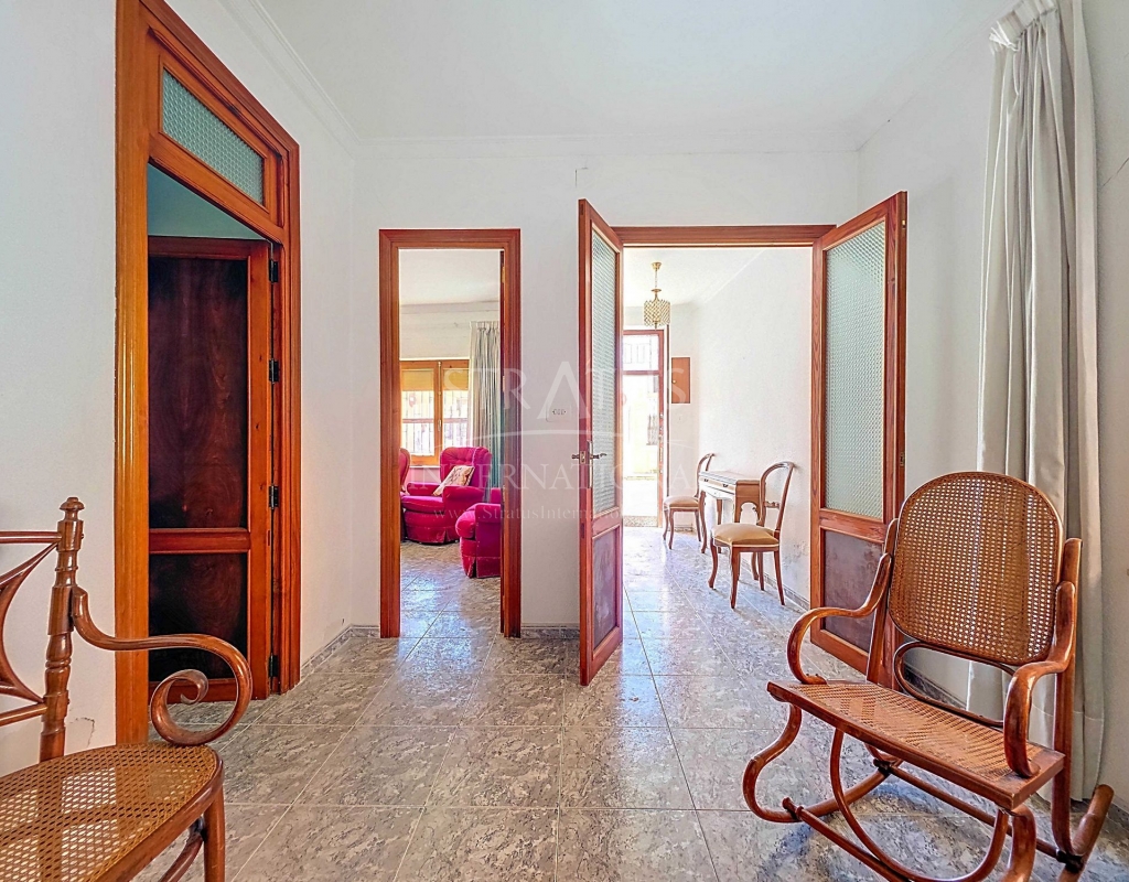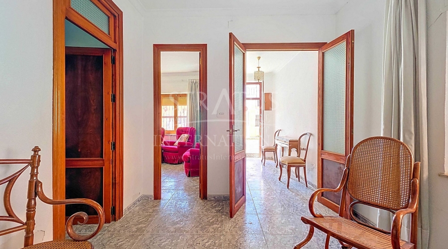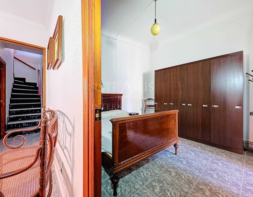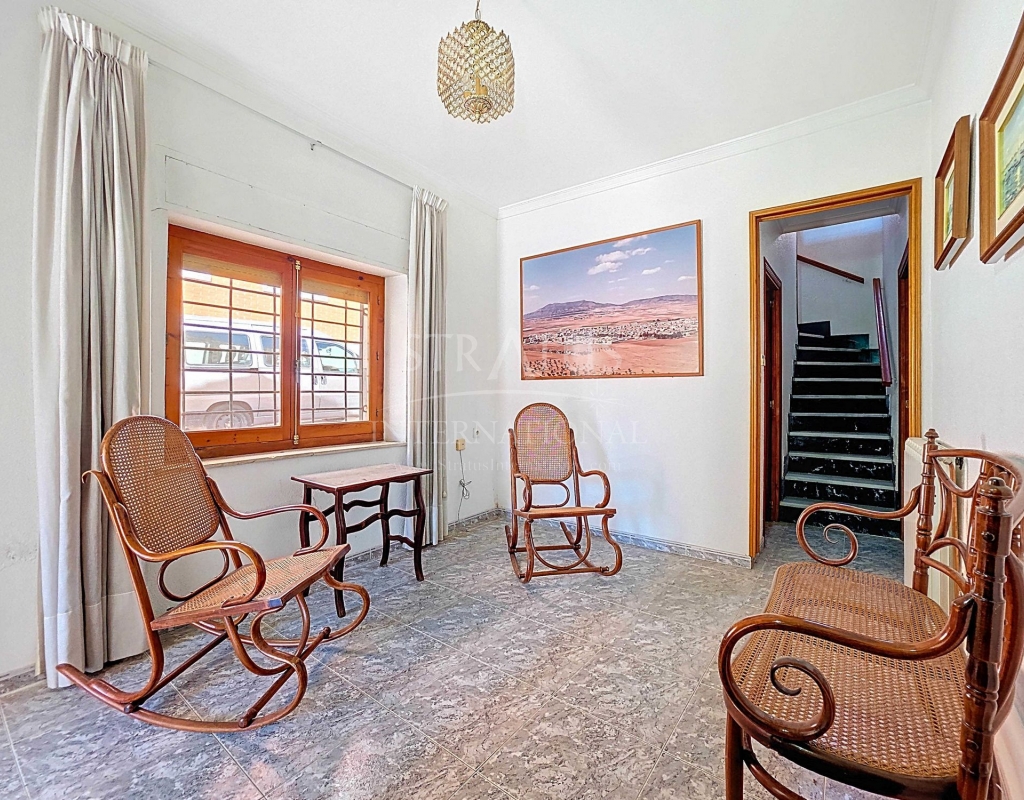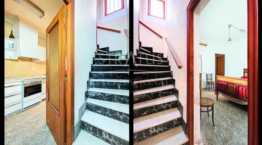 Corner Village House with Two Floors and Garage in Pinoso This very spacious corner house is spread over two floors and is centrally yet quietly located, with all amenities nearby. There is ample street parking, but the property also has its own large garage and a patio/garden room. Some renovation work is needed, but at this attractive price, it has the potential to become something truly special. The Property Ground Floor Part 1: A hallway leads to a central area that can function as an entrance hall, but it’s also spacious enough to be used as a cozy sitting area. There is a large living room with access to a bedroom, which could also be converted into a separate dining room (this room is also accessible from the hallway). The second bedroom on this floor has an ensuite bathroom and access to the large patio, which could be turned into a charming garden room (see impression in the photos). The patio is also accessible from the kitchen. Part 2: The patio has a door to the street and an adjoining room that could be converted into another bedroom or a lovely sunroom with a covered seating area facing the patio. From this room, you can access the spacious garage. A staircase in the garage leads to an additional double space that can be customized to your needs. First Floor From the first section, a marble staircase leads to the upper floor. Here you’ll find a small room, a large bedroom with ensuite bathroom, a spacious hallway with storage, and three more bedrooms, two of which have French balconies. The house is equipped with heating (radiators). Pinoso Pinoso offers all daily amenities, including supermarkets, schools, a medical center, and sports facilities, as well as a wide selection of restaurants. It’s surrounded by almond, olive, and vineyard landscapes and offers many walking, hiking, and cycling routes. Pinoso blends traditional Spanish culture, beautiful nature, and modern amenities with a delightful Mediterranean climate. Both Alicante and Murcia airports and the coast are less than an hour away. Are you the new owner who will modernize this home while preserving its authentic charm? Don’t miss this opportunity to live in the beloved Pinoso – book a viewing today! This property is listed exclusively, which means all documents have been checked in advance and everything is either in order or can be arranged.Build
