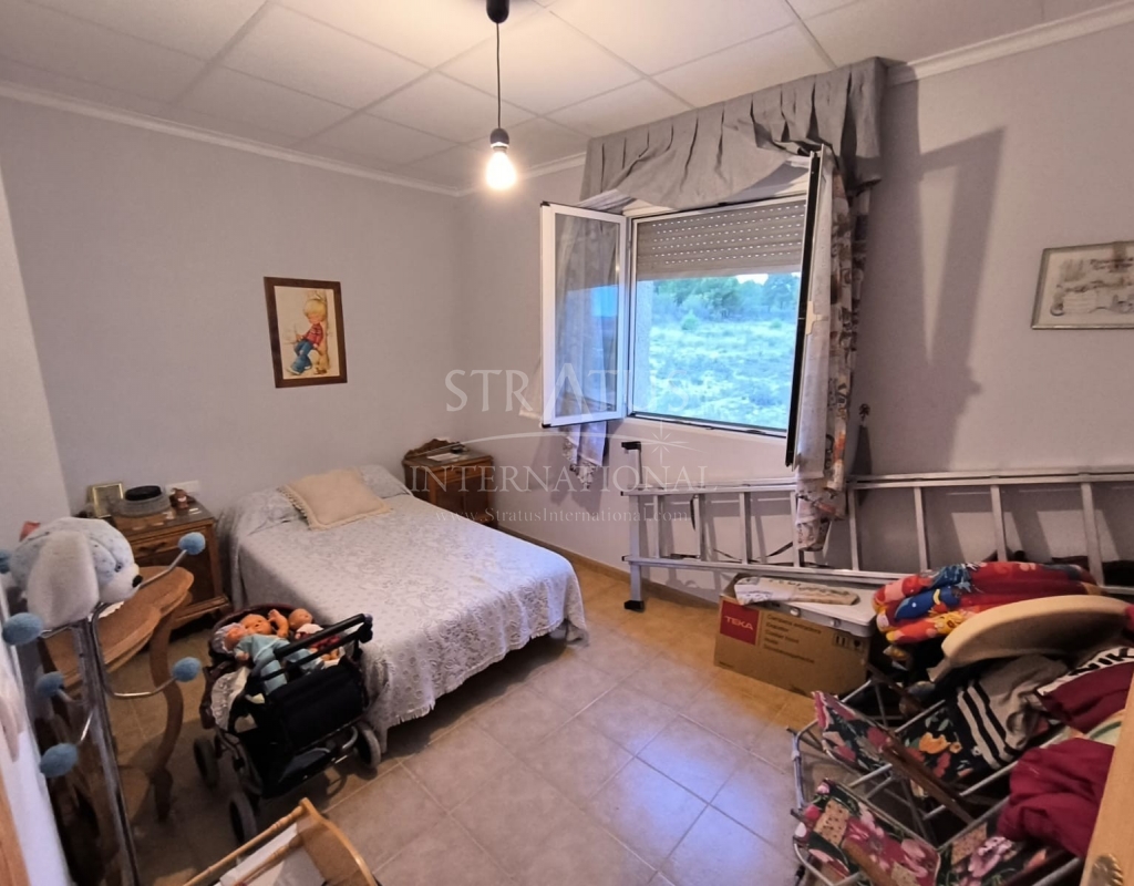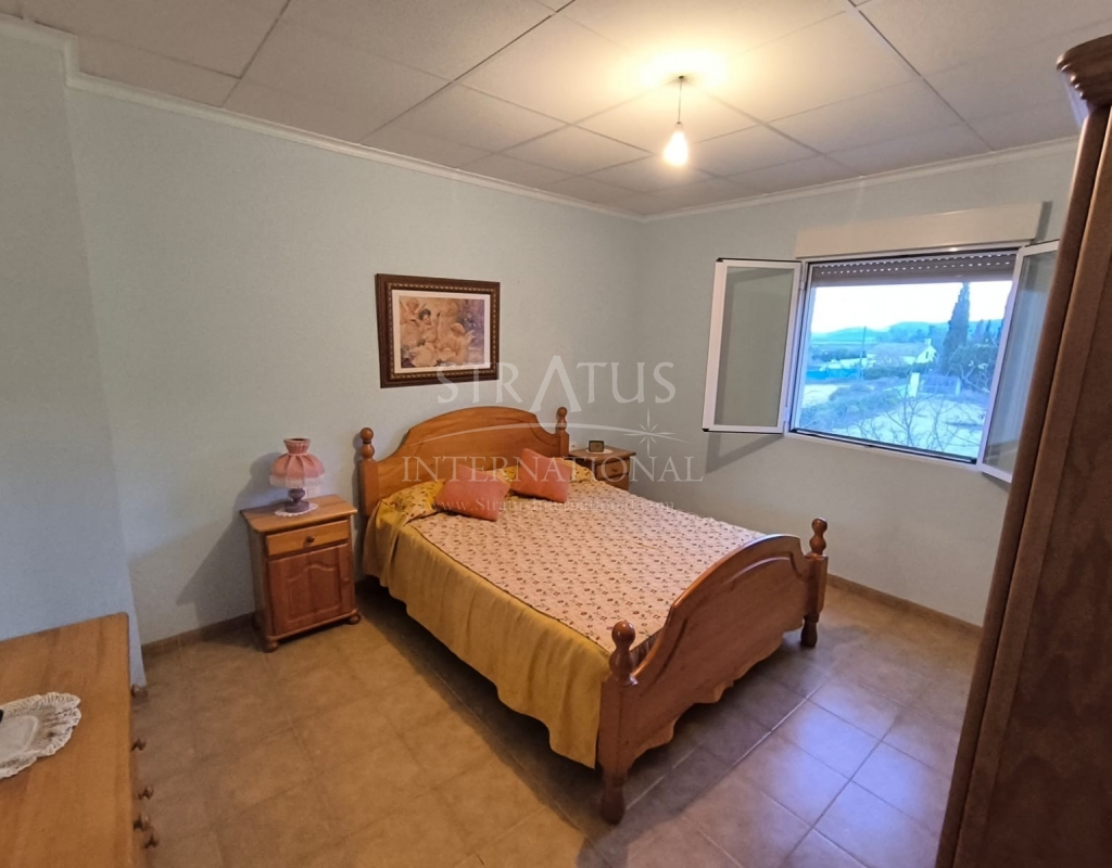 Large country villa for sale! Located in a little settlement, 12 km from Yecla, this property offers a tranquil countryside retreat with a combination of traditional charm and modern comfort. The house is spread over 2 floors. Downstairs you will find a large living room with a bar and a fireplace, perfect for relaxation, parties, and family gatherings, an equipped independent kitchen, a bathroom, a storage, and two bedrooms. Upstairs there are 4 spacious bedrooms with views over the surrounding countryside. Furthermore, the property boasts a large garage with another fireplace.