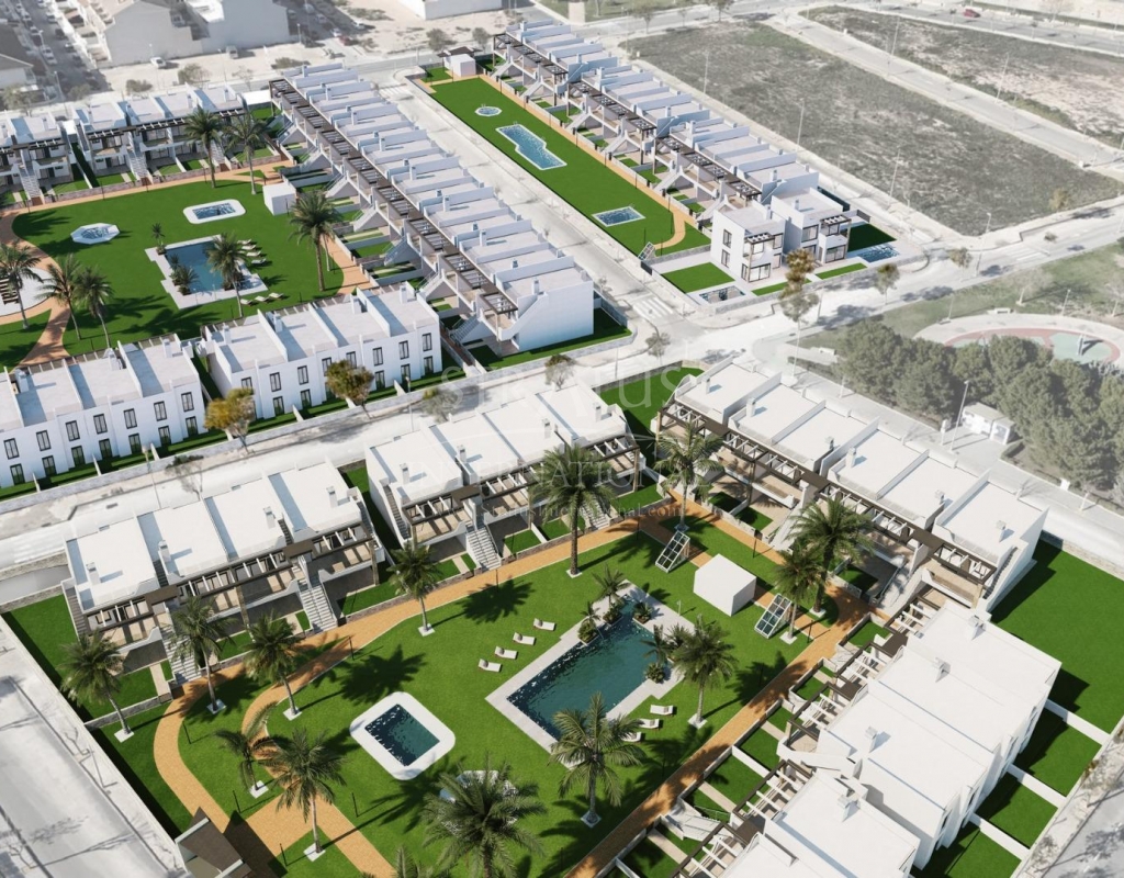 Newly built bungalows in Pilar de la Horadada Modern homes near the beach Discover this exclusive new residential complex in Pilar de la Horadada, offering bungalows and semi-detached houses less than 2 km from the beach. Designed for comfort and style, these homes are an excellent opportunity to enjoy life on the Costa Blanca. Spacious and stylish homes This development offers 2- and 3-bedroom homes with 2 bathrooms and private parking. Choose from: Ground floor bungalows with private gardens. First floor bungalows with private solariums. Each property is built with high-quality materials and modern finishes, including: Ducted air conditioning. Aluminium exterior carpentry, double glazing and injected aluminium shutters. Security entrance door for added peace of mind. Aerothermal system for efficient hot water production. Fitted wardrobes in bedrooms. Fully equipped bathrooms with furniture and shower screens. Exclusive community features This private residential complex has a beautiful communal swimming pool and landscaped gardens, creating an ideal space for relaxation. Located on the outskirts of the town centre, residents can walk to supermarkets, restaurants, bars, schools and other essential amenities. Prime location in Pilar de la Horadada Pilar de la Horadada is a charming Spanish town in the southernmost part of the Costa Blanca. It offers a vibrant main street with numerous shops, supermarkets, restaurants and picturesque squares. The stunning beaches of Torre de la Horadada and Mil Palmeras are just 5 minutes away, with fine golden sand a picturesque promenade. The town also offers well-developed cycle paths and hiking trails, as well as a wide range of sporting activities. Convenient access to key destinations Lo Romero golf course - 5 km (10 minutes by car). Corvera Airport (Murcia) - 40 km (40 minutes by car). Alicante Airport - 55 km (55 minutes by car). Shopping centres (La Zenia Boulevard) - 15 km (15 minutes by car). Torre de la Horadada Marina - 3 km (5 minutes by car). Secure your dream home today Don't miss this fantastic opportunity to own a brand new home in a prime location. Contact us today for more information and to arrange a viewing.Features