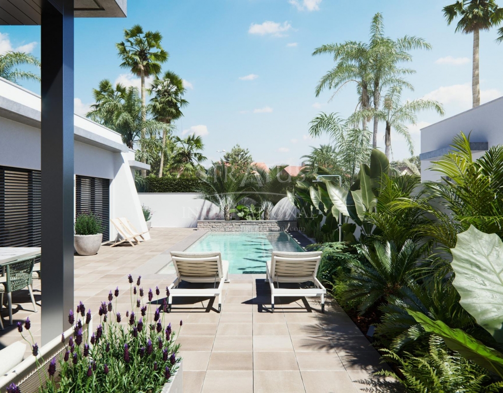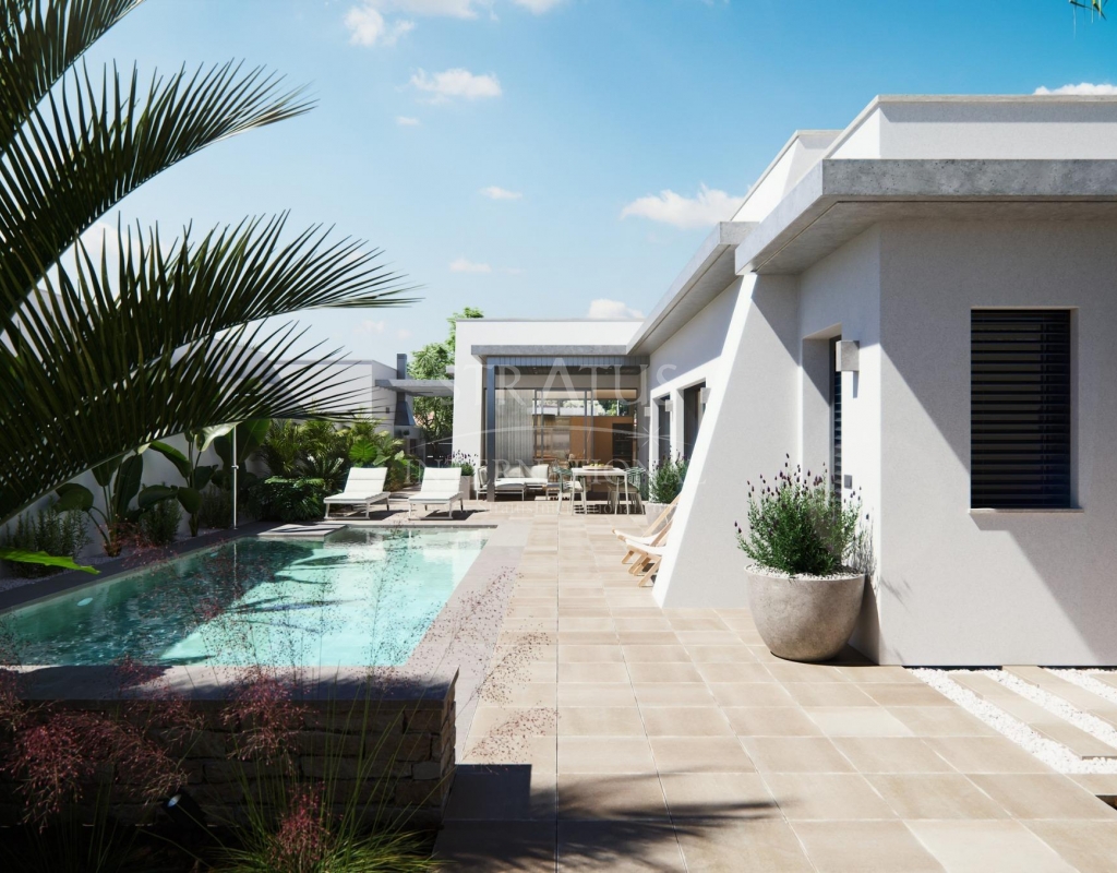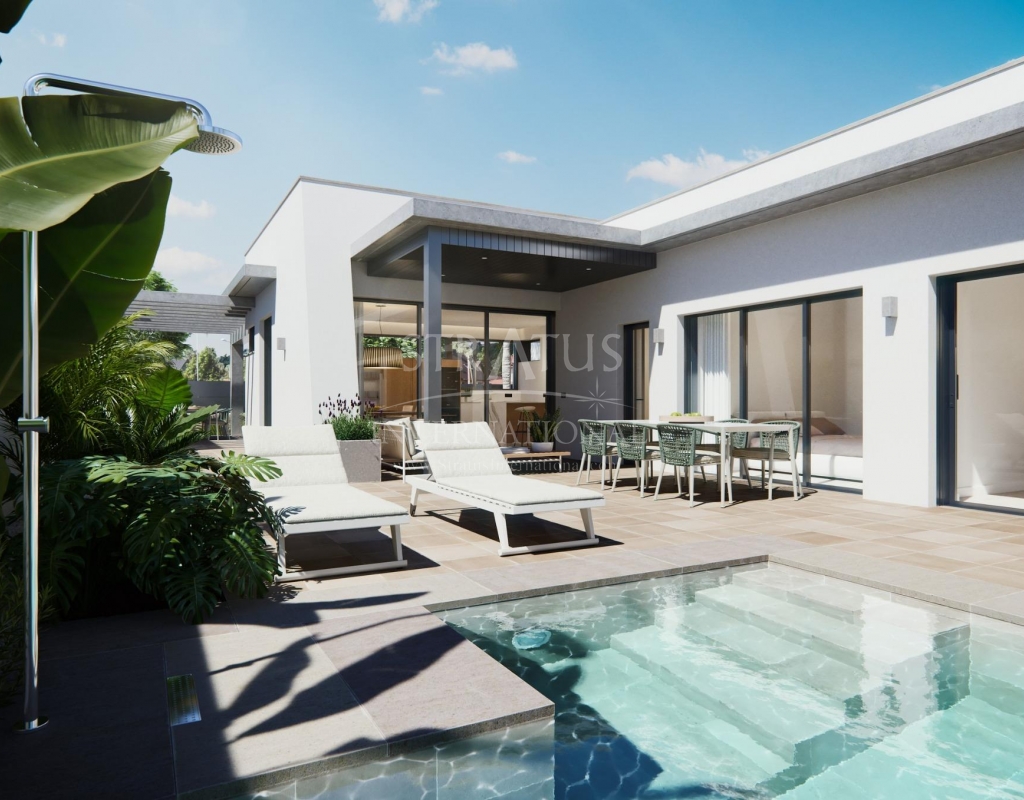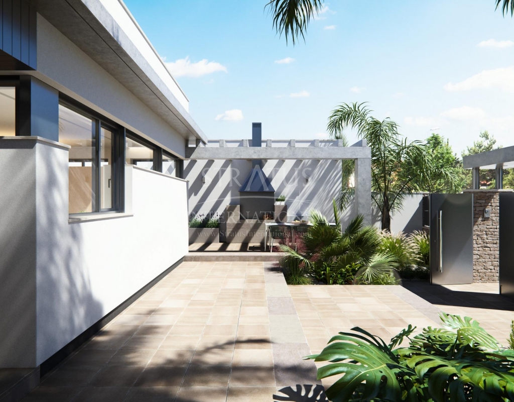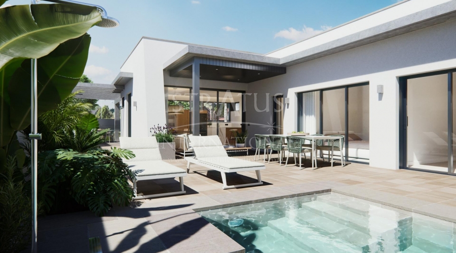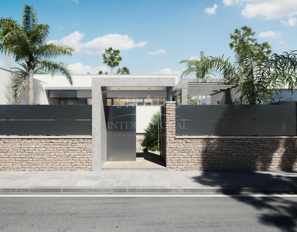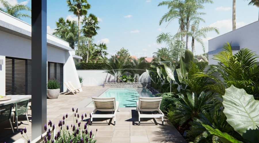NEW BUILT VILLA ON A FLOOR Three exclusive villas in a residential area in San Javier with 600 m2 of plot and 217 m2 of built area on one floor, private pool and large garden areas. Residential with an architectural design based on clear, cubic and functional lines in an exclusive residential enclave in San Javier (Murcia). Automated garden and garage access doors with infrared remote control. Large covered garage for two vehicles with separate entrance. Gardens with a water drainage system on the floor, completely finished and customizable including vegetation, irrigation and lighting.Features