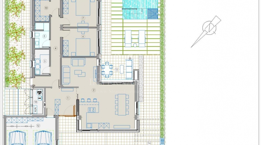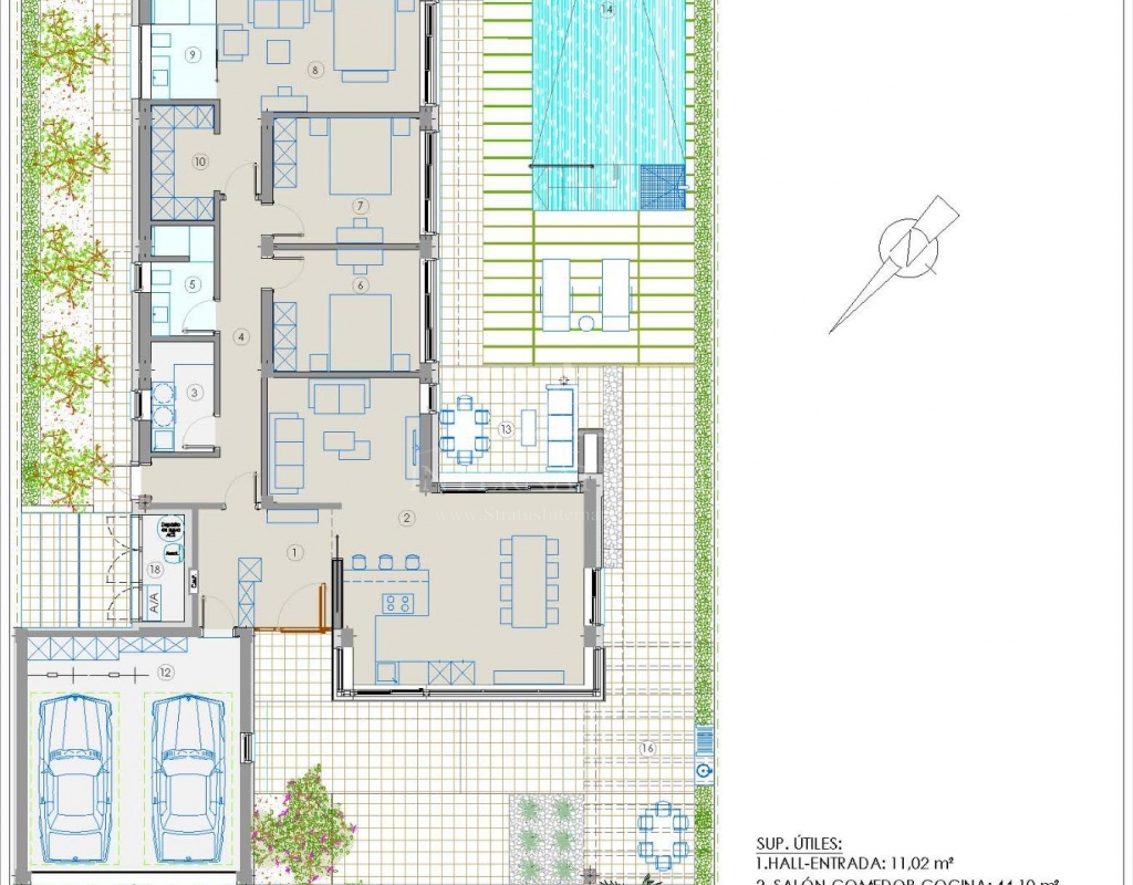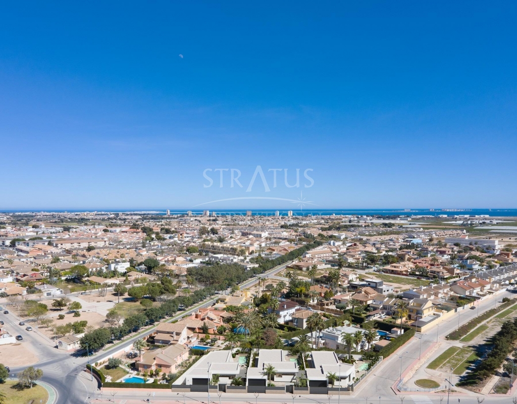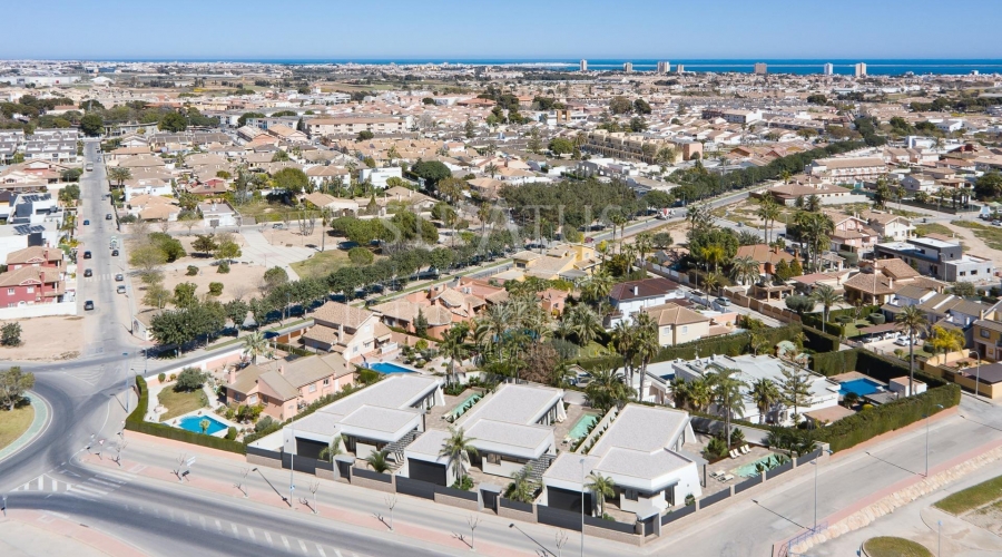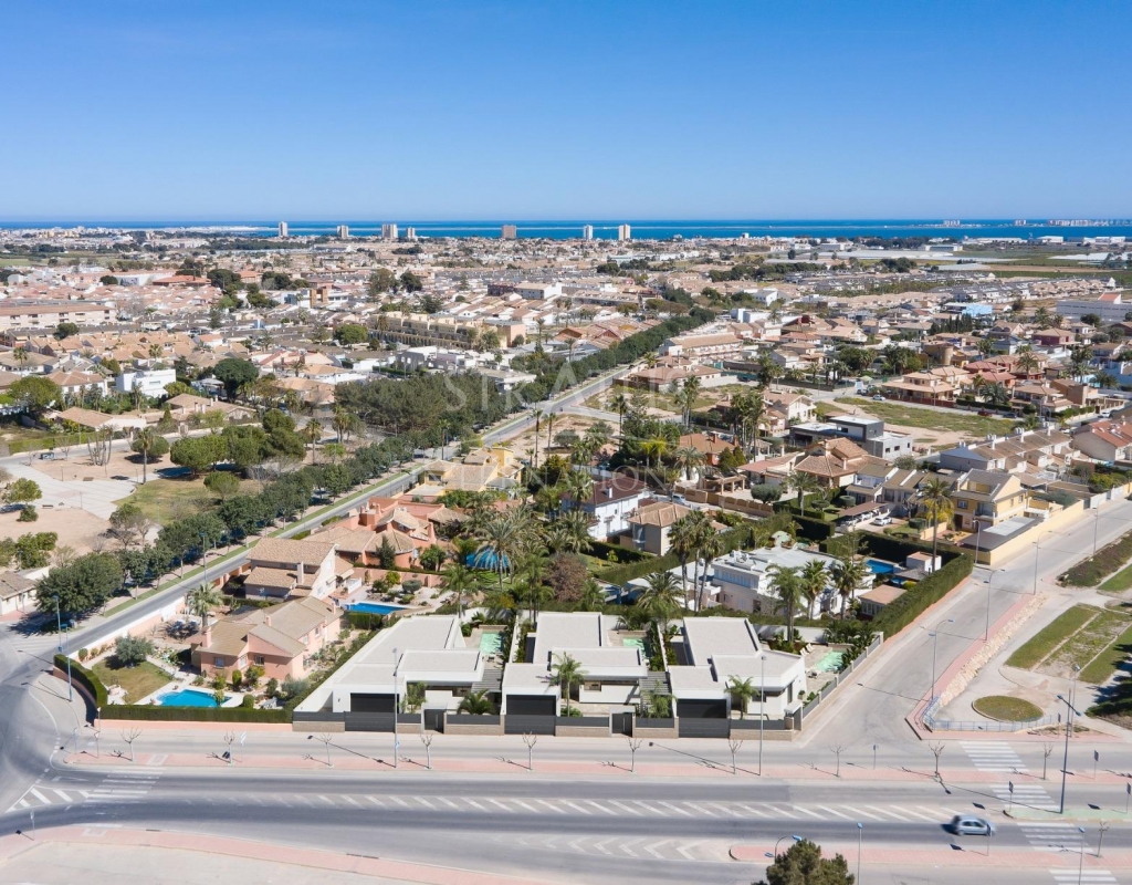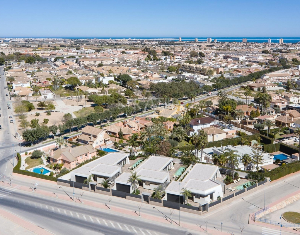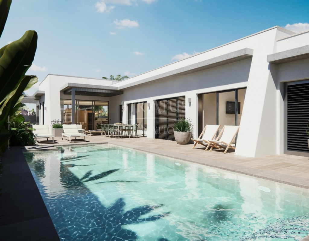 NEW BUILT VILLA ON A FLOOR Three exclusive villas in a residential area in San Javier with 600 m2 of plot and 217 m2 of built area on one floor, private pool and large garden areas. Residential with an architectural design based on clear, cubic and functional lines in an exclusive residential enclave in San Javier (Murcia). Automated garden and garage access doors with infrared remote control. Large covered garage for two vehicles with separate entrance. Gardens with a water drainage system on the floor, completely finished and customizable including vegetation, irrigation and lighting.Features