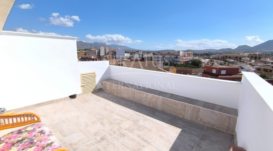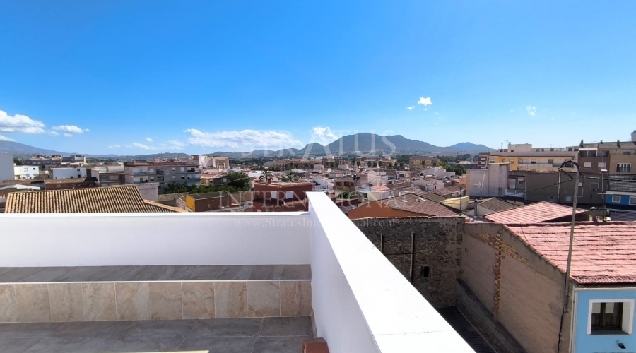Ready to move in duplex in the heart of Sax is awaiting you! This home, just 30 minute drive from the beach, has 3 spacious bedrooms, 2 modern bathrooms, entrance hall with built-in wardrobes, modern kitchen, laundry room, and a cosy salon with views over the town. The upper part of the duplex (which has its own access with an elevator!) has 1 bedroom and a terrace with wonderful views over the town and mountains. No neighbours above you! Ideal for a couple with extra room for guests and gatherings!