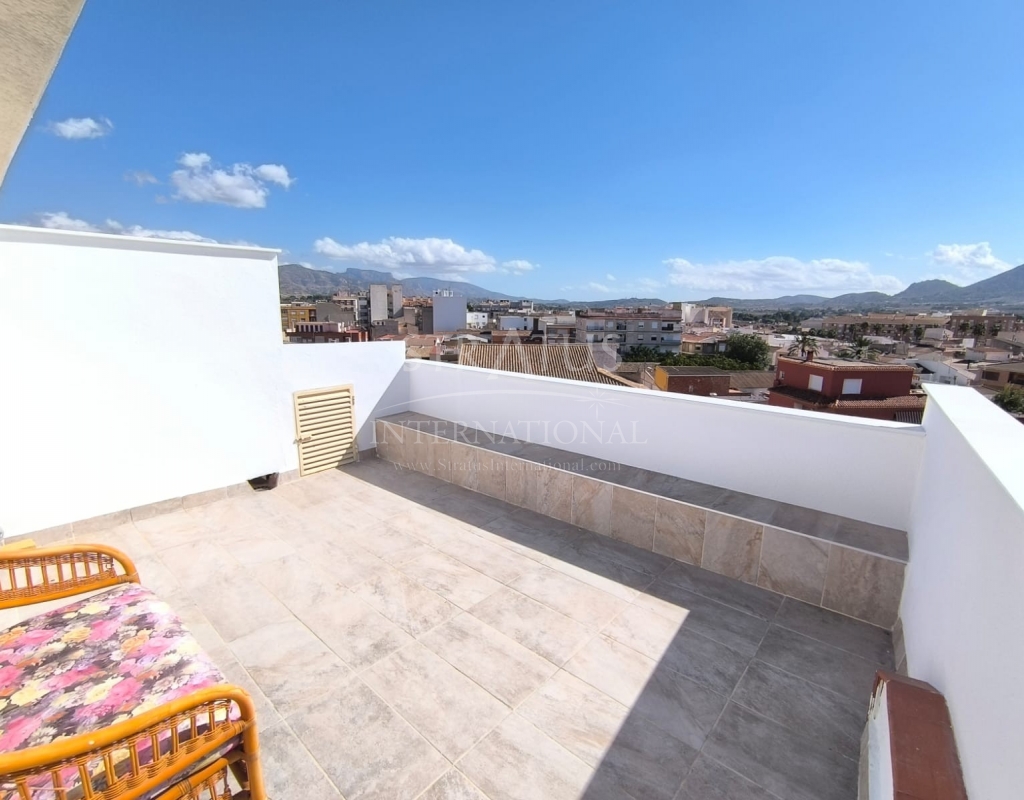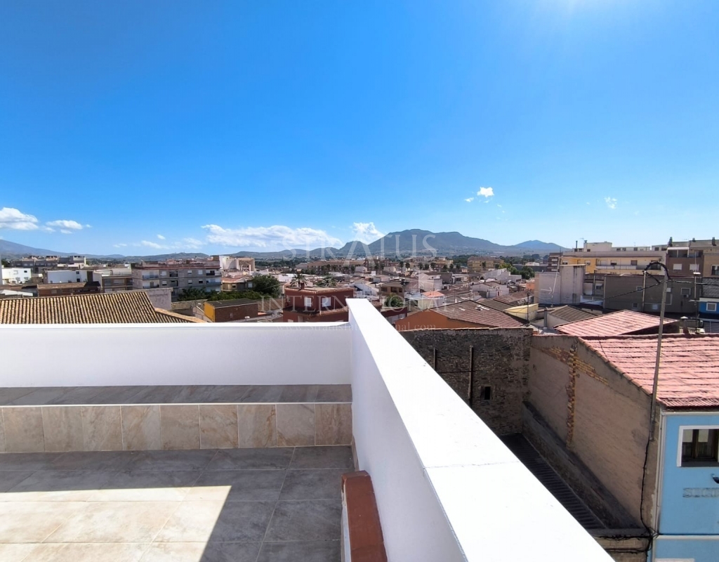 Ready to move in duplex in the heart of Sax is awaiting you! This home, just 30 minute drive from the beach, has 3 spacious bedrooms, 2 modern bathrooms, entrance hall with built-in wardrobes, modern kitchen, laundry room, and a cosy salon with views over the town. The upper part of the duplex (which has its own access with an elevator!) has 1 bedroom and a terrace with wonderful views over the town and mountains. No neighbours above you! Ideal for a couple with extra room for guests and gatherings!