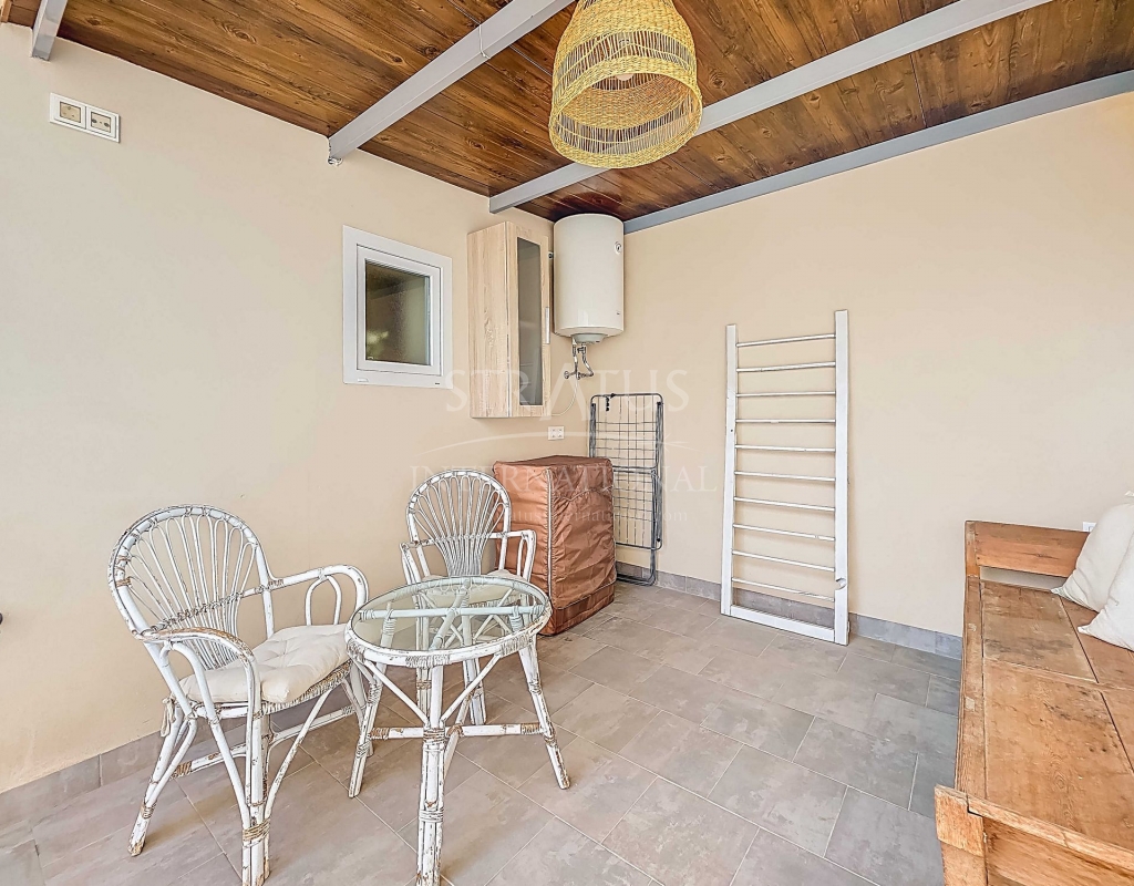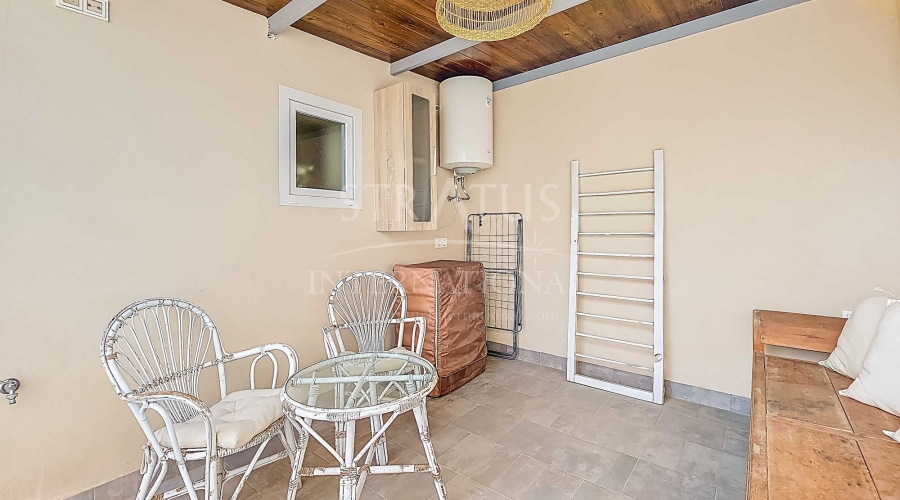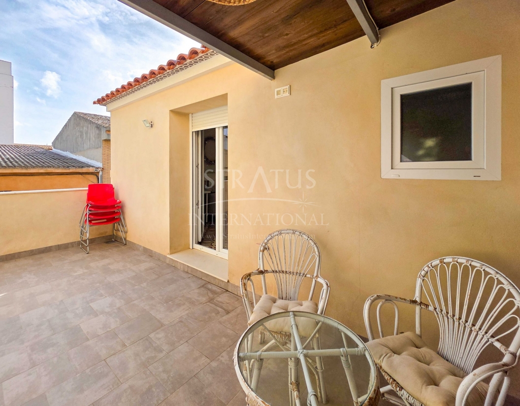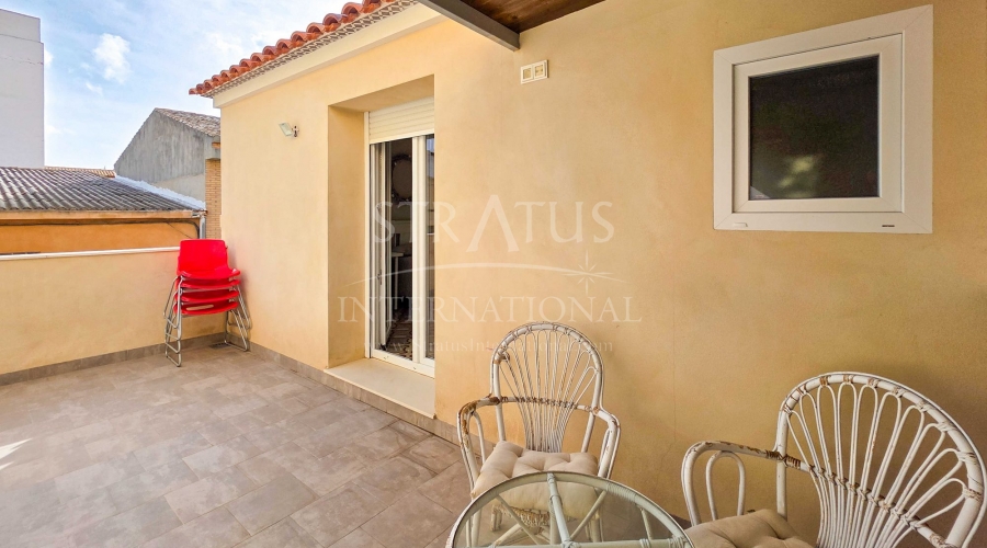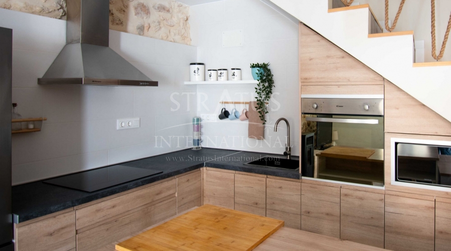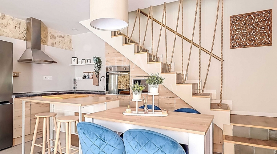Fully Renovated Two-Storey Village House with Rooftop Terrace in Pinoso This property is listed exclusively, which means all documents have been checked in advance and everything is either in order or can be arranged. Move-in ready, stylishly and thoughtfully renewed: this two-storey village home combines modern living with authentic Spanish charm. Perfectly located in the heart of Pinoso, with all amenities within walking distance. The spacious rooftop terrace is the ideal spot to relax all year round under the Spanish sun. The property – ground floor Upon entering the living room with its open-plan, fully fitted kitchen, the welcoming atmosphere of the home is immediately clear. The finishes are modern, while authentic materials create a contemporary Spanish feel. A pellet stove in the living room enhances the warm and cosy ambiance. This floor also offers a bedroom with a luxurious en-suite bathroom featuring a walk-in shower. The area between the bedroom and bathroom includes built-in cupboards, creating generous storage space. The property – first floor This level includes two additional bedrooms and a bathroom with a walk-in shower. One of the bedrooms provides access to the spacious rooftop terrace, where the boiler is located and part of the space is covered. It’s the perfect place to enjoy sun or shade, paired with a glass of local wine and tapas. Features and recent upgrades The house is connected to mains electricity, water and sewage. Recent renovations include: Complete renewal of electrics and plumbing New ceilings with wooden beams New windows and frames with screens and shutters Fully renovated bathrooms Brand-new fitted kitchen with appliances New boiler Pellet stove with central heating (all rooms heated) Walls plastered and painted in Spanish style Bonus The beautiful furniture is included in the price, so the home is ready to move into immediately. Pinoso Pinoso offers all daily amenities including supermarkets, schools, a medical centre, sports facilities and a wide selection of restaurants. The area has many walking, hiking and cycling routes and is surrounded by almond, olive and vineyard landscapes. With a welcoming atmosphere, Pinoso provides the perfect balance between traditional Spanish culture, beautiful nature and modern conveniences – all in a pleasant Mediterranean climate. Both Alicante and Murcia airports, as well as the beaches, can be reached in under an hour. Contact us today to arrange a viewing and see for yourself everything this property has to offer.Features