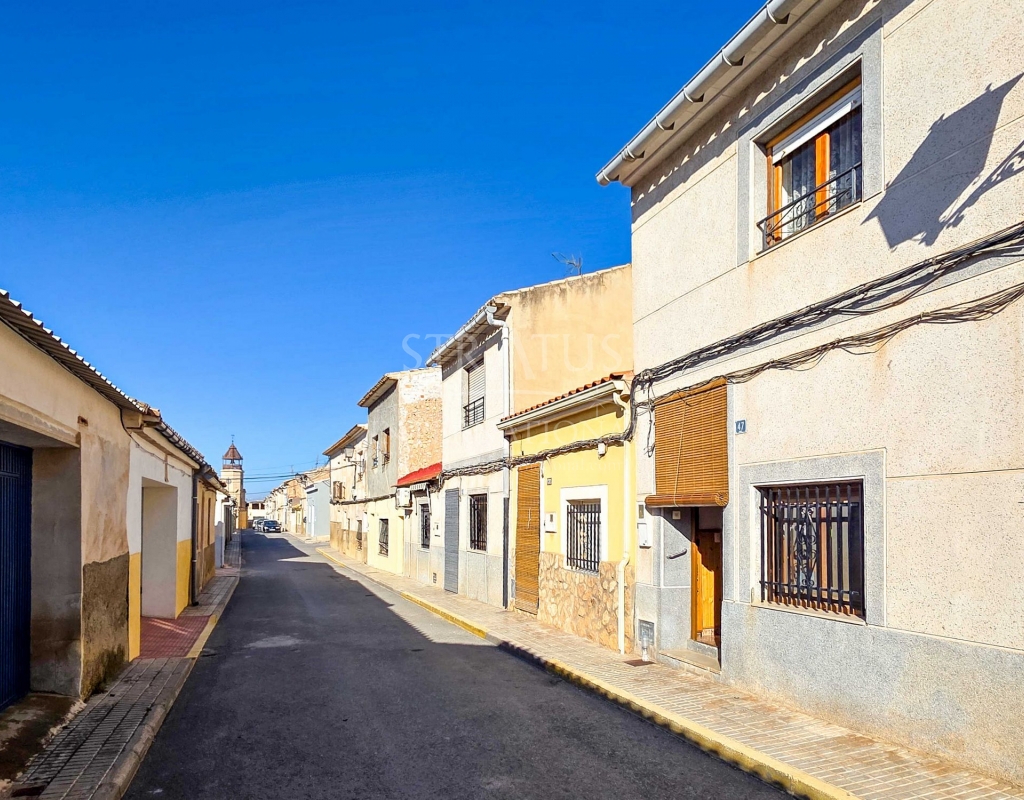 Charming Village House with Two Patios in the Heart of Pinoso This village house is spread over two floors and offers two private patios. It is situated on a quiet street in the centre of Pinoso, with all amenities within walking distance. This property is listed exclusively, which means all documents have been checked in advance and everything is either in order or can be arranged. The House – Ground Floor On the ground floor you will find a bedroom, a sitting area, a hallway with the staircase to the upper floor, and a dining room that leads to the kitchen (with storage under the stairs), the bathroom and the patio. The patio is an ideal place to create, for example, an outdoor kitchen – the perfect spot for cosy evenings with local wine and tapas. The House – First Floor Upstairs there are two bedrooms, one with a built-in wardrobe. This bedroom connects to a multifunctional room (ideal as a dressing room or for extra storage) and further leads to the second patio. Features This spacious village house is a great opportunity to live in the popular town of Pinoso, with all amenities within walking distance. The house is connected to electricity, mains sewerage and water. The roof has been renewed, most windows have screens, and the furniture is included in the asking price. Pinoso Pinoso offers all daily services, including supermarkets, schools, a medical centre and sports facilities, as well as a wide range of restaurants. The town is surrounded by almond, olive and vineyards and has plenty of walking, hiking and cycling routes. Pinoso combines a friendly atmosphere with traditional Spanish culture, beautiful nature and modern facilities – all in a pleasant Mediterranean climate. Both Alicante and Murcia airports, as well as the beaches, can be reached within an hour. Contact us today to arrange a viewing!Features