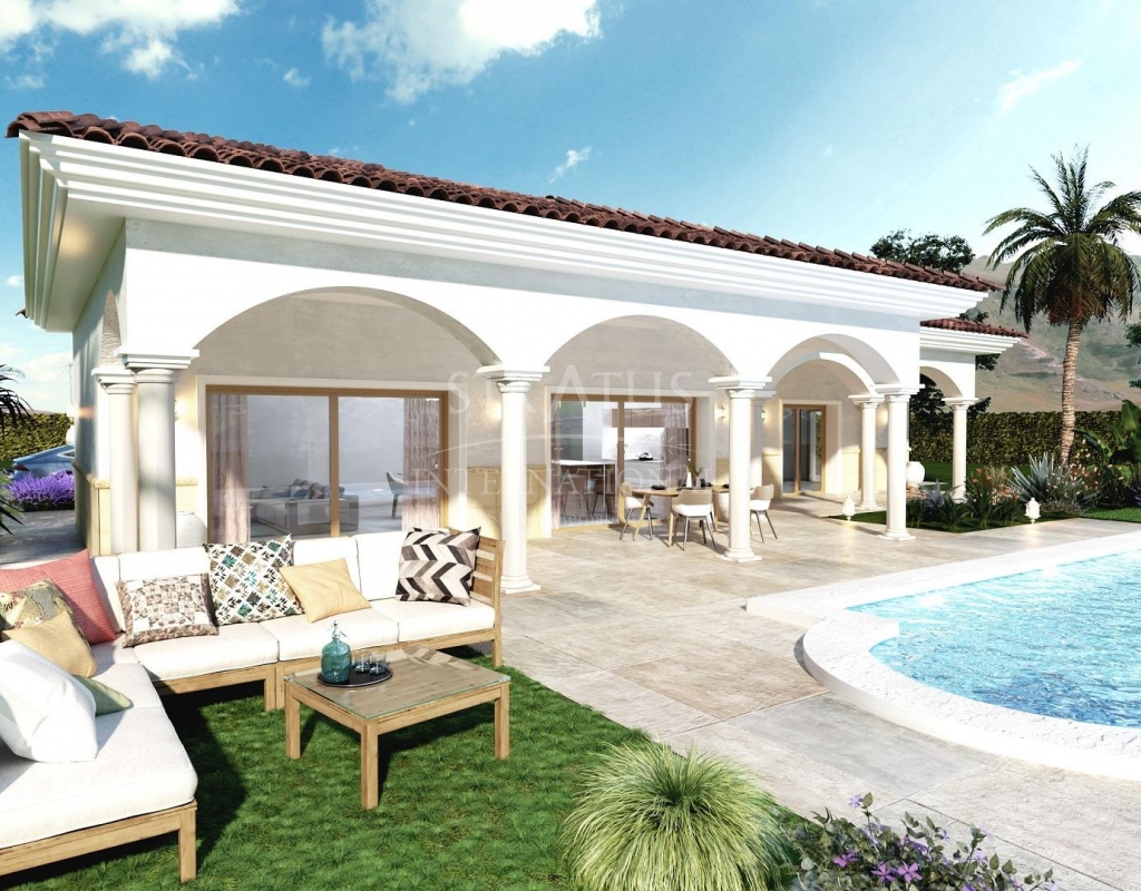 Newly built villas on spacious rural plots in Pinoso, Alicante Quiet Mediterranean living in the heart of nature Discover this exclusive project of newly built villas in Pinoso, a charming town in the interior of the province of Alicante known for its traditional Spanish character, beautiful mountainous landscapes and peaceful surroundings. Perfect for those seeking privacy and space, these villas are built on rustic plots of over 10,000 m² and offer the perfect combination of modern comfort and country living, just 45 km from the coast. Customisable villas with multiple layout options Choose from several villa models with 2, 3 or 4 bedrooms and 2 bathrooms (one of them en suite), all designed on a single floor for maximum comfort. The final price is calculated based on the chosen design, the construction system (slab or structure) and the selected plot. For this advertisement, a plot priced at €60,000 has been considered. If another plot is chosen, the difference will be paid or charged depending on the price of the plot. Each villa has a spacious open-plan kitchen and living room, fitted wardrobes and high-quality finishes throughout. Large windows fill the homes with natural light and provide a seamless integration between indoor and outdoor spaces. Exceptional outdoor spaces with private swimming pool Each property is located in a fenced area of approximately 2,500 m² within a 10,000 m² rustic plot, ensuring great privacy and space. The villas include an 8 x 4 m private swimming pool, a porch, a storage room and private outdoor parking. Enjoy the peaceful views of the surrounding countryside and mountains while relaxing in your pool or entertaining guests in your spacious garden. High-quality construction and modern features Built under a self-build scheme with delivery approximately 12 months after planning permission is granted, each villa is equipped with top-of-the-range specifications, including: Armoured entrance door and motorised gate for vehicles Motorised blinds in the bedrooms Fully fitted kitchen Bathrooms with furniture, mirrors and shower screens Pre-installation for ducted air conditioning Aerothermal hot water system Prime location close to key destinations Pinoso offers all essential amenities, including shops, restaurants, schools and healthcare services, while maintaining a relaxed and authentically Spanish atmosphere. It is surrounded by natural parks, vineyards and hiking trails, ideal for outdoor enthusiasts. Key distances: Elche: 33 km Costa Blanca beaches: 45 km Alicante Airport: 45 km Your perfect rural retreat in Alicante These newly built villas in Pinoso combine the tranquillity of rural life with the comfort of modern design, making them ideal for permanent living, holidays or as an investment. Contact us today for more information or to start designing your dream home in Pinoso.Features