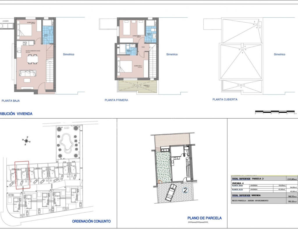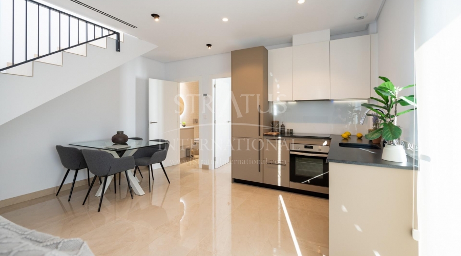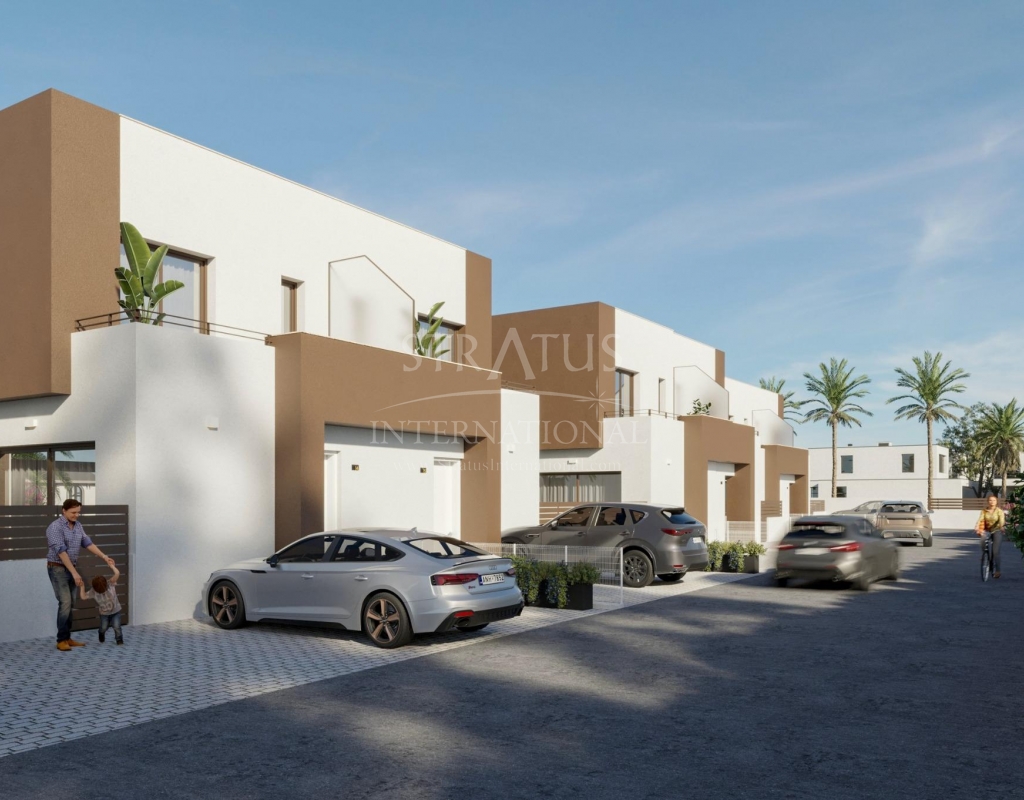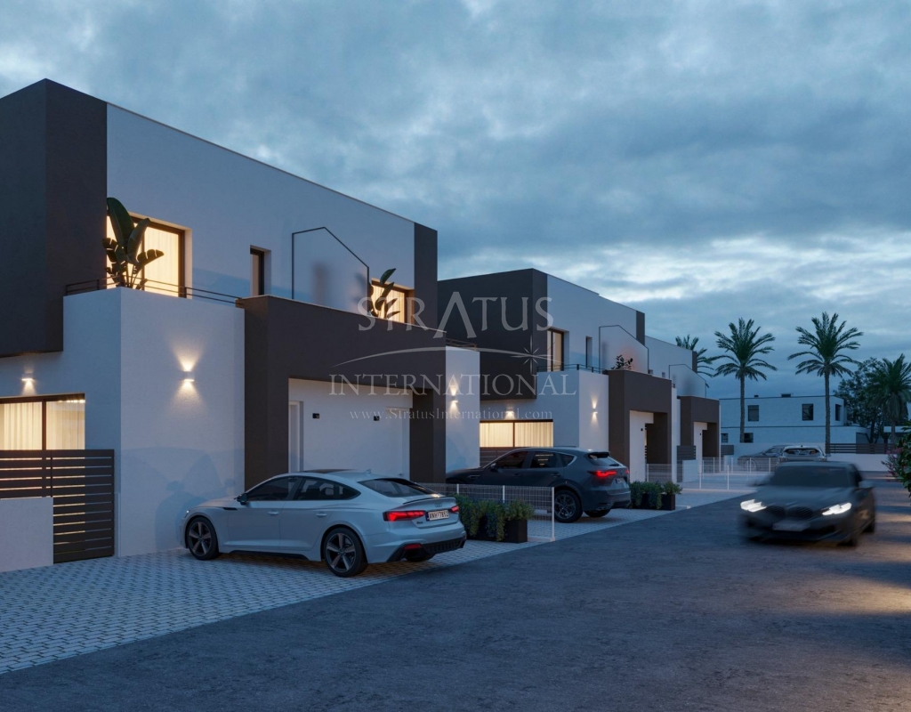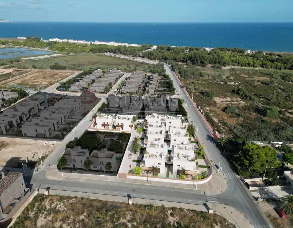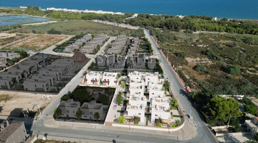New Semi-Detached Villas by the Sea in La Marina - El Pinet Beach Exclusive Mediterranean Living Near the Beach This new residential development of semi-detached villas in La Marina, just 500 meters from El Pinet Beach, offers an unbeatable combination of modern design and a privileged natural environment. Located next to the Las Salinas Natural Park, residents can enjoy golden sandy beaches, crystal-clear waters, protected dunes, and a centuries-old pine forest – the perfect place to live all year round or enjoy as a holiday retreat. Modern Mediterranean Villas Designed for Comfort The villas are distributed over two floors, featuring: 3 spacious bedrooms and 3 bathrooms Ground floor with open-plan kitchen and living room, one bedroom, one bathroom, and access to the private garden with parking space First floor with two bedrooms, both ensuite, and a large terrace connected to the master bedroom Each home has been designed with bright, comfortable interiors and high-quality finishes, creating a unique and welcoming atmosphere. Fully Equipped with Premium Features These villas are delivered with: Fully fitted kitchen with induction hob, extractor hood, oven, fridge and pre-installation for dishwasher Modern cabinetry with premium finishes Fully installed ducted air conditioning Electric shutters Community pool surrounded by landscaped gardens A Prime Location on the Costa Blanca Living in La Marina means enjoying all the conveniences of a well-serviced town while being surrounded by nature and the Mediterranean Sea. Within walking distance you will find shops, restaurants, and essential services. Distances to key points of interest: El Pinet Beach: 500 m Elche city: 17 km Alicante-Elche International Airport: 22 km Golf courses (La Marquesa, El Plantío): 15–20 km Alicante city and port: 30 km The Perfect Coastal Lifestyle Whether you are looking for a permanent residence, a second home, or a smart investment, these villas in El Pinet offer a lifestyle marked by sea, nature, and modern comfort. With year-round sunshine and a privileged location, La Marina is one of the most desirable places on the Costa Blanca. Contact us today to arrange a visit and secure your dream villa by the Mediterranean.Features