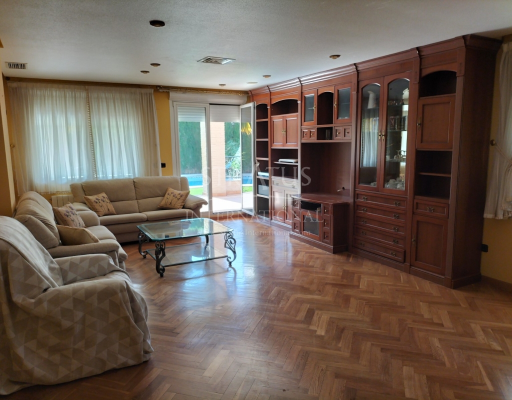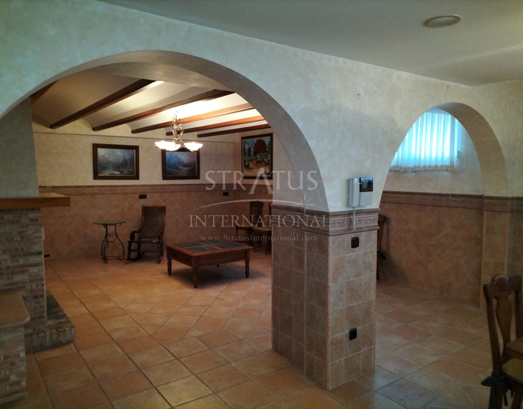 It is worth mentioning the basement floor, as it would be like another annex to this property. It has a beautiful living room with a huge fireplace area and kitchen area. In this area without any problem you could make a bedroom and have a house in this annex property.It has large windows, which gives a lot of light. In the kitchen, there is also a pantry This basement floor also has another bathroom, and access to the garage area.