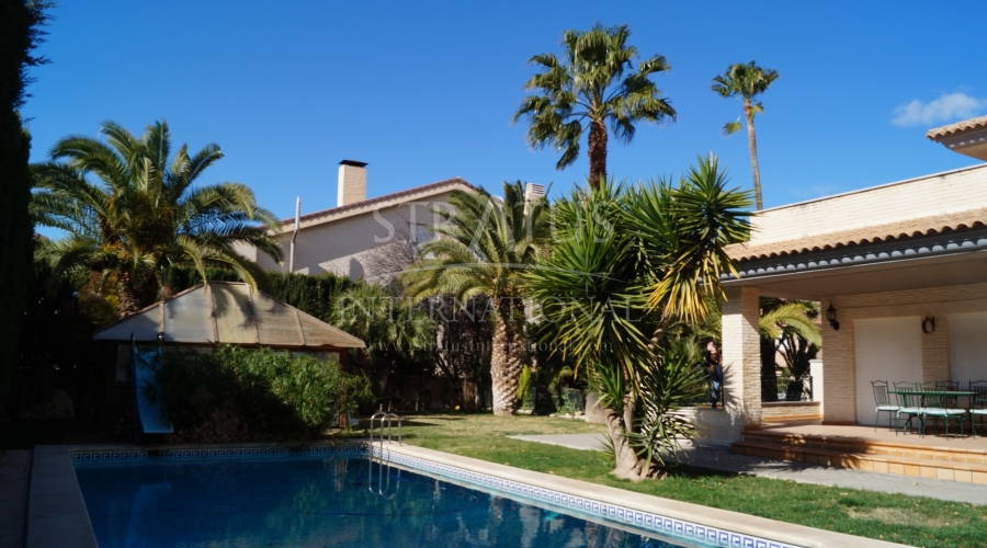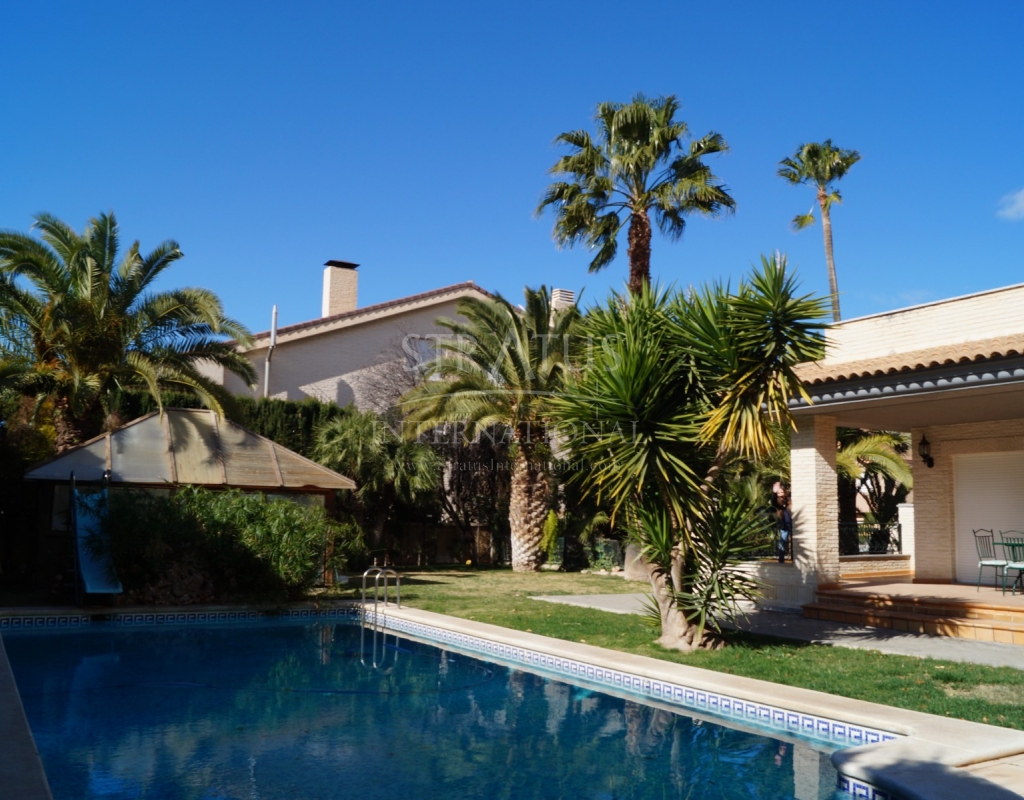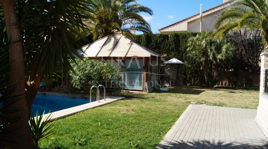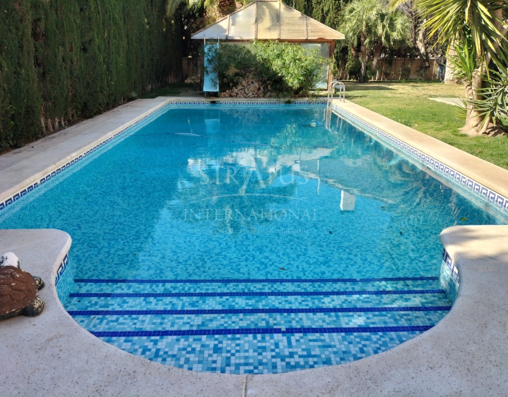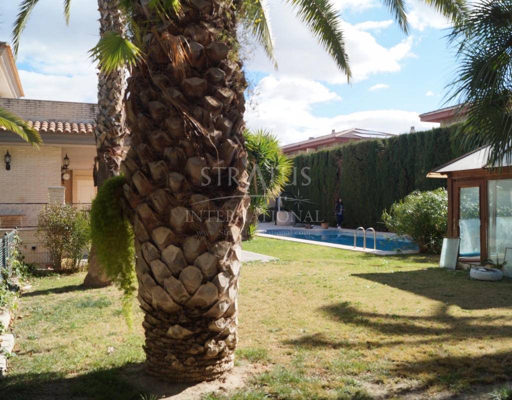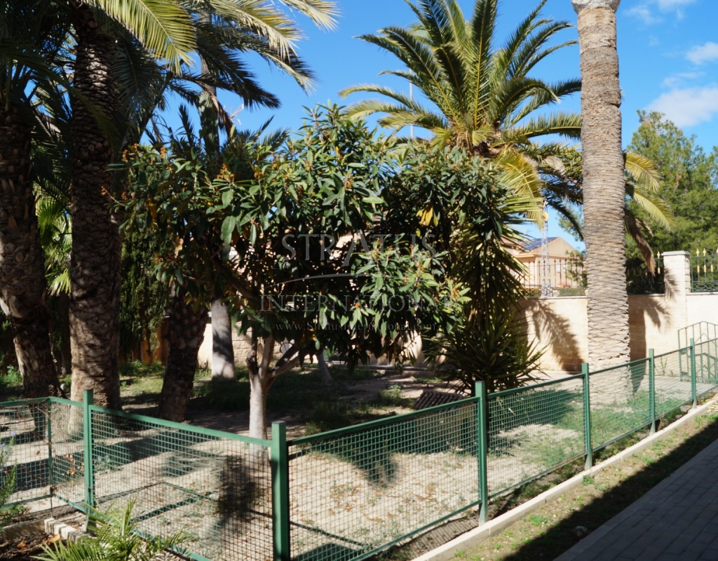 The garden area has a large swimming pool, and relaxation area, as well as part of the garden with beautiful palm trees and plants. This garden area, due to its size, allows a new property to be built on this plot, as it is urban land, with a value today of €250 square meter. Imagine the value of the purchase.