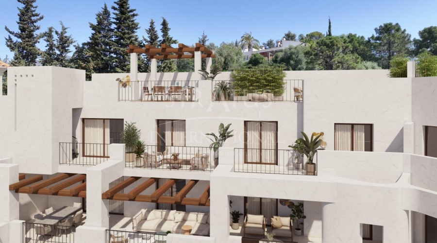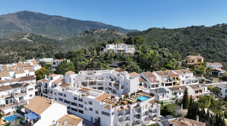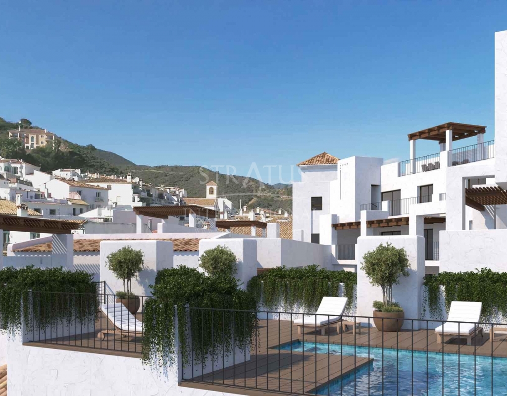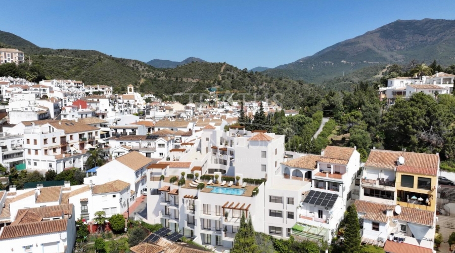 New-Build Apartments and Penthouses for Sale in the Heart of Benahavís, Costa del Sol Exclusive Residential in a Privileged Location Located in the charming Andalusian village of Benahavís, this new residential complex consists of 28 contemporary apartments with 1, 2, and 3 bedrooms and penthouses with private solariums. Each property includes an underground private parking space with pre-installation for electric vehicle charging. The development features a communal rooftop solarium with a swimming pool, offering panoramic mountain views of the Serranía de Ronda. Modern Design and High-Quality Finishes These homes are delivered with top-quality materials and finishes, contemporary interiors, and open, bright spaces. Large windows maximize natural light and create a seamless connection between indoor and outdoor living. Construction of the first phase is scheduled to begin in May 2025, with delivery expected in April 2027. Enjoy the Authentic Andalusian Lifestyle The complex is uniquely positioned within the center of Benahavís, allowing residents to enjoy the charm of a traditional whitewashed village with all services at hand, including international schools, renowned culinary establishments, and local shops. Benahavís is famous for its exceptional gastronomy and stunning natural surroundings, offering activities such as hiking, canyoning in the Angosturas Gorge, and exploring nearby Andalusian towns like Estepona, Marbella, and San Pedro de Alcántara. Proximity to Golf Courses, Beaches, and Main Destinations For golf enthusiasts, top 18-hole courses such as Atalaya Golf, El Paraíso Golf, and El Campanario Golf are all within 10 km. The golden beaches of Marbella and San Pedro de Alcántara are just 7 km away, while the exclusive Puerto Banús is only a 15-minute drive. The complex also offers quick access to major highways, ensuring excellent connectivity with Marbella, Estepona, and Ronda. Málaga and Gibraltar international airports are conveniently located approximately 65 km and 70 km away, respectively, making travel easy and accessible. A Natural Setting with Modern Comforts Surrounded by the breathtaking landscapes of the Serranía de Ronda and close to the Sierra de las Nieves Natural Park, this development offers a perfect blend of mountain tranquility and coastal convenience. Secure your apartment or penthouse in Benahavís today and enjoy life under the sun, between the mountains and the sea, in one of the most desirable locations on the Costa del Sol.Features