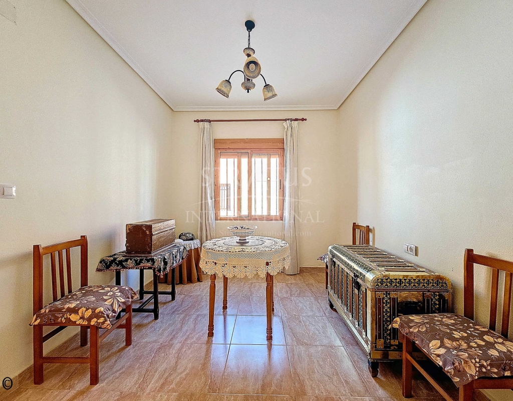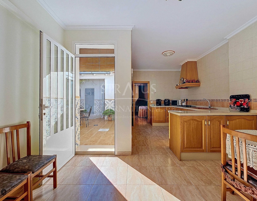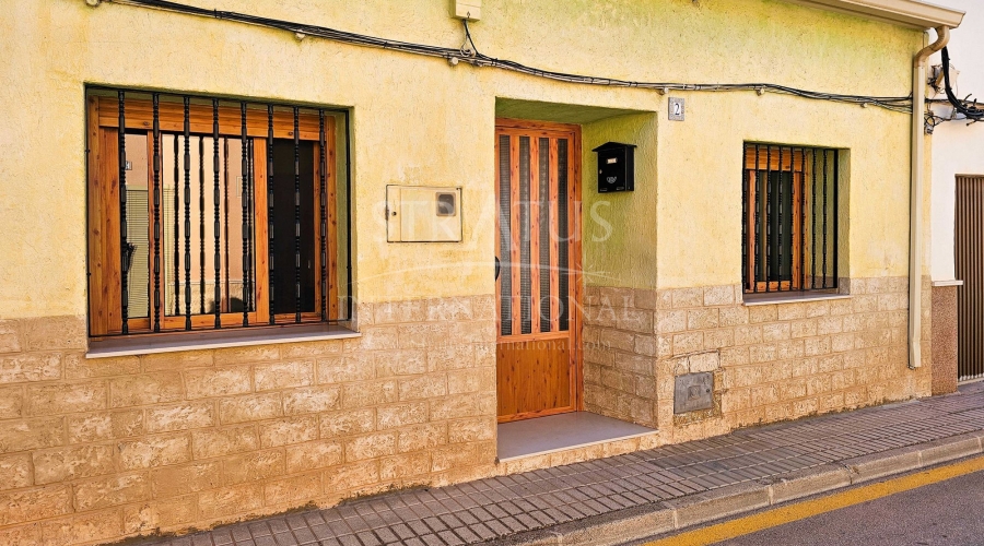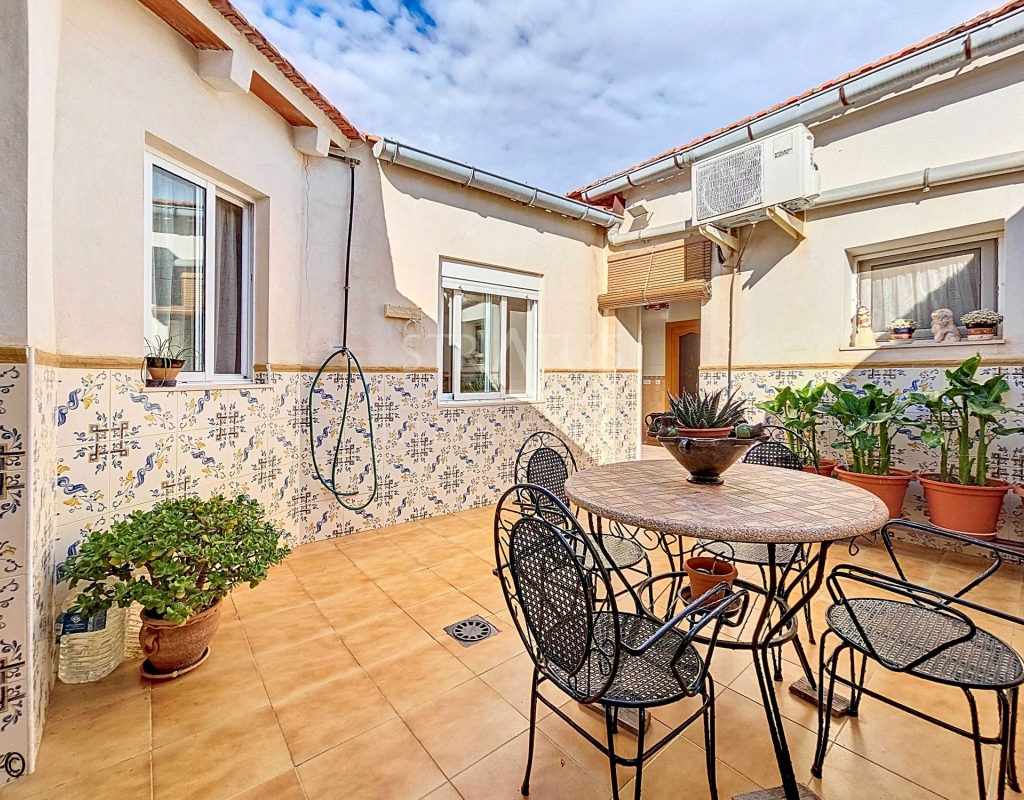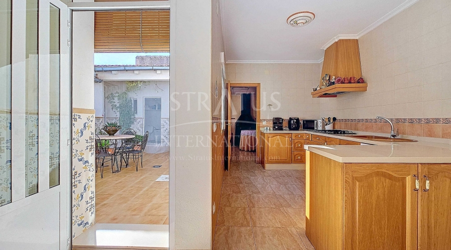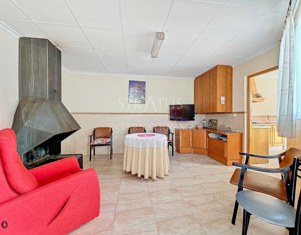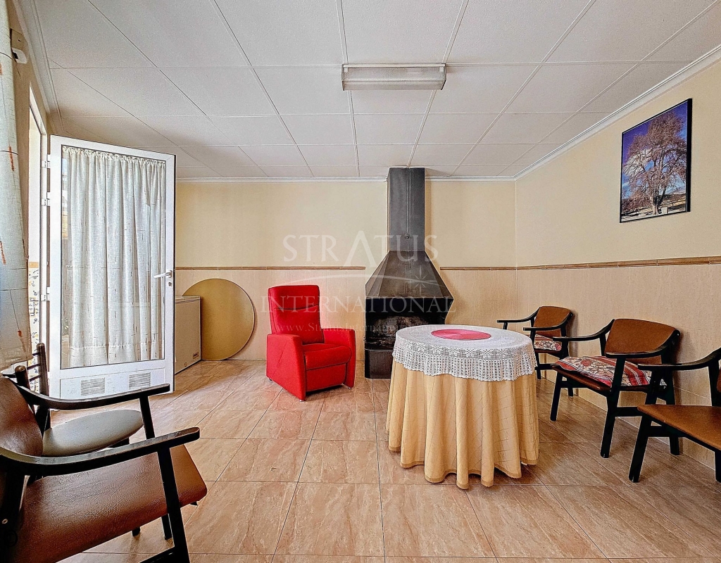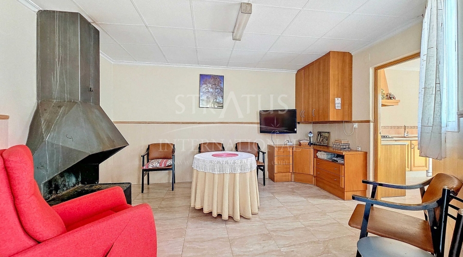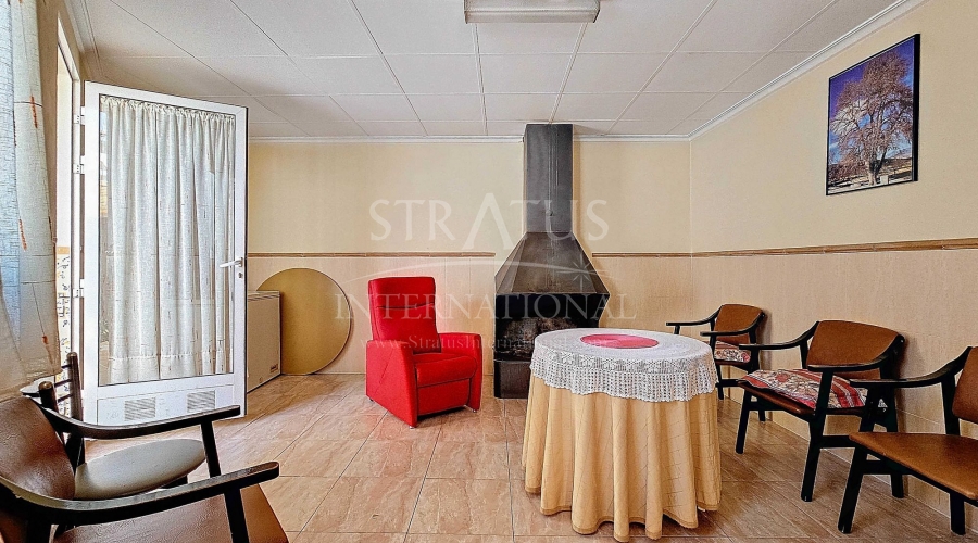 Village House with Patio and Spacious Garage in Pinoso Are you looking for a charming village house in Pinoso with all amenities within walking distance? This property offers everything you need, starting with its ideal location on a quiet street, and a spacious garage that is accessible both from the house and the adjacent street. Layout of the house: First, you enter the house through a hallway with two spacious bedrooms on either side. One of these bedrooms provides access to a third bedroom, which can also be reached via the spacious living room. The living room offers access to both the bathroom and the kitchen, creating a logical layout of the spaces. The kitchen features a dining area and opens onto a cozy patio, perfect for outdoor enjoyment. Additionally, there is an extra room connected to the kitchen, equipped with a fireplace, which adds extra warmth and ambiance, especially during the colder months. This room also provides access to the patio, keeping you close to outdoor living at all times. In this part of the house, you’ll also find a large toilet with a laundry room, a storage room, and an outdoor kitchen/barbecue, giving you plenty of options for outdoor cooking and relaxation. Garage and extras: The large garage is spacious enough for three cars, but it can also be used for other purposes, such as storage or a workshop. With connections to electricity, sewage, and water, and air conditioning (hot/cold), the house offers both comfort and convenience. Additionally, the beautiful wooden frames and the neatly finished walls, ceilings, and floors make this home ready to move into. So, what are you waiting for? Schedule a viewing now and discover the possibilities of this beautiful village house in Pinoso!Build
