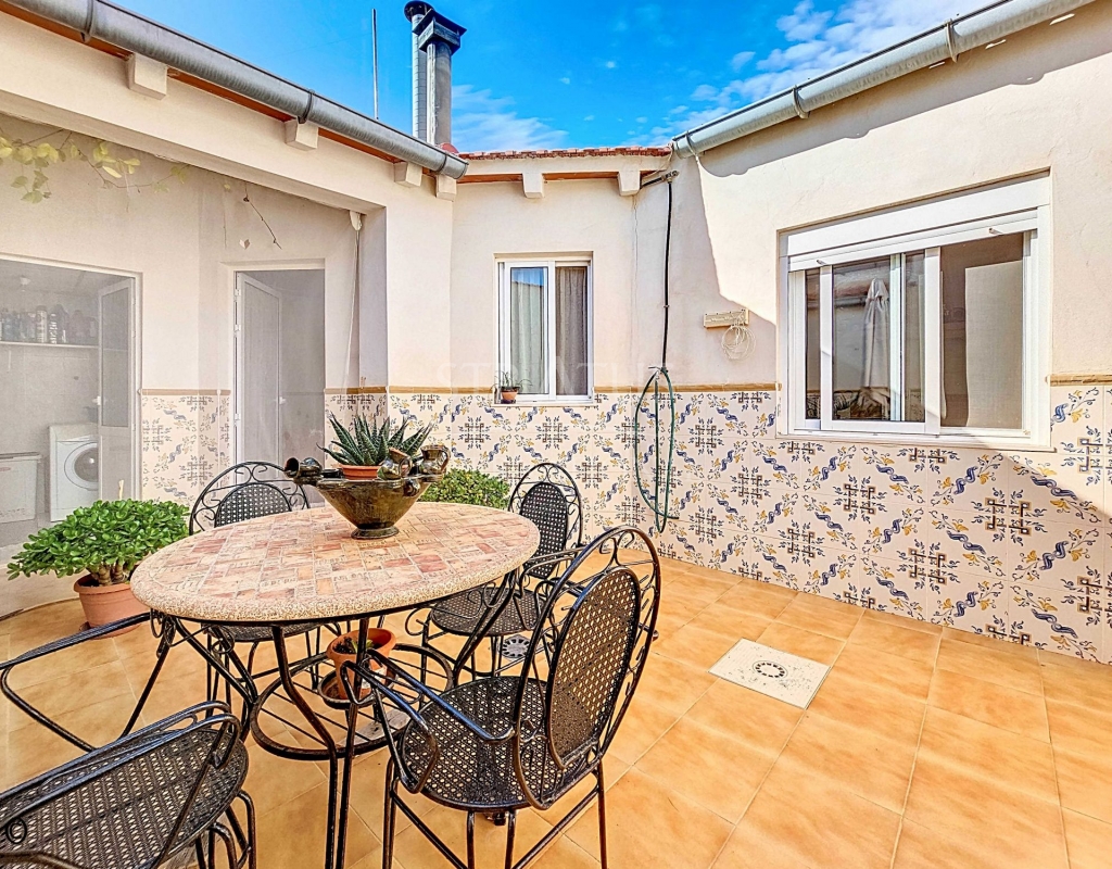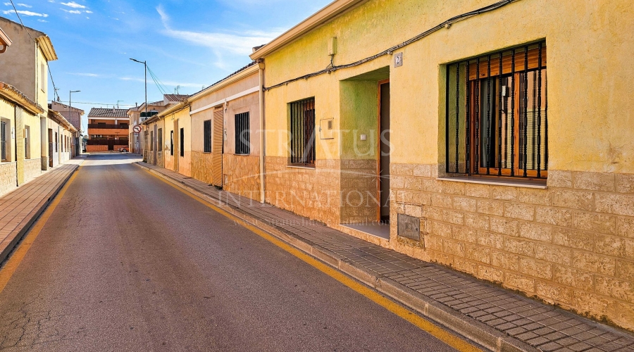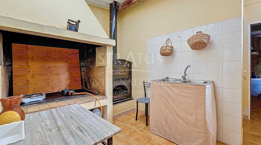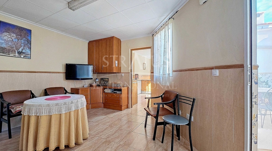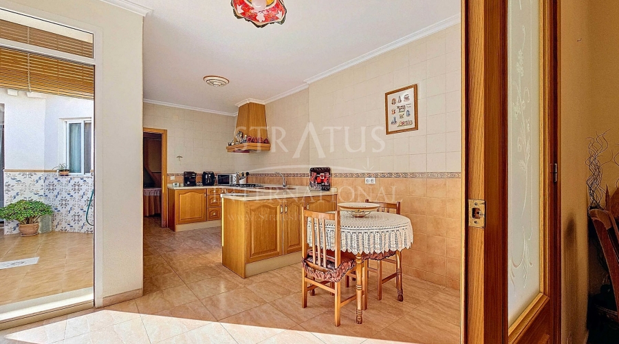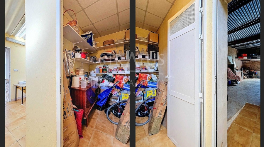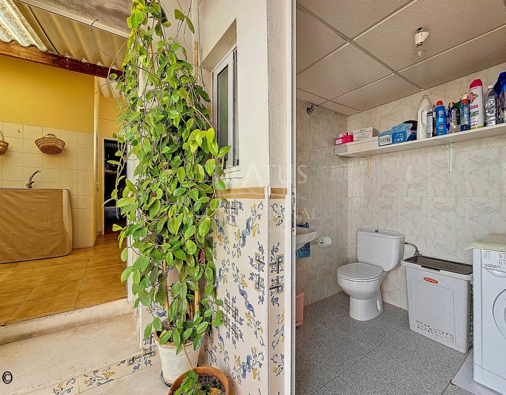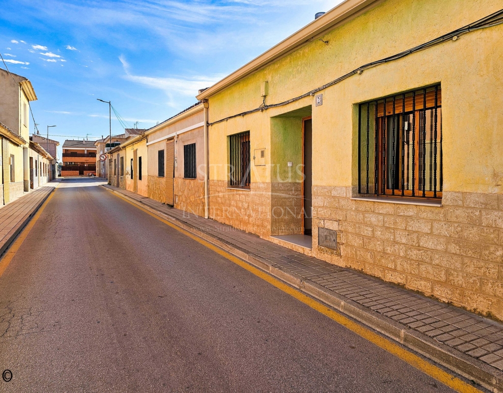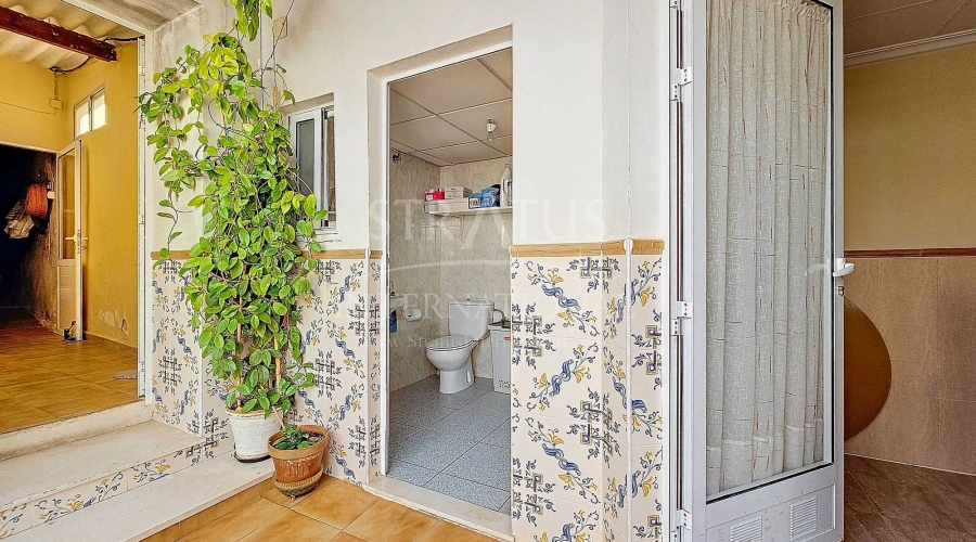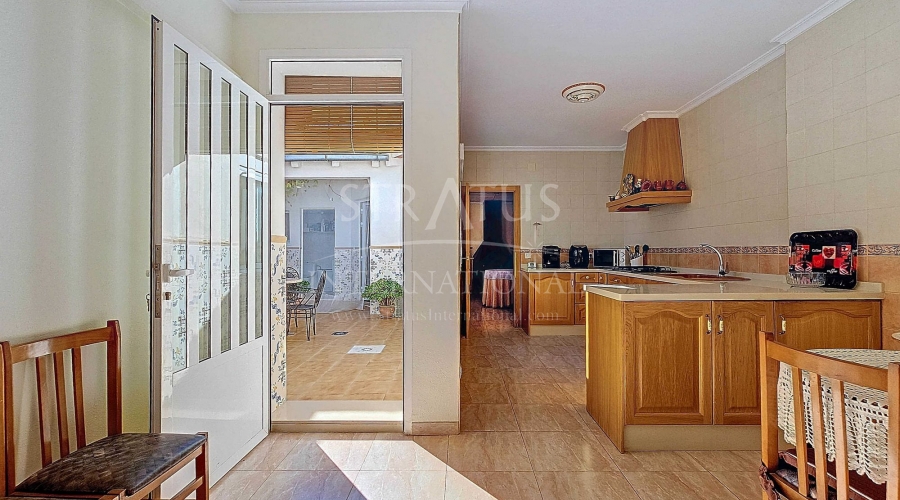 Village House with Patio and Spacious Garage in Pinoso Are you looking for a charming village house in Pinoso with all amenities within walking distance? This property offers everything you need, starting with its ideal location on a quiet street, and a spacious garage that is accessible both from the house and the adjacent street. Layout of the house: First, you enter the house through a hallway with two spacious bedrooms on either side. One of these bedrooms provides access to a third bedroom, which can also be reached via the spacious living room. The living room offers access to both the bathroom and the kitchen, creating a logical layout of the spaces. The kitchen features a dining area and opens onto a cozy patio, perfect for outdoor enjoyment. Additionally, there is an extra room connected to the kitchen, equipped with a fireplace, which adds extra warmth and ambiance, especially during the colder months. This room also provides access to the patio, keeping you close to outdoor living at all times. In this part of the house, you’ll also find a large toilet with a laundry room, a storage room, and an outdoor kitchen/barbecue, giving you plenty of options for outdoor cooking and relaxation. Garage and extras: The large garage is spacious enough for three cars, but it can also be used for other purposes, such as storage or a workshop. With connections to electricity, sewage, and water, and air conditioning (hot/cold), the house offers both comfort and convenience. Additionally, the beautiful wooden frames and the neatly finished walls, ceilings, and floors make this home ready to move into. So, what are you waiting for? Schedule a viewing now and discover the possibilities of this beautiful village house in Pinoso!Build