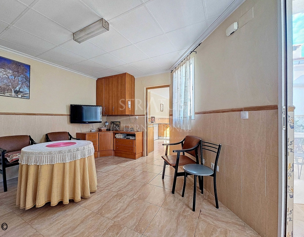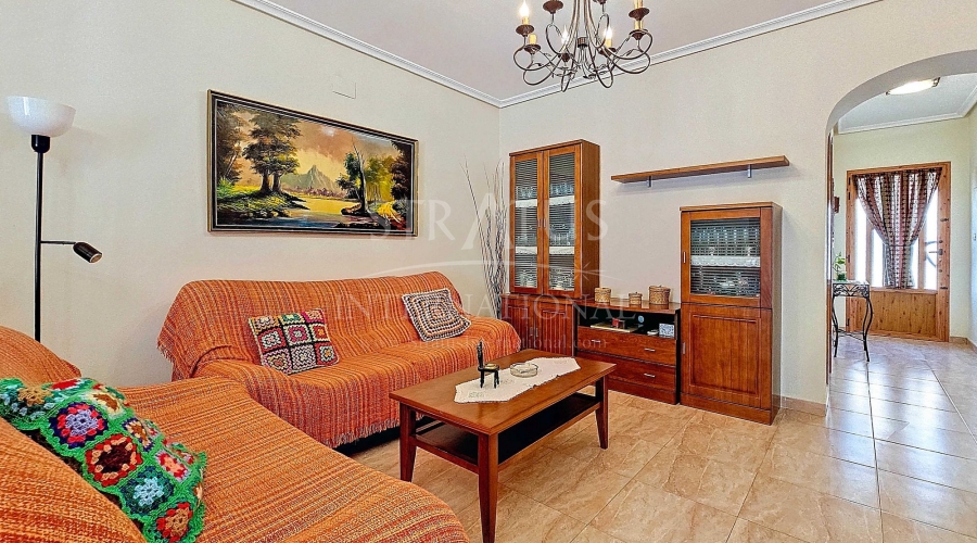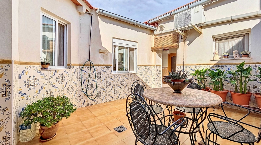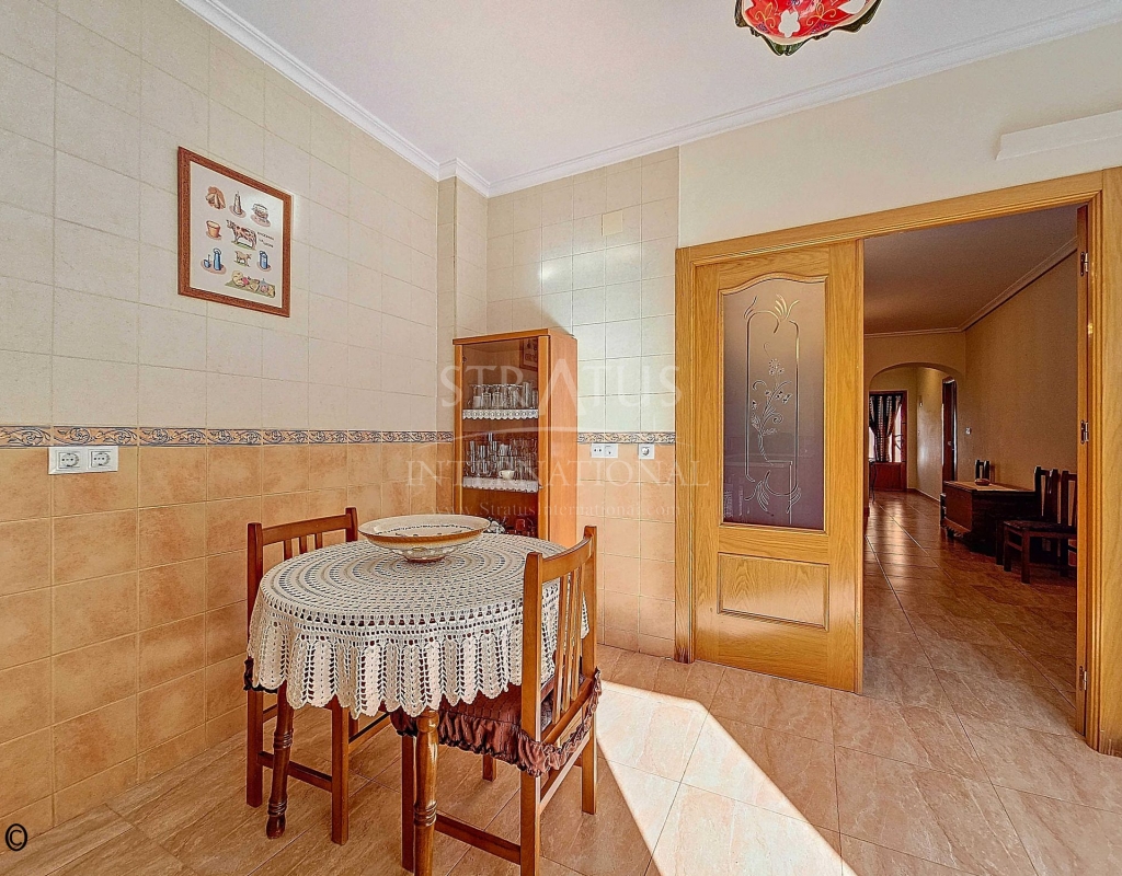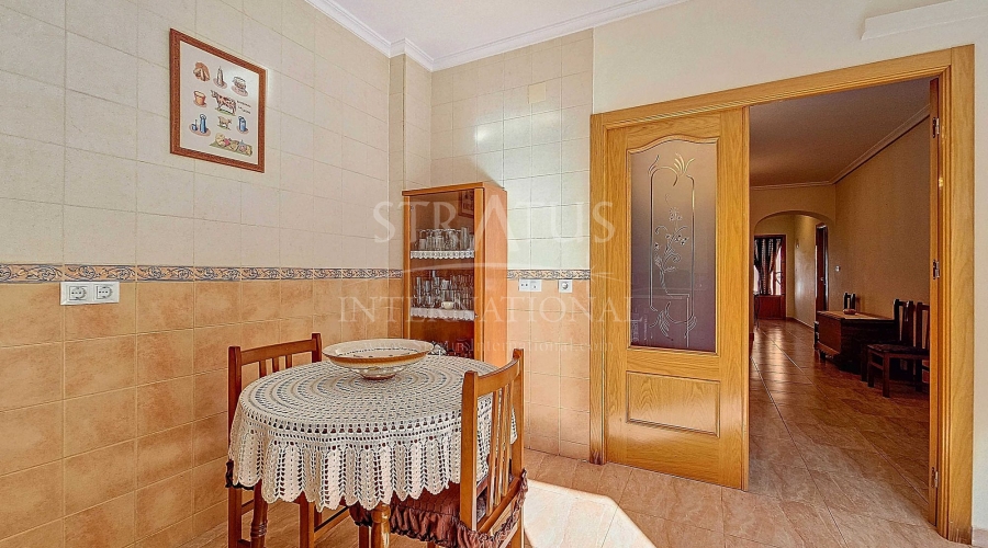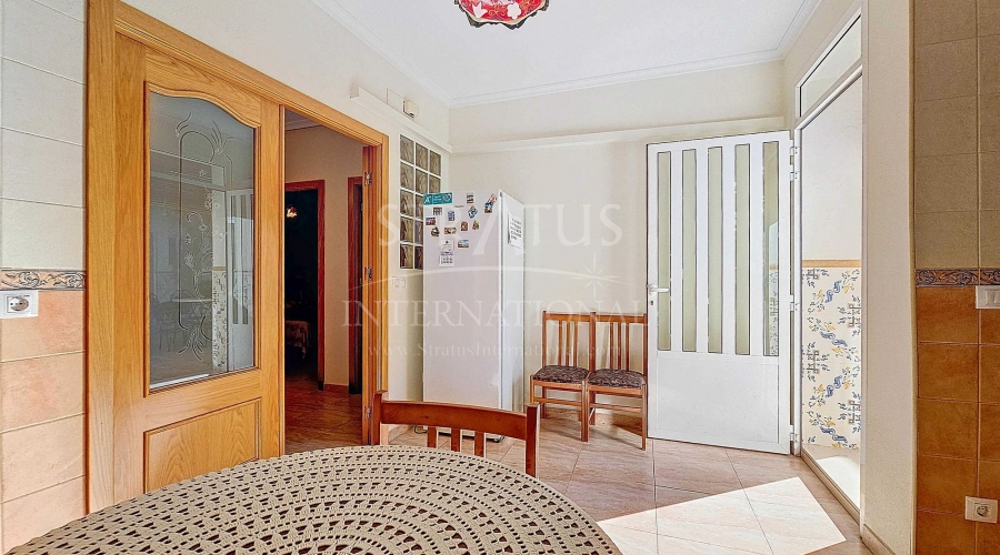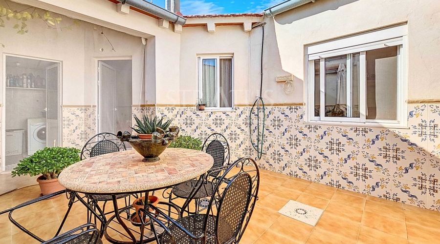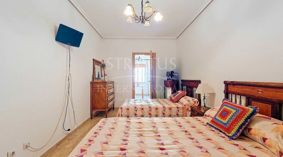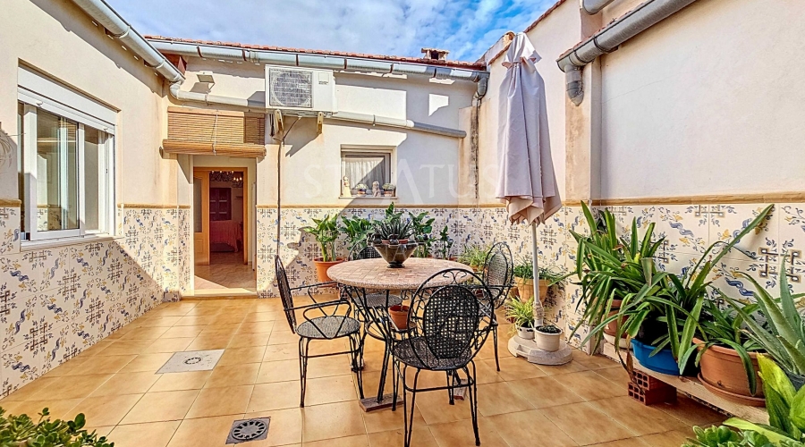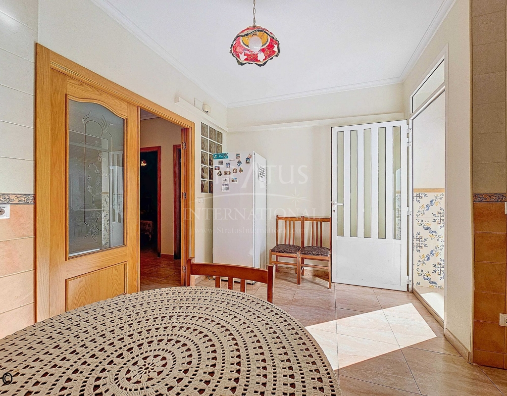 Village House with Patio and Spacious Garage in Pinoso Are you looking for a charming village house in Pinoso with all amenities within walking distance? This property offers everything you need, starting with its ideal location on a quiet street, and a spacious garage that is accessible both from the house and the adjacent street. Layout of the house: First, you enter the house through a hallway with two spacious bedrooms on either side. One of these bedrooms provides access to a third bedroom, which can also be reached via the spacious living room. The living room offers access to both the bathroom and the kitchen, creating a logical layout of the spaces. The kitchen features a dining area and opens onto a cozy patio, perfect for outdoor enjoyment. Additionally, there is an extra room connected to the kitchen, equipped with a fireplace, which adds extra warmth and ambiance, especially during the colder months. This room also provides access to the patio, keeping you close to outdoor living at all times. In this part of the house, you’ll also find a large toilet with a laundry room, a storage room, and an outdoor kitchen/barbecue, giving you plenty of options for outdoor cooking and relaxation. Garage and extras: The large garage is spacious enough for three cars, but it can also be used for other purposes, such as storage or a workshop. With connections to electricity, sewage, and water, and air conditioning (hot/cold), the house offers both comfort and convenience. Additionally, the beautiful wooden frames and the neatly finished walls, ceilings, and floors make this home ready to move into. So, what are you waiting for? Schedule a viewing now and discover the possibilities of this beautiful village house in Pinoso!Build