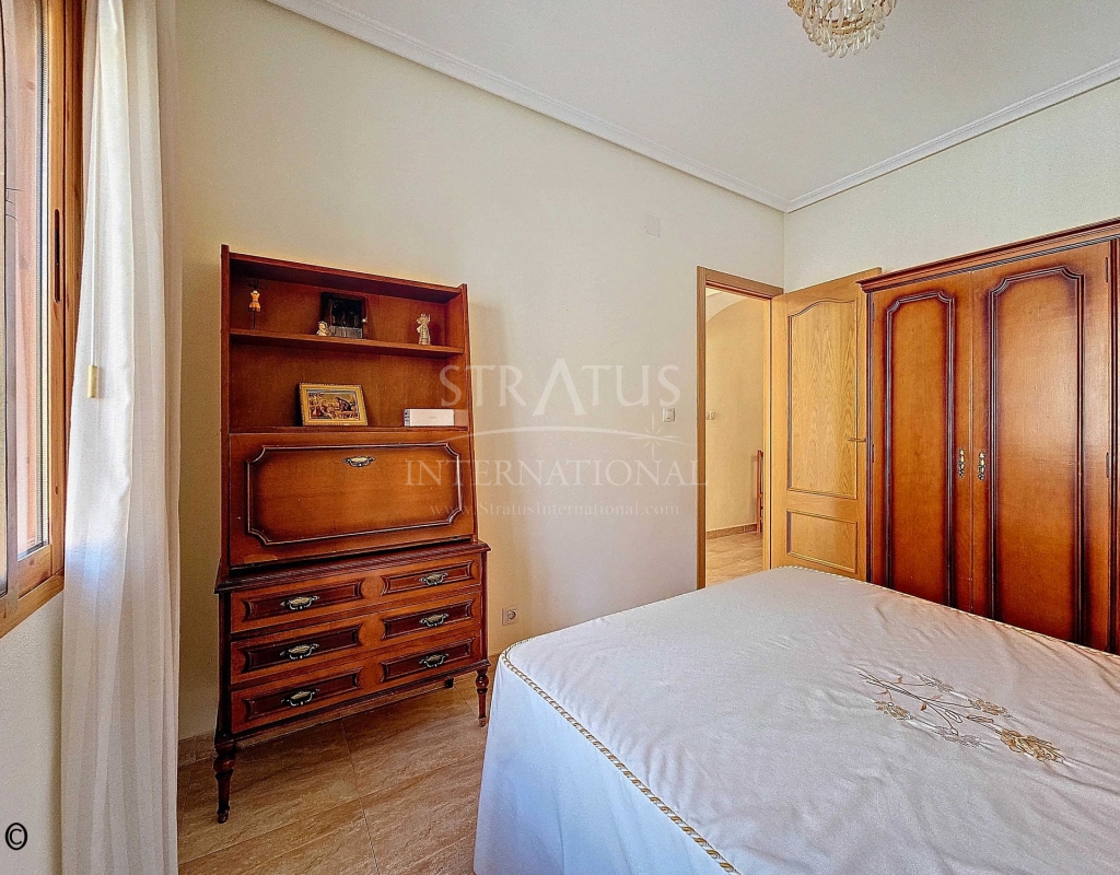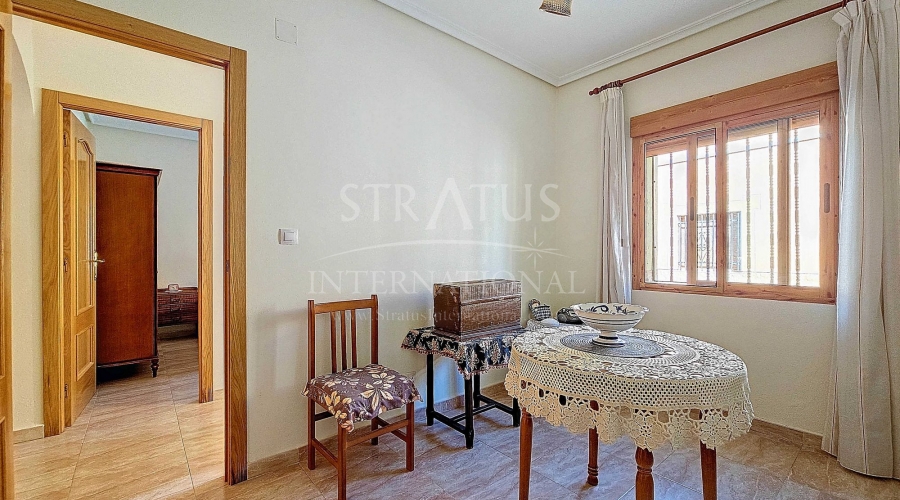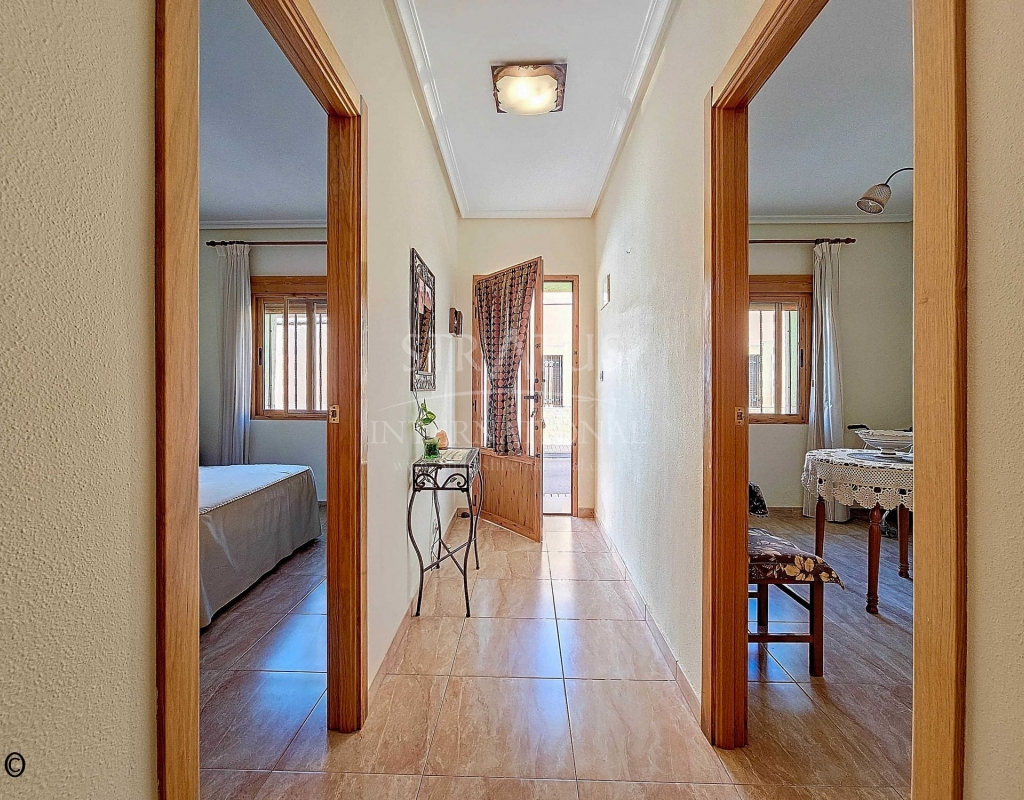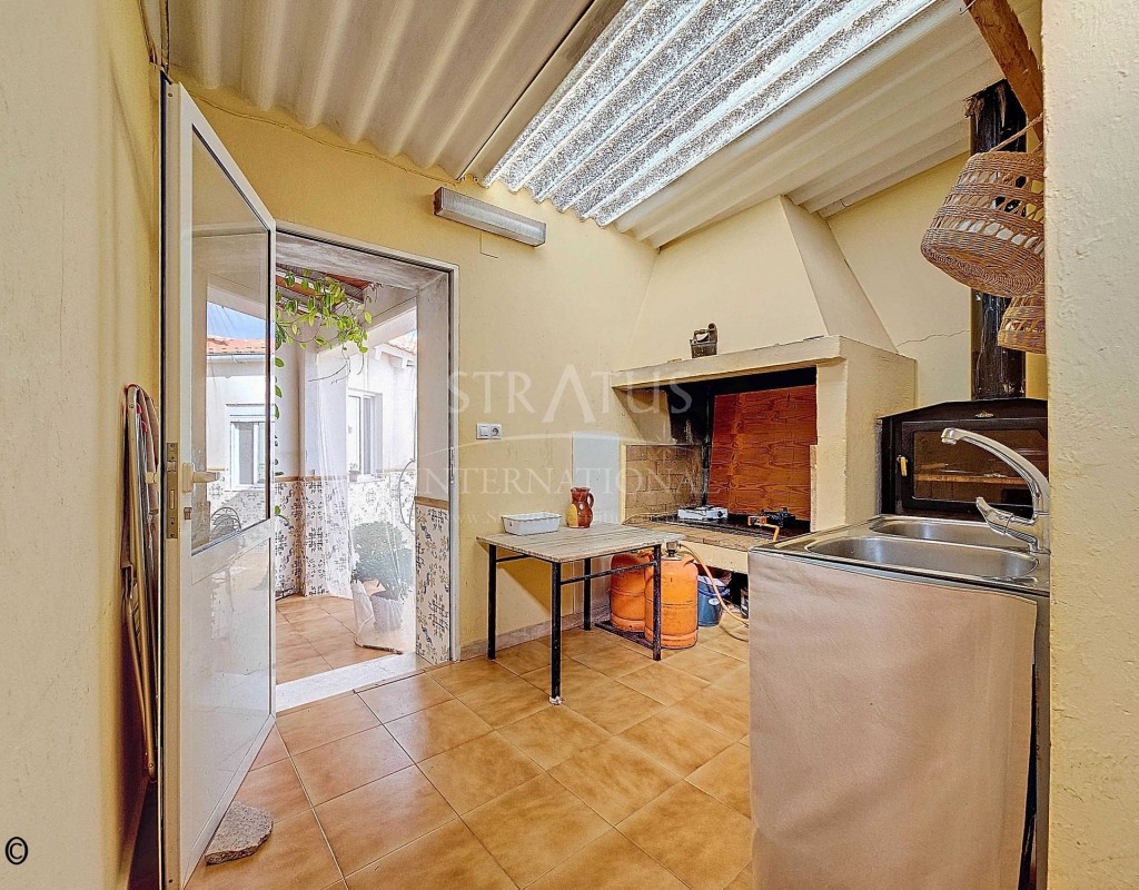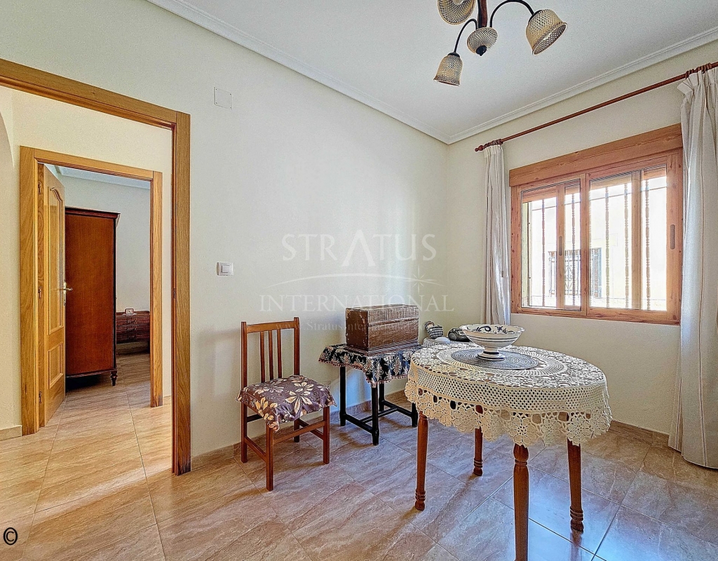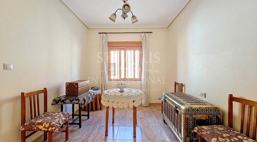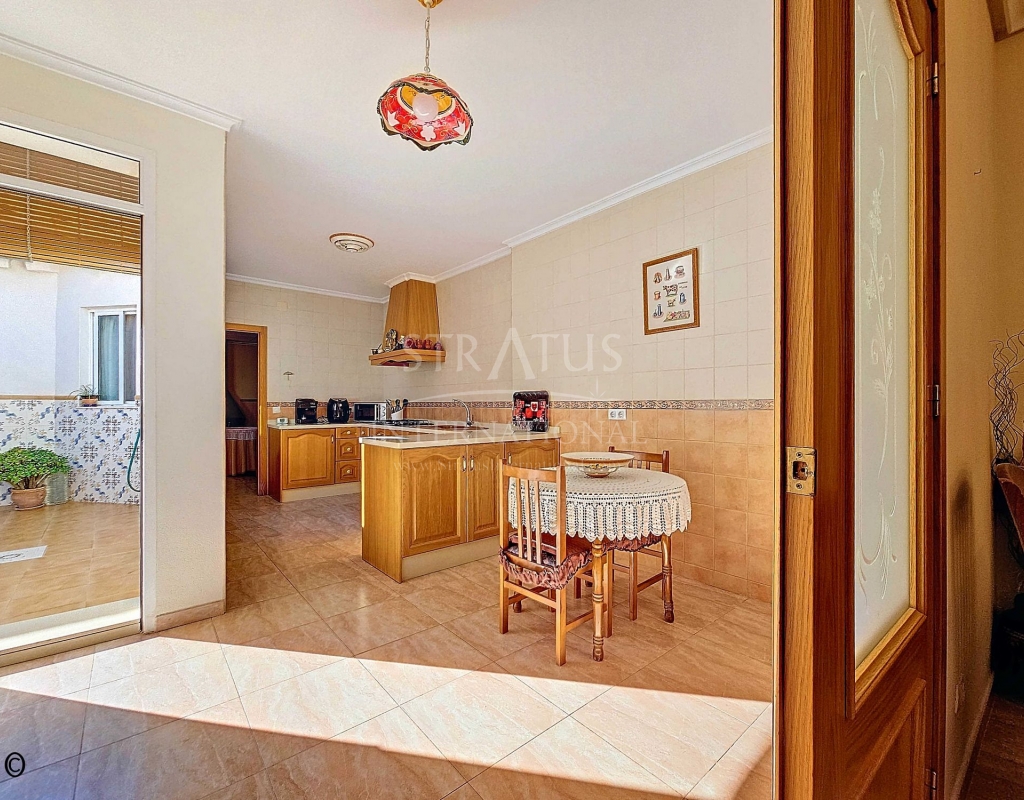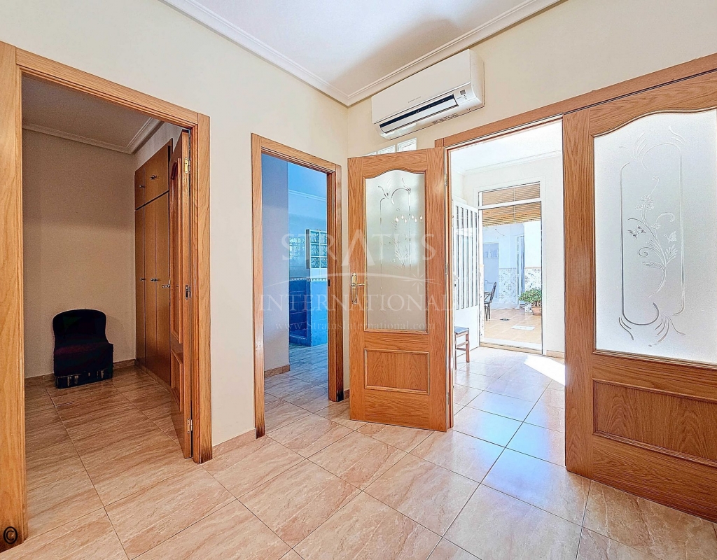 Village House with Patio and Spacious Garage in Pinoso Are you looking for a charming village house in Pinoso with all amenities within walking distance? This property offers everything you need, starting with its ideal location on a quiet street, and a spacious garage that is accessible both from the house and the adjacent street. Layout of the house: First, you enter the house through a hallway with two spacious bedrooms on either side. One of these bedrooms provides access to a third bedroom, which can also be reached via the spacious living room. The living room offers access to both the bathroom and the kitchen, creating a logical layout of the spaces. The kitchen features a dining area and opens onto a cozy patio, perfect for outdoor enjoyment. Additionally, there is an extra room connected to the kitchen, equipped with a fireplace, which adds extra warmth and ambiance, especially during the colder months. This room also provides access to the patio, keeping you close to outdoor living at all times. In this part of the house, you’ll also find a large toilet with a laundry room, a storage room, and an outdoor kitchen/barbecue, giving you plenty of options for outdoor cooking and relaxation. Garage and extras: The large garage is spacious enough for three cars, but it can also be used for other purposes, such as storage or a workshop. With connections to electricity, sewage, and water, and air conditioning (hot/cold), the house offers both comfort and convenience. Additionally, the beautiful wooden frames and the neatly finished walls, ceilings, and floors make this home ready to move into. So, what are you waiting for? Schedule a viewing now and discover the possibilities of this beautiful village house in Pinoso!Build