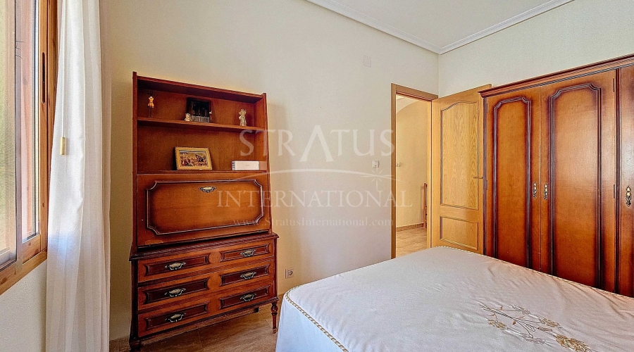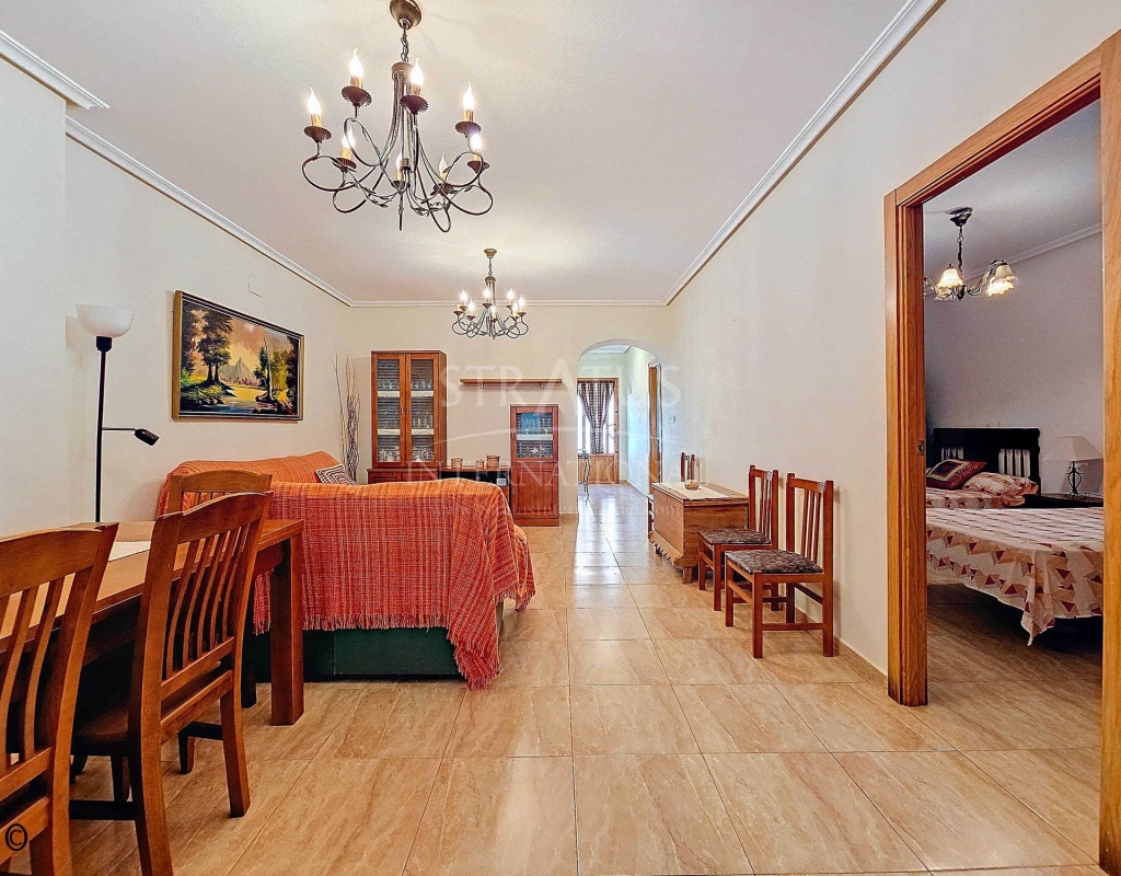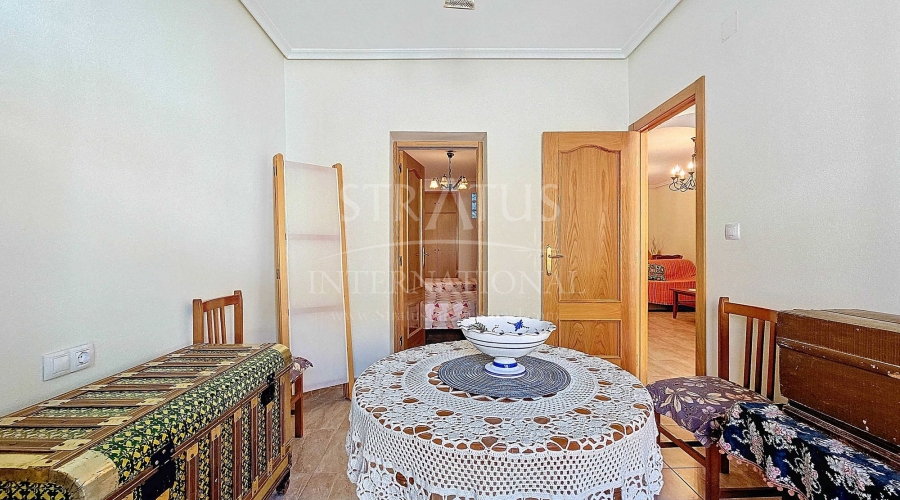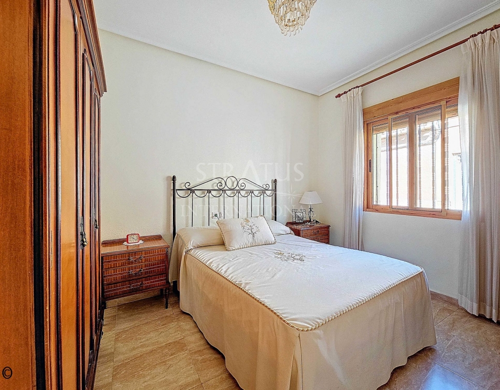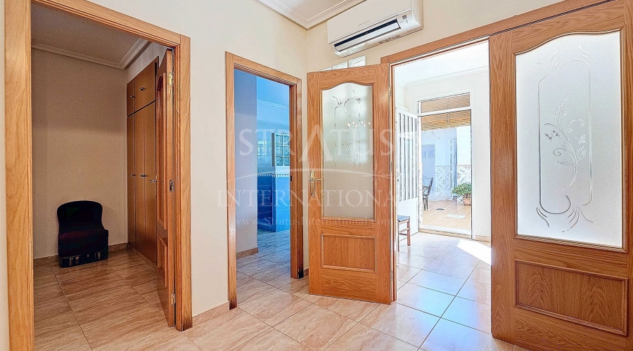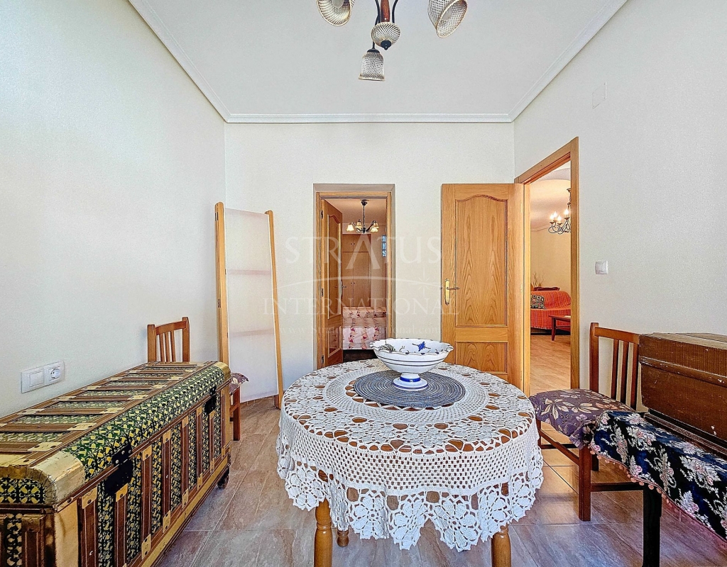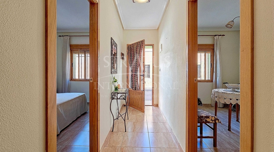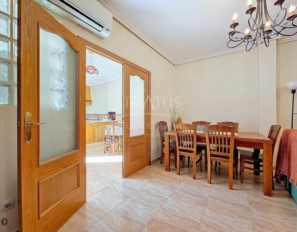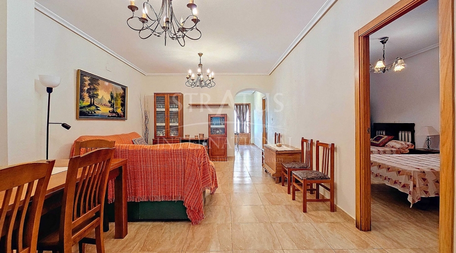 Village House with Patio and Spacious Garage in Pinoso Are you looking for a charming village house in Pinoso with all amenities within walking distance? This property offers everything you need, starting with its ideal location on a quiet street, and a spacious garage that is accessible both from the house and the adjacent street. Layout of the house: First, you enter the house through a hallway with two spacious bedrooms on either side. One of these bedrooms provides access to a third bedroom, which can also be reached via the spacious living room. The living room offers access to both the bathroom and the kitchen, creating a logical layout of the spaces. The kitchen features a dining area and opens onto a cozy patio, perfect for outdoor enjoyment. Additionally, there is an extra room connected to the kitchen, equipped with a fireplace, which adds extra warmth and ambiance, especially during the colder months. This room also provides access to the patio, keeping you close to outdoor living at all times. In this part of the house, you’ll also find a large toilet with a laundry room, a storage room, and an outdoor kitchen/barbecue, giving you plenty of options for outdoor cooking and relaxation. Garage and extras: The large garage is spacious enough for three cars, but it can also be used for other purposes, such as storage or a workshop. With connections to electricity, sewage, and water, and air conditioning (hot/cold), the house offers both comfort and convenience. Additionally, the beautiful wooden frames and the neatly finished walls, ceilings, and floors make this home ready to move into. So, what are you waiting for? Schedule a viewing now and discover the possibilities of this beautiful village house in Pinoso!Build
