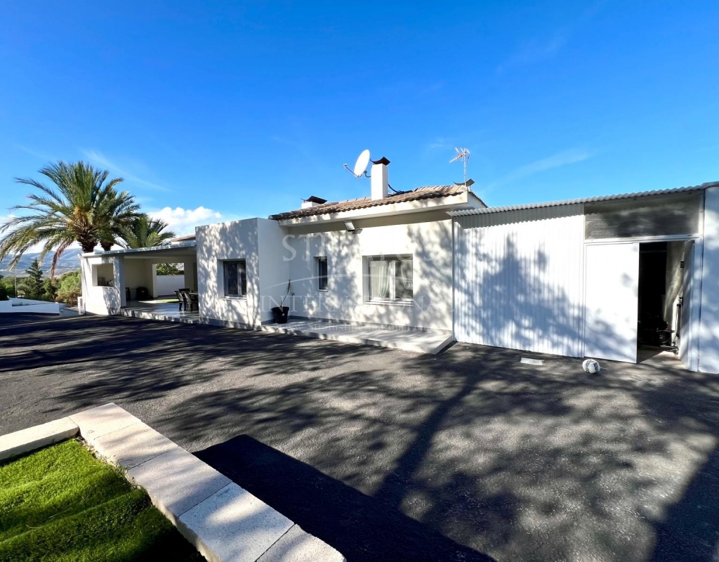 This modern villa offers a comfortable and practical layout, ideal for those seeking space, privacy, and a move-in ready home. Fully renovated, it features new plumbing, new electrical installation, air conditioning and heating, and a complete alarm system. Located just 5 minutes from the town of Elda, the property sits in a quiet area with open views and convenient access to a large town and all its services.