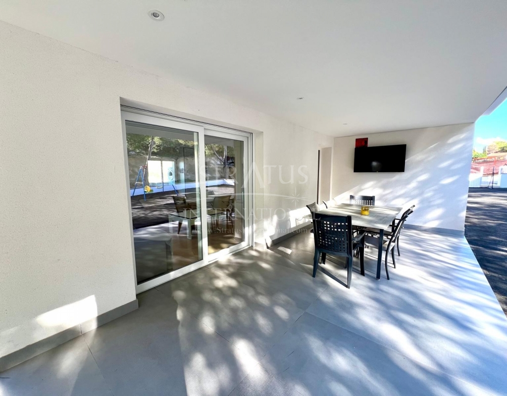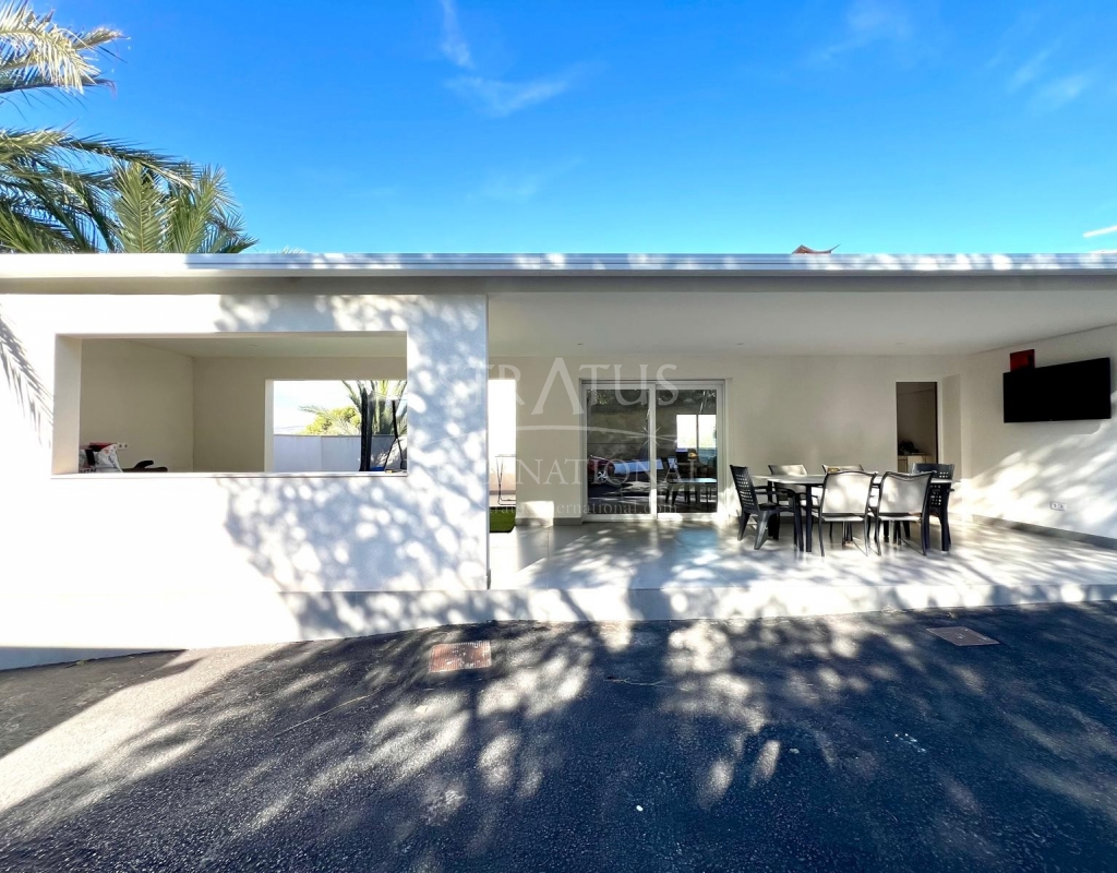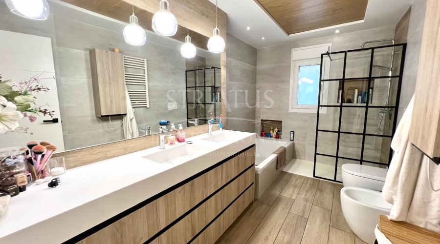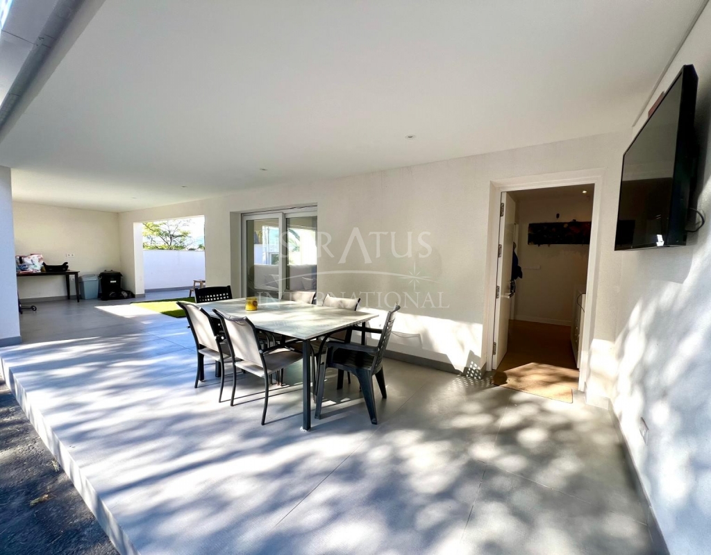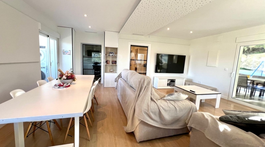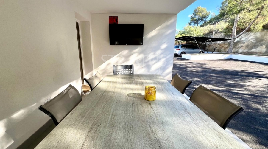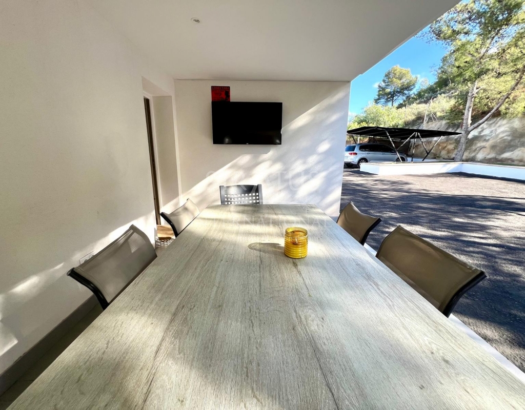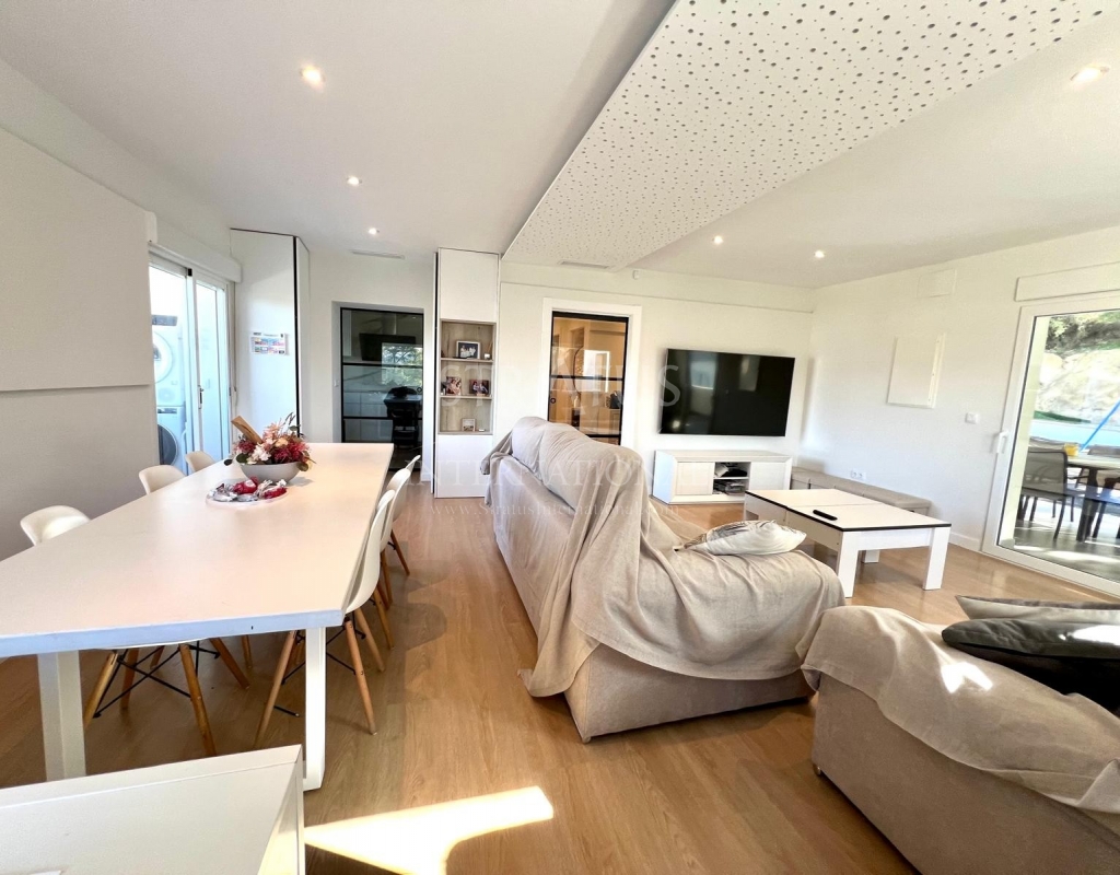 The exterior is designed for outdoor living. The pool offers spectacular views, with a porch area beside it which is ideal for relaxing on sun loungers. There is also a 30 m² garage, a dedicated outdoor bathroom, all on a fully fenced plot with covered parking.