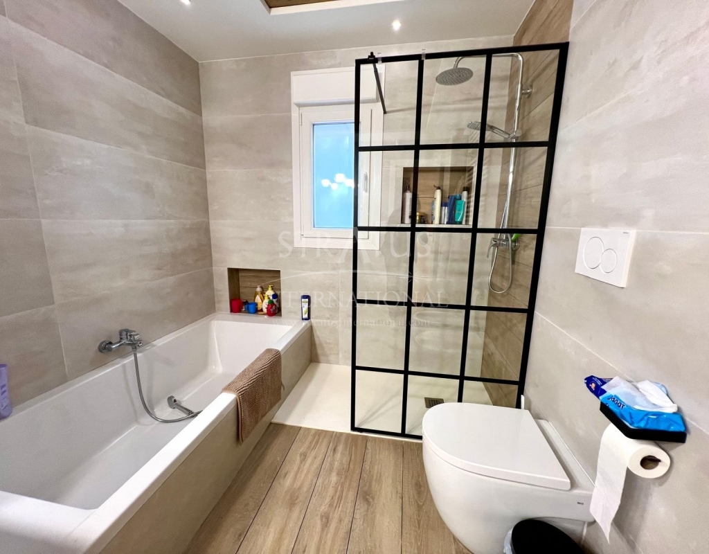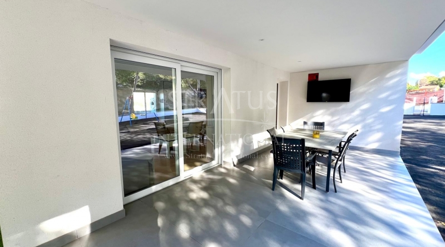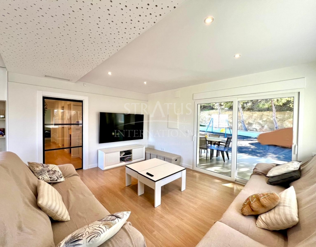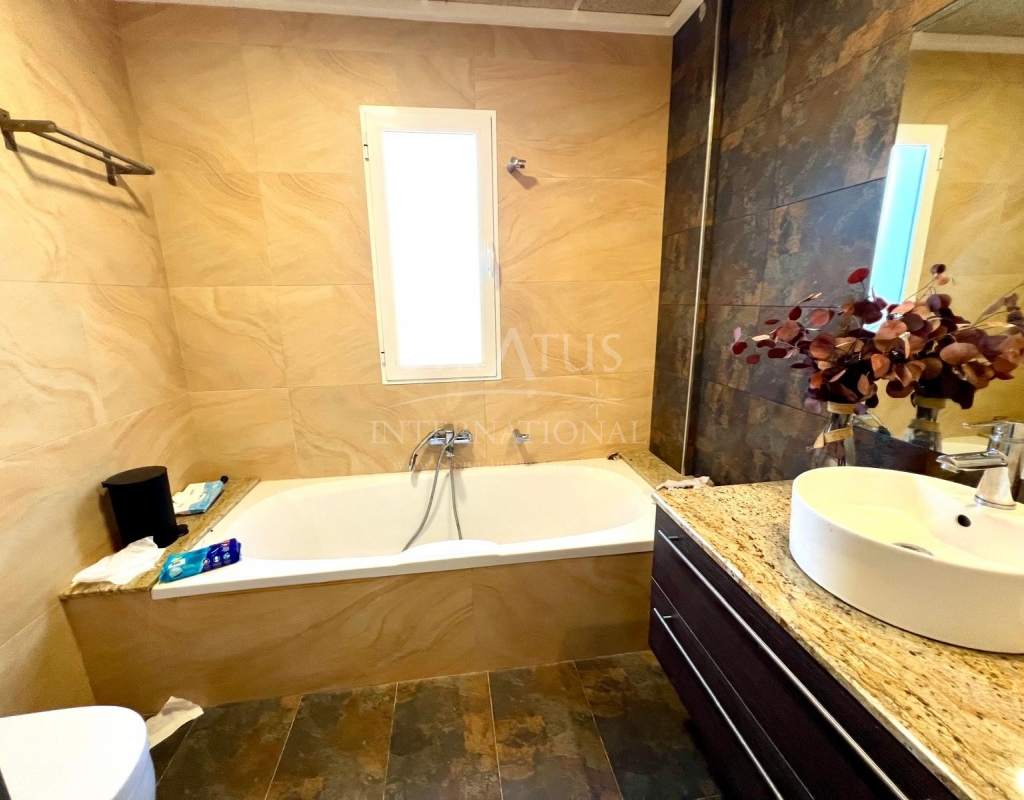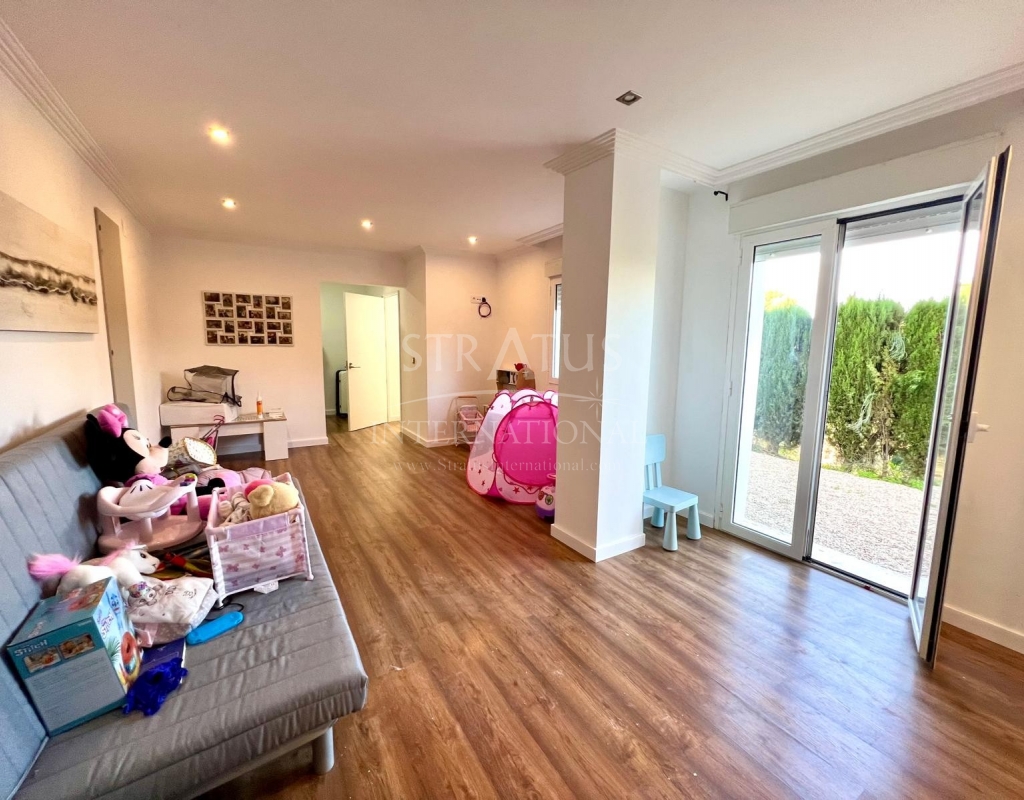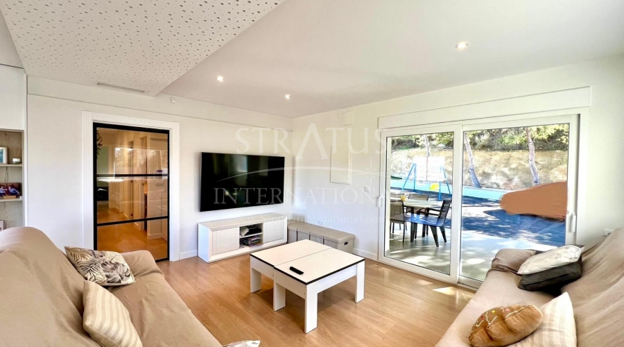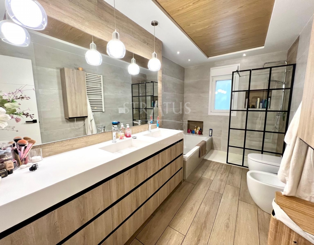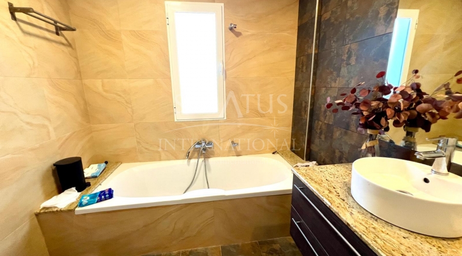 The exterior is designed for outdoor living. The pool offers spectacular views, with a porch area beside it which is ideal for relaxing on sun loungers. There is also a 30 m² garage, a dedicated outdoor bathroom, all on a fully fenced plot with covered parking.