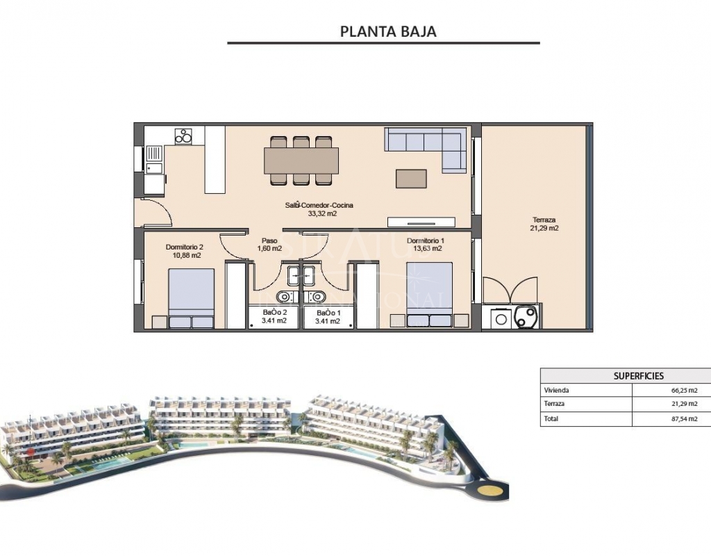 Exclusive New Build Residences with Sea Views in Finestrat, Alicante Prime Location with Panoramic Views of Benidorm and the Mediterranean Discover a unique and luxurious new development in Finestrat, Alicante, offering an exclusive lifestyle on the Costa Blanca. This gated residential complex features 99 modern apartments with 2 bedrooms and 2 bathrooms, just 2.3 km from the beaches of Benidorm, with breathtaking views of the Mediterranean Sea and the city skyline. Set in an elevated position, the development enjoys a peaceful natural environment while remaining close to the lively urban centre of Benidorm. Finestrat is a highly sought-after area that combines tranquility, nature, and proximity to all essential services. Premium Amenities for a Mediterranean Lifestyle Designed with comfort and leisure in mind, the residential complex includes: Three communal swimming pools for relaxation and enjoyment Indoor and outdoor gyms for fitness enthusiasts Children’s playground and padel court for family fun Landscaped green areas and walking paths for peaceful strolls All apartments are built with top-quality materials and finishes, such as: Aluminium windows with thermal break and double glazing for energy efficiency and noise insulation LED lighting throughout the home Furnished bathrooms with backlit mirrors Armoured entrance door for maximum security Outstanding Connectivity and Services The development offers excellent connections to key points of interest: Alicante International Airport – only 55 km (around 40 minutes by car) La Marina Shopping Centre – just 3 km away, featuring shops, restaurants, and entertainment options Levante and Poniente beaches – under 10 minutes by car Puig Campana Natural Park – ideal for hiking, cycling, and outdoor activities Renowned theme parks such as Terra Mítica and Aqualandia – within 5 km Close to leading medical centres and public and private schools Modern Design and Natural Light Each home is designed to make the most of natural light through expansive windows that frame stunning views of Benidorm and the sea. The interiors offer open-plan layouts, functional spaces, and superior insulation for year-round comfort. Whether you are seeking a permanent home, a vacation property, or a sound investment, this new development in Finestrat delivers a blend of serenity, luxury, and proximity to the vibrant city of Benidorm. Secure Your Dream Property on the Costa Blanca Don't miss this opportunity to own a beautiful new apartment in one of the most desirable areas of Alicante. Contact us today to request more information, schedule a visit, or reserve your new home in Finestrat.Features