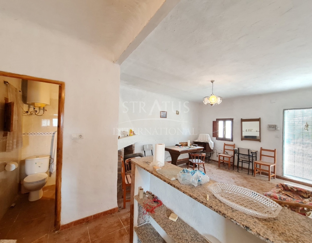 The house, though in need of renovation, stands on a solid foundation and offers a blank canvas for customization. With mains water and irrigation in place, as well as electricity connections, the essential infrastructure is ready for your enhancements.