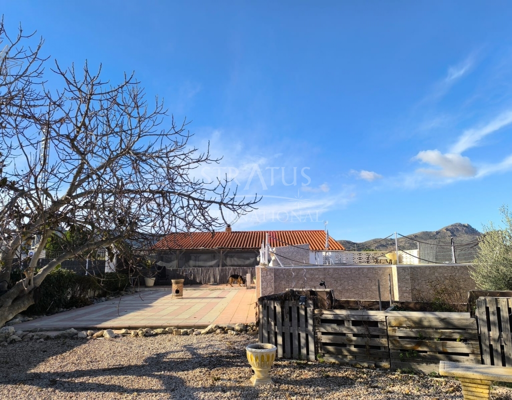 This well-maintained villa near Villena offers generous indoor and outdoor living on an 8,000 m² fully fenced plot with beautiful gardens, fruit trees and an olive orchard. With 210 m² built, the property includes a 4-bedroom main house and a separate guest studio, making it ideal for families, guests or those seeking extra space for work or leisure.