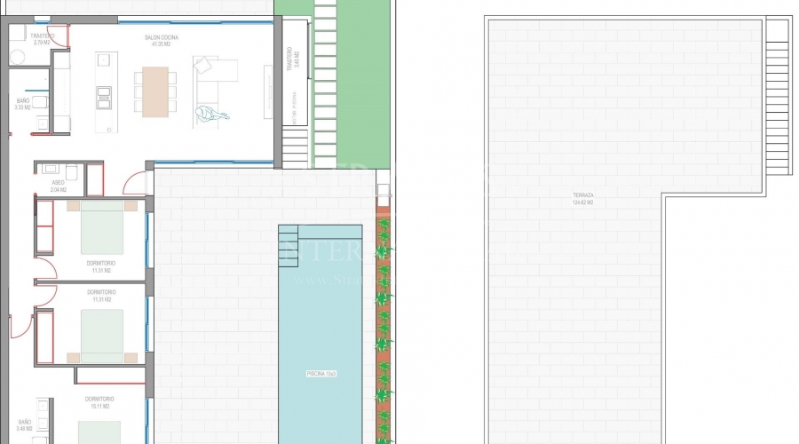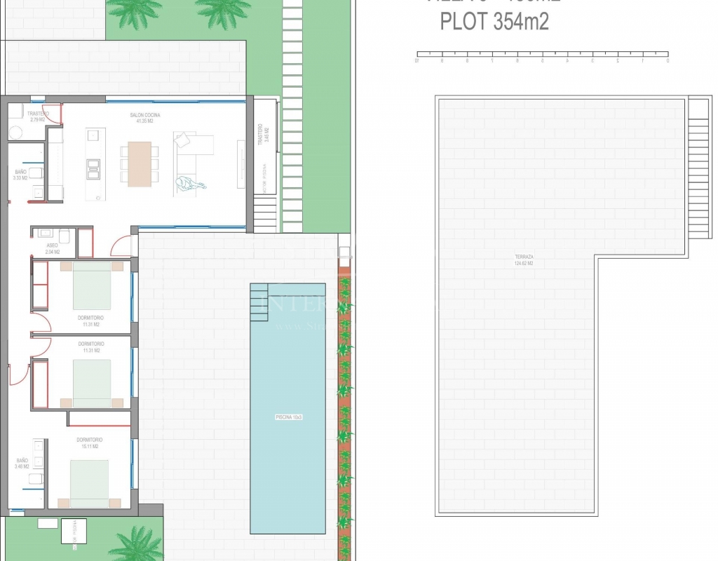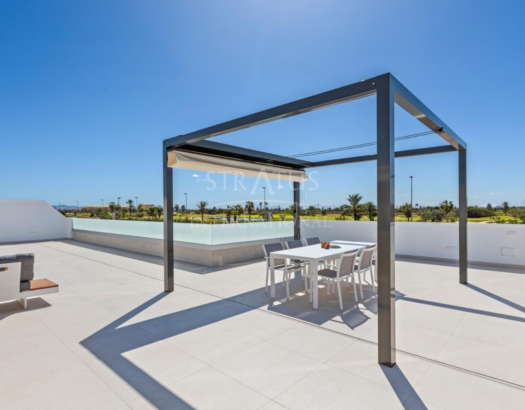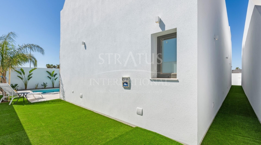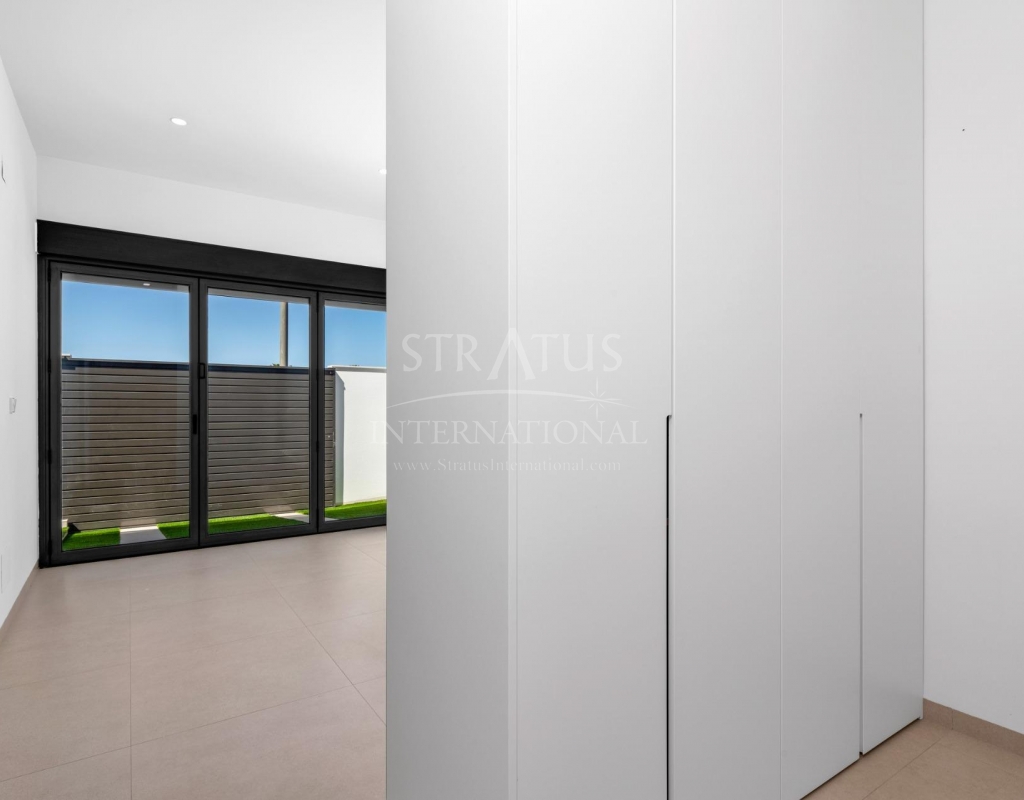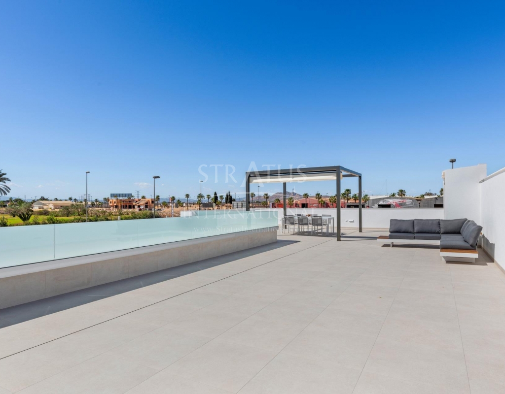 New Build Villas Near Serena Golf in Los Alcazares Modern Villas in a Prime Coastal and Golf Location This exclusive new build residential project offers modern villas located in Los Alcazares, just a short distance from the prestigious Serena Golf and only 1.2 km from the sandy beaches of the Mar Menor. Set in one of the most attractive areas of the Region of Murcia, these homes combine contemporary design, comfort and an excellent location close to the sea, golf and all daily services. Los Alcazares is a well established coastal town known for its relaxed lifestyle, long promenade, water sports and mild climate throughout the year. Single Level Design with Private Outdoor Spaces The development features stylish villas with 3 bedrooms and 2 bathrooms, available in two different built sizes of approximately 106 sqm and 130 sqm. The larger model also includes an additional guest toilet. All villas are designed on a single floor, offering practical and comfortable living. The open plan kitchen, dining and living area connects directly to a terrace and private garden with swimming pool, creating an ideal space for indoor and outdoor living. Each property also includes a private solarium and on plot parking. High Quality Finishes and Modern Equipment These villas are built with high quality materials and equipped with modern features. The fully fitted kitchens are available in white gloss or wood finish and include quartz worktops, stainless steel sink, induction hob with integrated extractor, oven, microwave, washing machine, integrated fridge and dishwasher. Bathrooms are fitted with furniture, mirrors, lighting and electric towel heaters. Additional features include electric blinds in bedrooms, LED lighting throughout the property and a complete ducted air conditioning system by Fujitsu. Private Pool and Energy Efficient Comfort Each villa includes a private swimming pool finished with blue ceramic tiles, integrated steps and white LED lighting. The pool is prepared with pre installation for a heat pump. The combination of efficient climate control, modern construction and thoughtful design ensures comfort all year round. Excellent Connectivity and Key Distances The villas are within walking distance of the town centre of Los Alcazares and very close to Serena Golf. The beach is approximately 1.2 km away. Cartagena city is around 20 km away, offering a rich cultural and gastronomic scene. Murcia Corvera International Airport is about 22 km away, and Alicante Airport is approximately 90 km. Several golf courses and marinas are also nearby, making this location ideal for both permanent living and holidays. Your Ideal Home by the Sea and Golf If you are looking for a modern new build villa near the beach and golf in Los Alcazares, contact us today for more information or to arrange a private viewing.Features