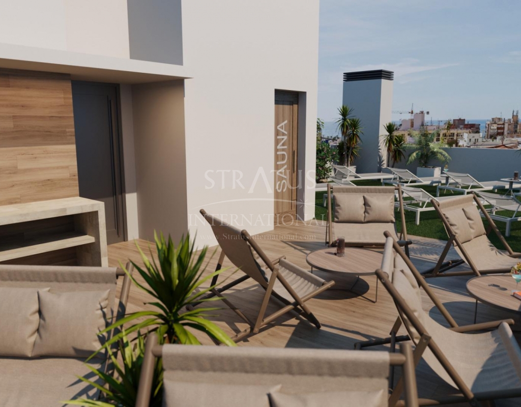 Newly built apartments in Torrevieja, just 600 metres from Playa del Cura beach Prime location in the heart of Torrevieja Discover these brand new apartments and penthouses in one of the most sought-after areas of Torrevieja, just 600 metres from Playa del Cura beach and 400 metres from the seafront promenade. Located in the city centre, this lively neighbourhood offers all essential amenities within walking distance, including supermarkets, shops, restaurants, cafés and public transport. Torrevieja is a well-known coastal town on the Costa Blanca, famous for its mild Mediterranean climate, lively atmosphere and year-round seaside lifestyle. Modern apartments with spacious layouts This exclusive new development consists of only 14 apartments and penthouses, including studios and 1 or 2-bedroom properties, designed to offer comfort, functionality and contemporary style. All homes feature an open-plan kitchen connected to the living-dining room, equipped with appliances, creating bright and welcoming interiors. The bedrooms have fitted wardrobes and the bathrooms are fully equipped with furniture, mirrors, underfloor heating and shower screens. Quality finishes and energy-efficient features The apartments are built with high-quality materials and a strong focus on energy efficiency. The exterior aluminium joinery includes thermal break technology and double glazing for thermal and acoustic insulation. Motorised blinds add comfort and security. Each home has pre-installation for air conditioning and ducted heating, reinforced entrance doors, a lighting pack and white lacquered interior doors. Hot water is produced by an aerothermal system, reducing energy consumption and improving sustainability. Roof-top solarium with communal swimming pool Residents can enjoy an exclusive roof-top solarium with communal swimming pool, barbecue, sauna and sunbathing area with sun loungers, accessible by lift or stairs. This private area is perfect for relaxing, sunbathing and enjoying panoramic views of the city. It offers a peaceful retreat above the bustling streets of Torrevieja and adds significant value to the development. Lifestyle and surroundings of Torrevieja Torrevieja is known for its extensive coastline, sandy beaches and iconic salt flats. The Lagunas de La Mata y Torrevieja Natural Park is approximately 5 km away and offers hiking trails and unique landscapes. Several golf courses, such as Villamartin Golf and Las Colinas Golf, are between 12 and 18 km away. The marina and port of Torrevieja are approximately 1 km away. Alicante Airport is approximately 45 km away and Murcia International Airport is approximately 65 km away, both with excellent European connections. Your home on the coast awaits Don't miss this opportunity to purchase a modern, newly built apartment near the beach in Torrevieja. Contact us today for more information or to arrange a private viewing.Features