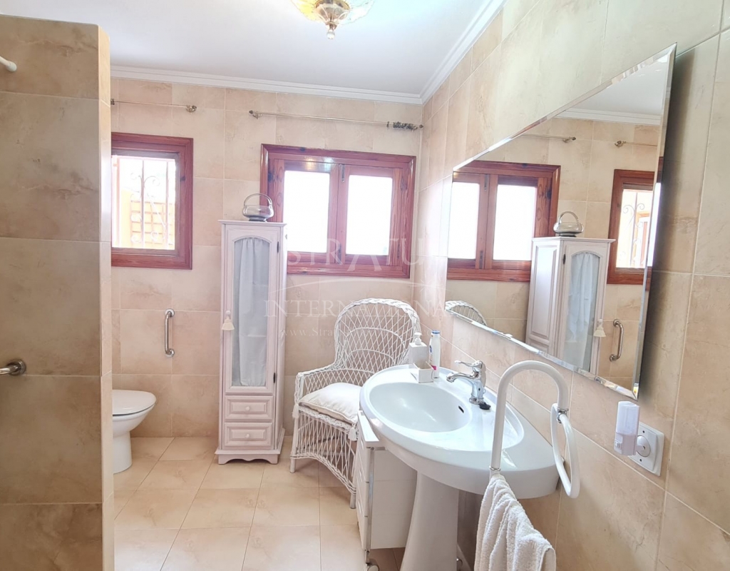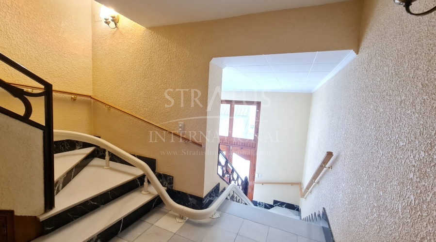The mezanine floor (entre suelo) offers a 40 m² office area with its own access and also a seperate stairway to the garage and storage room.