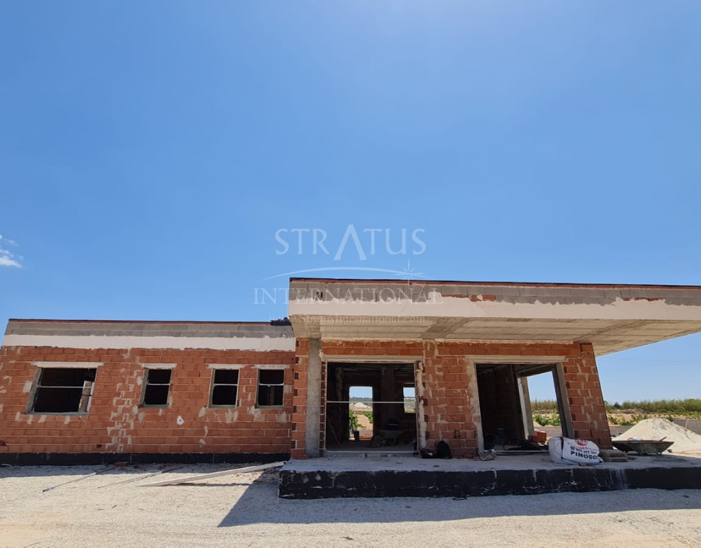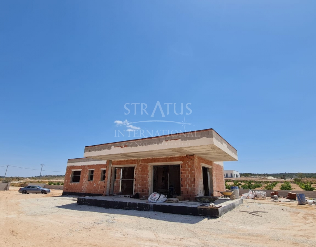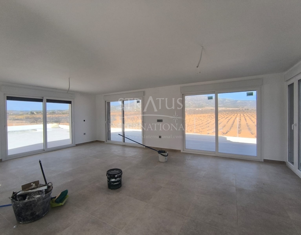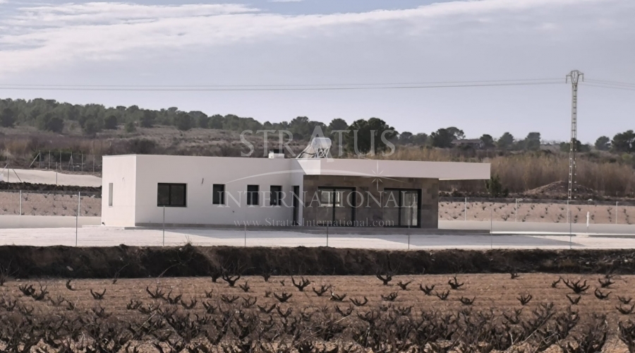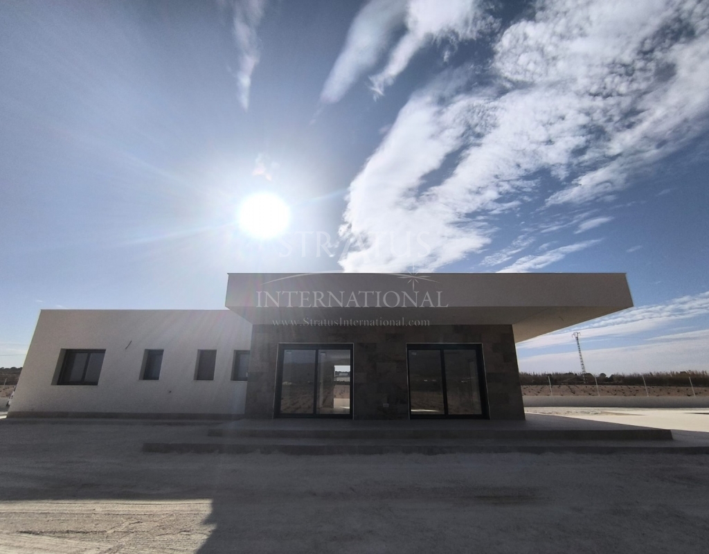 This New Build 3-bedroom, 2-bathroom villa near Monovar offers modern living in a peaceful setting. The property includes a private pool with a metre of paving around it, providing a perfect space for outdoor relaxation. The villa is set on a generous plot with a perimeter fence enclosing approximately 2,000 m2, ensuring privacy and security.